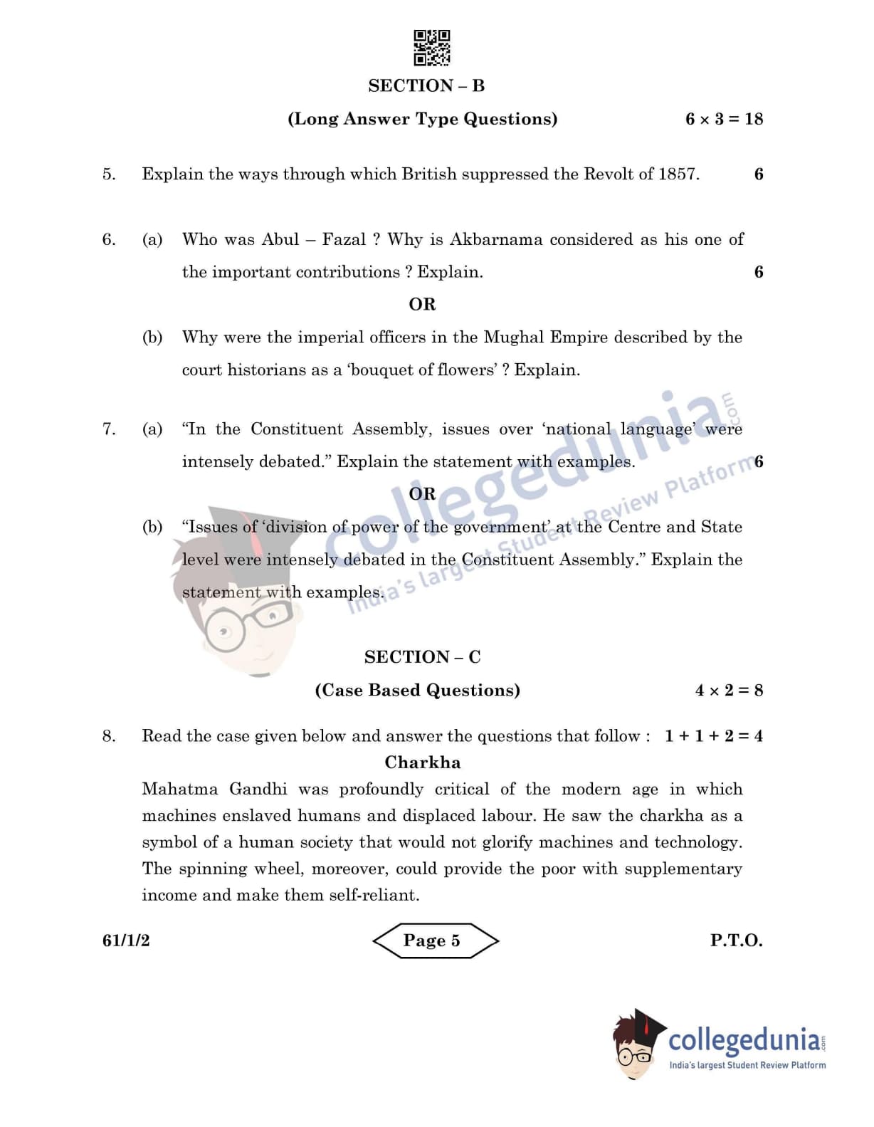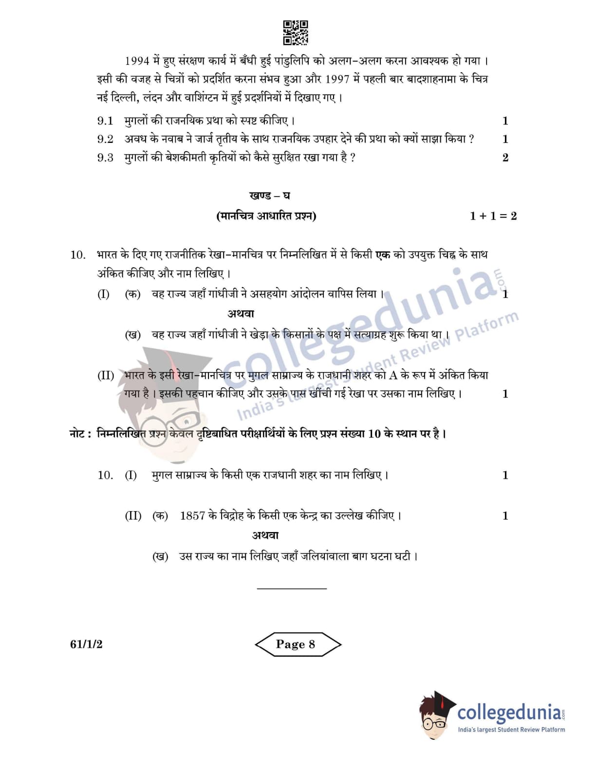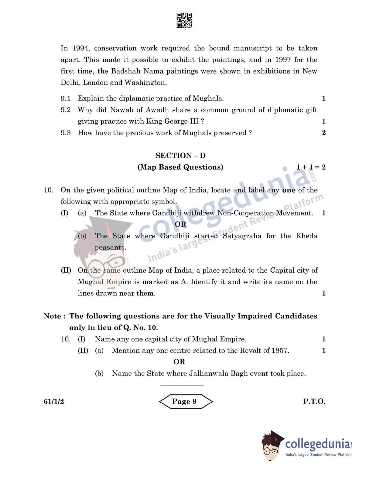 CBSE Class 12 History Set 2 - 61/1/2 Question Paper 2022 with Answer Key (June 10)