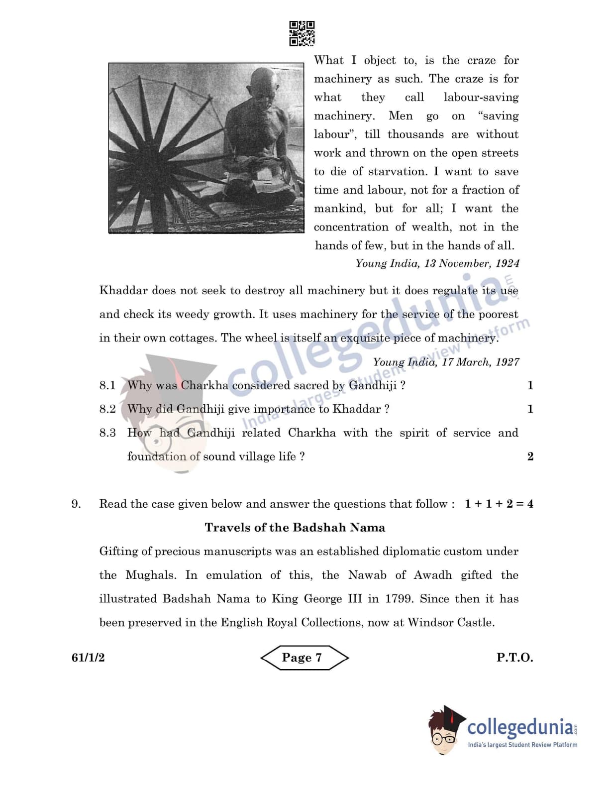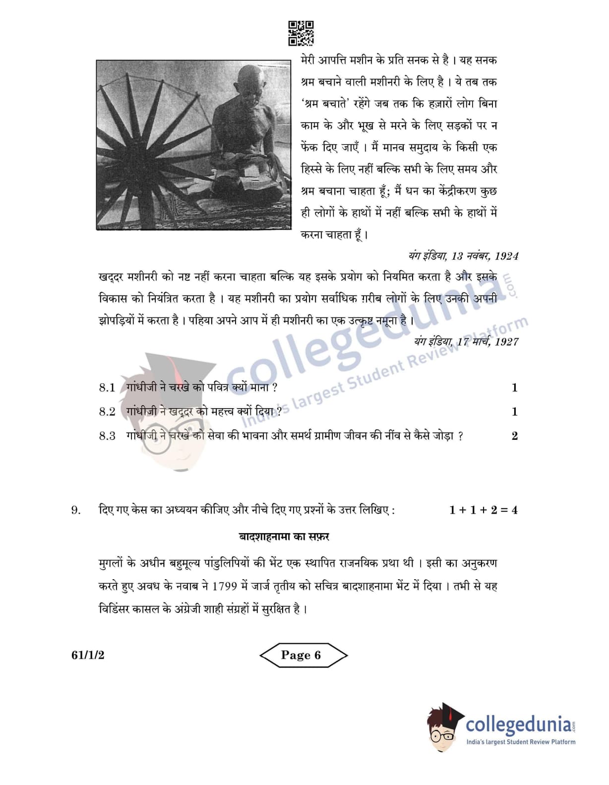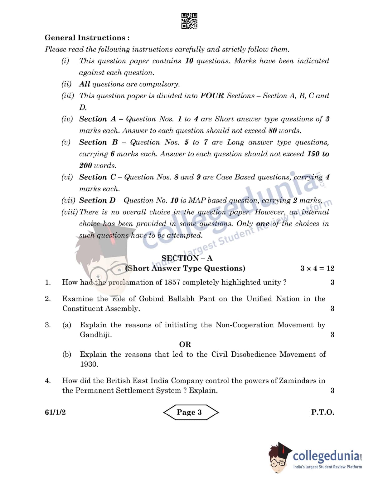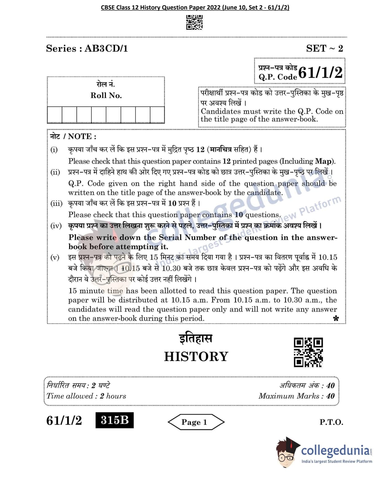CBSE Class 12 History Set 2 - 61/1/2 Question Paper 2022 with Answer Key (June 10)