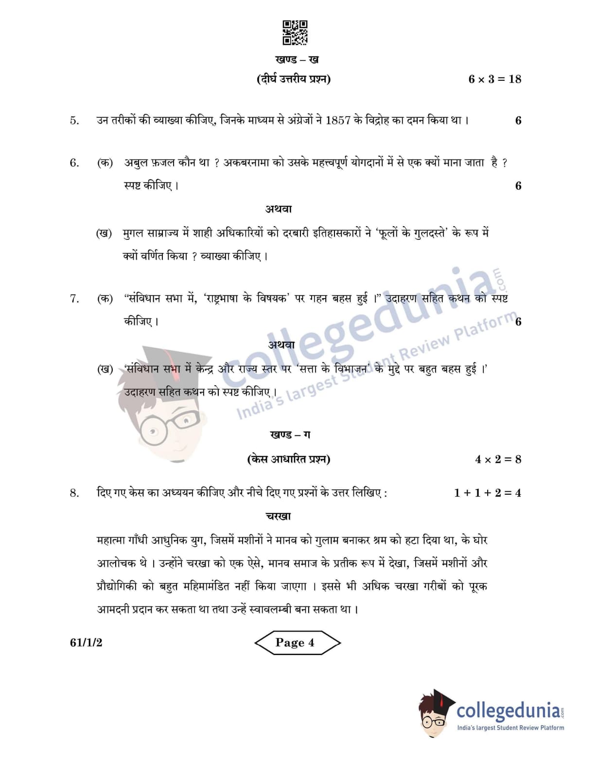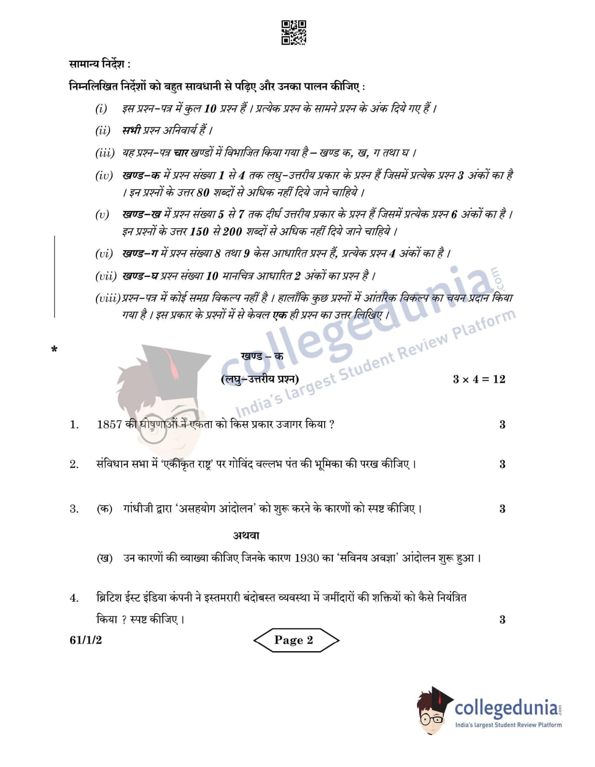 CBSE Class 12 2022 History Question Paper Set 2 - 61/1/2 with Answer Key pdf is available for download. The exam was conducted by Central Board of Secondary Education on June 10, 2022 in the Morning Session 10:30 AM to 12:30 PM. The medium of paper was English & Hindi. In terms of difficulty level, CBSE Class 12 History paper was of Easy level. The question paper comprised a total of 10 questions divided among 4 sections.