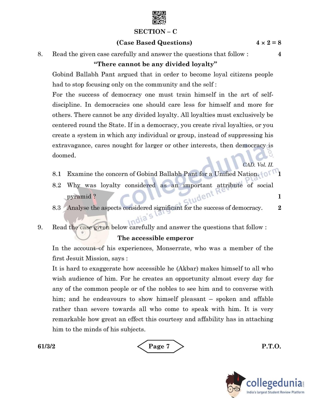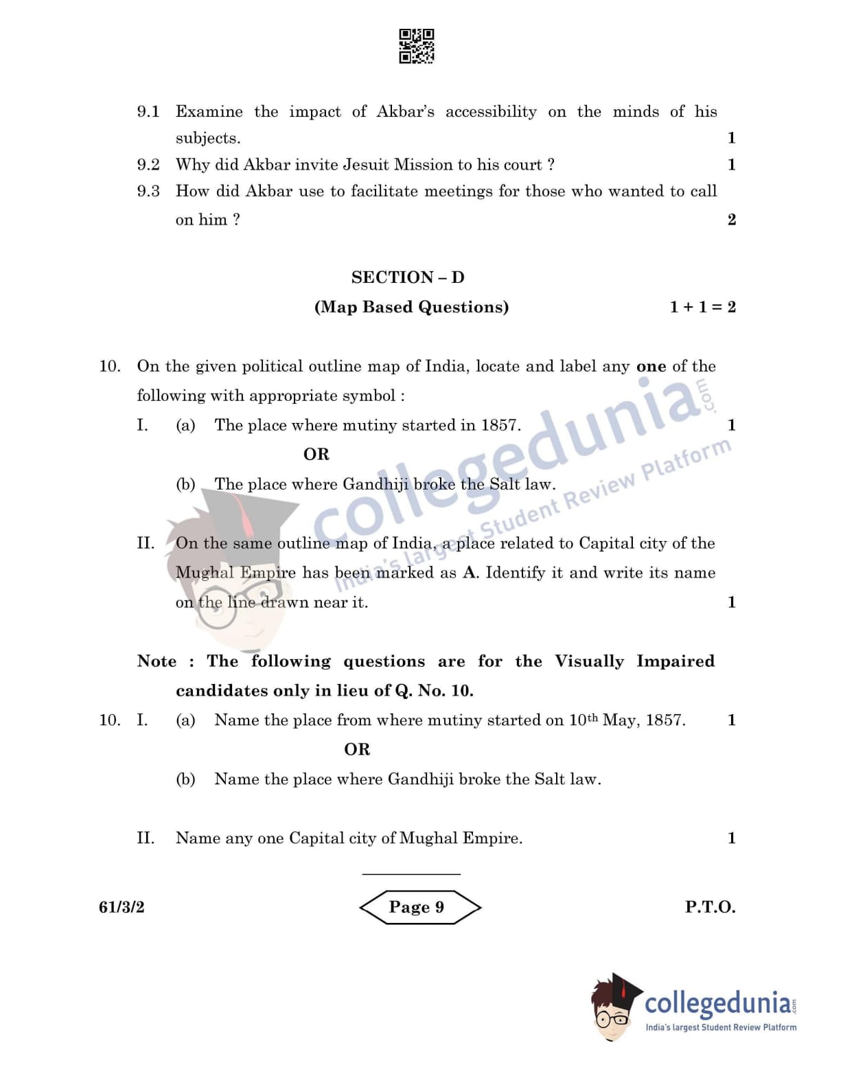 CBSE Class 12 History Set 2 - 61/3/2 Question Paper 2022 with Answer Key (June 10)