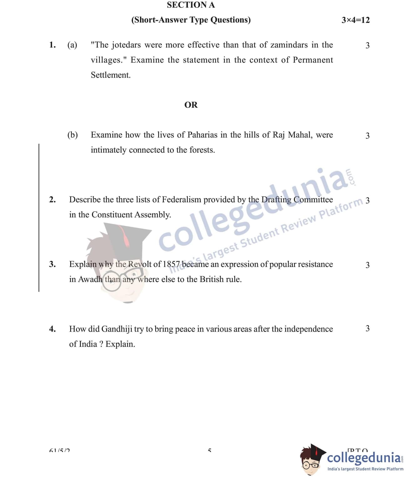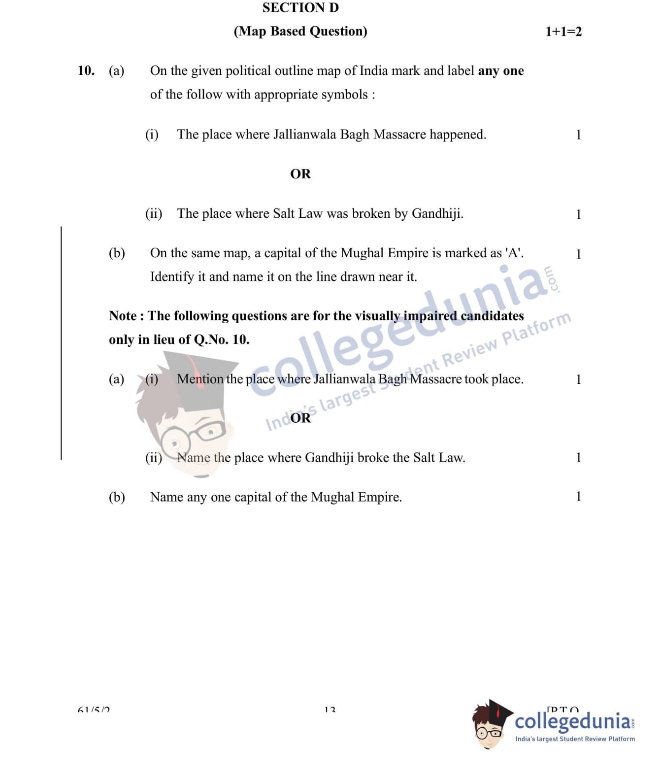 CBSE Class 12 History Set 2 - 61/5/2 Question Paper 2022 with Answer Key (June 10)