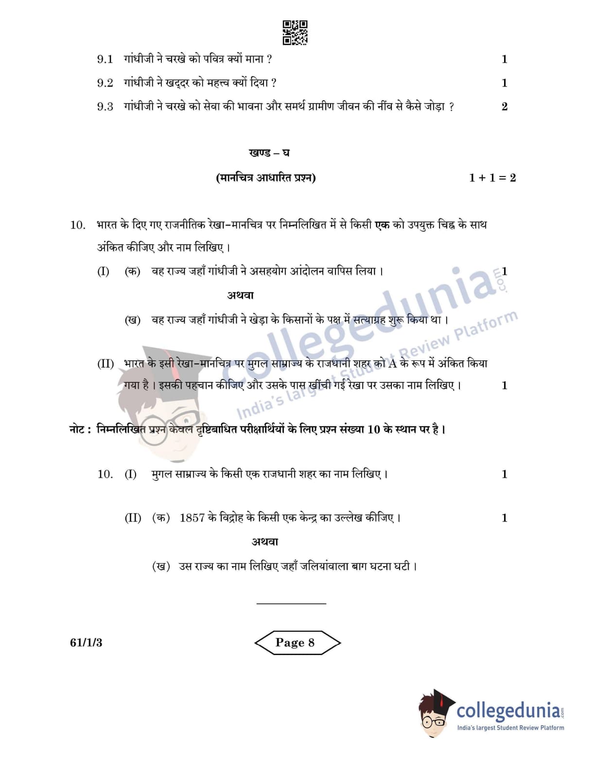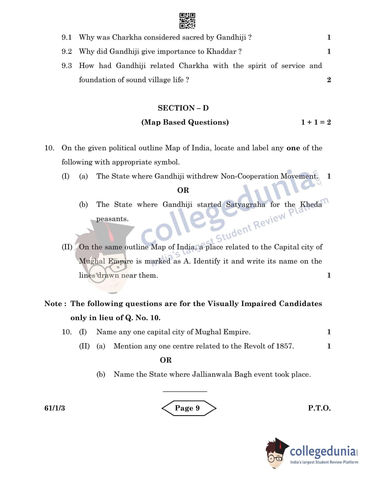 CBSE Class 12 History Set 3 - 61/1/3 Question Paper 2022 with Answer Key (June 10)