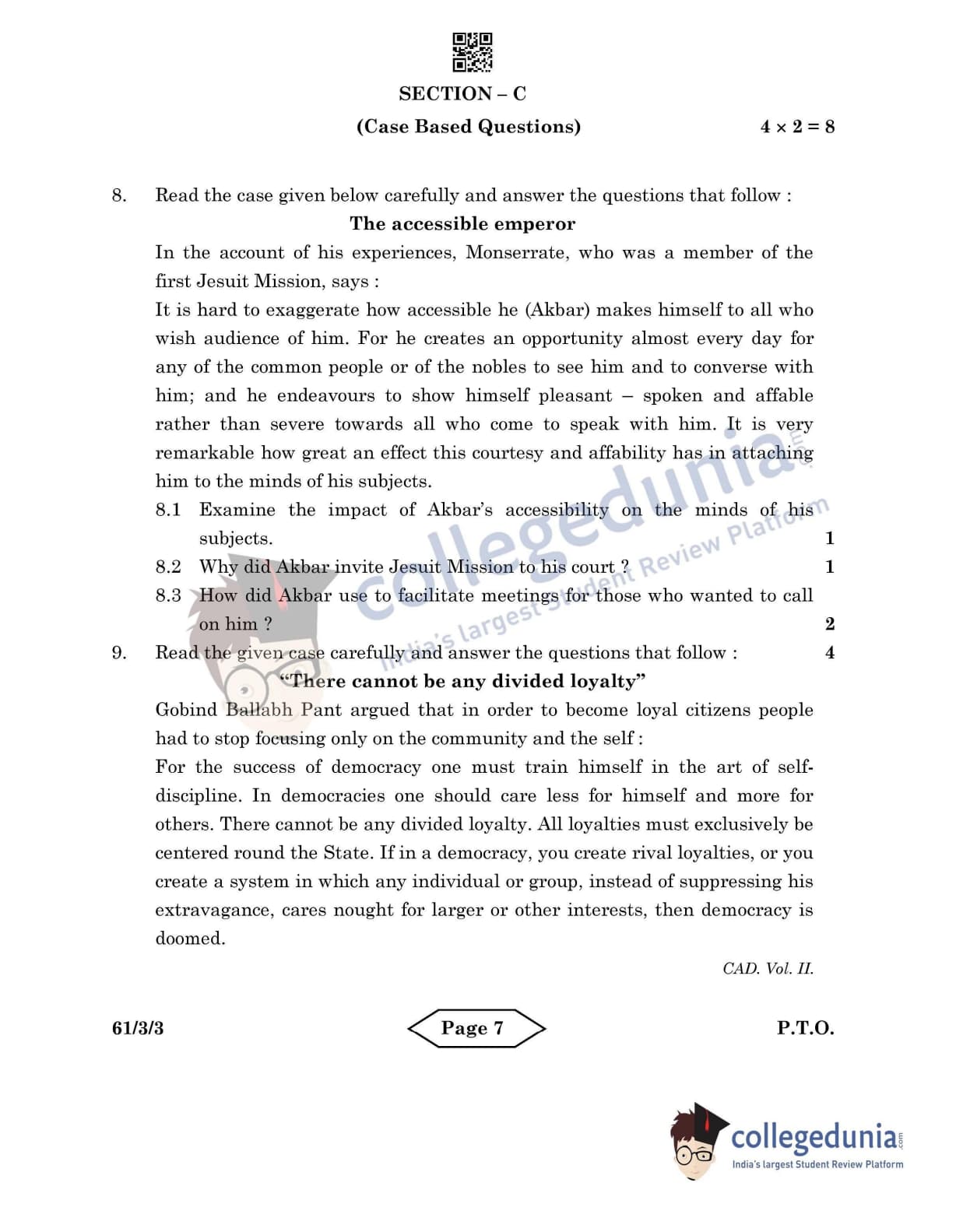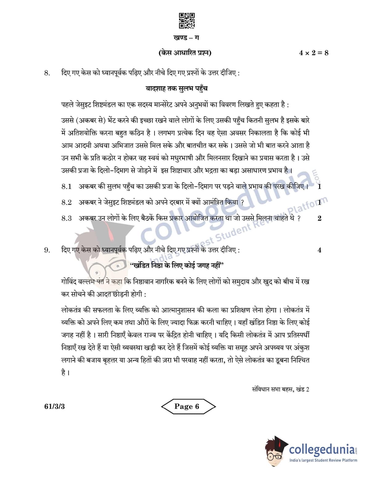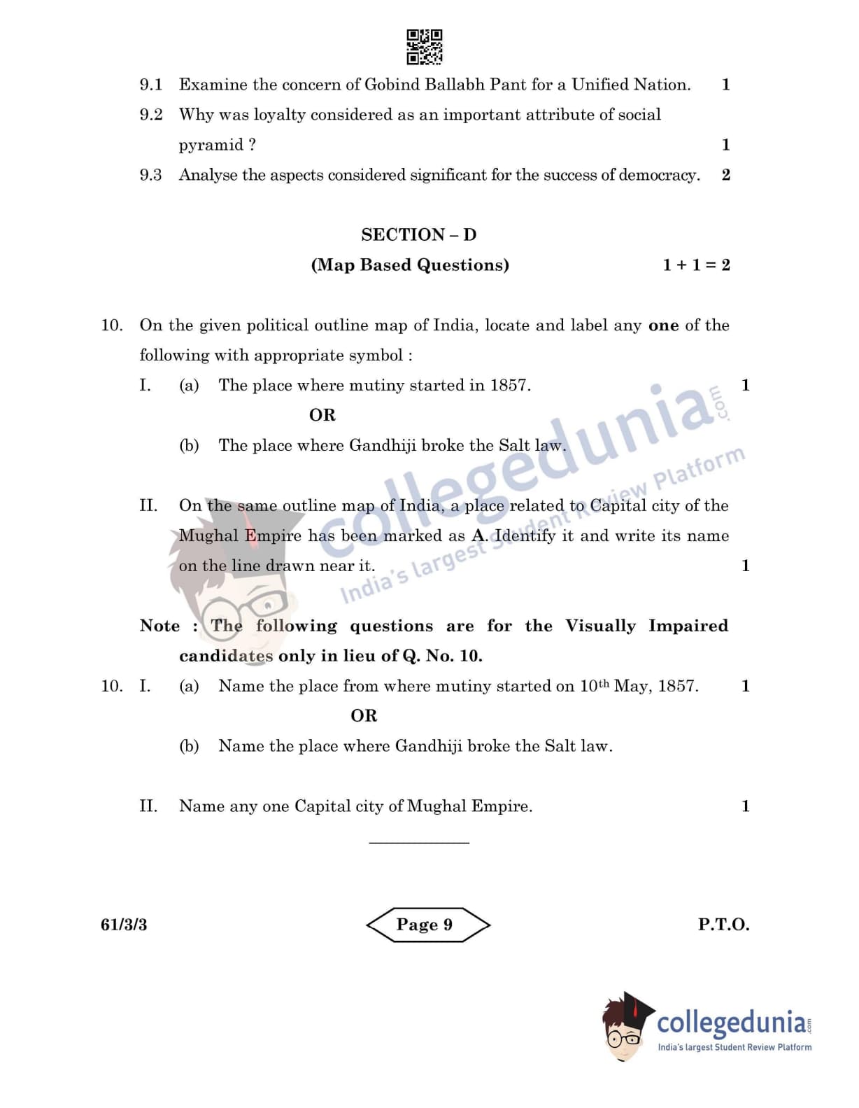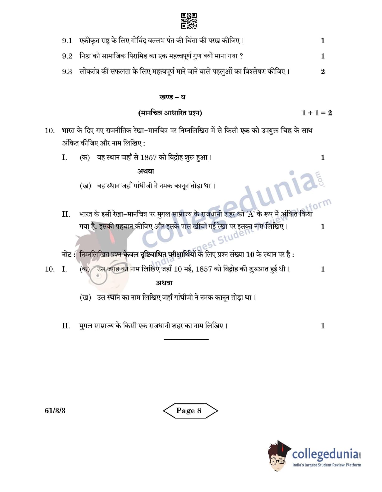 CBSE Class 12 History Set 3 - 61/3/3 Question Paper 2022 with Answer Key (June 10)