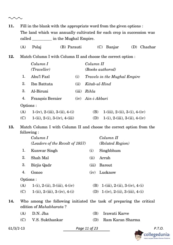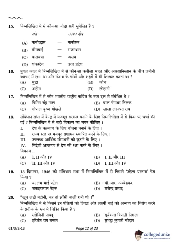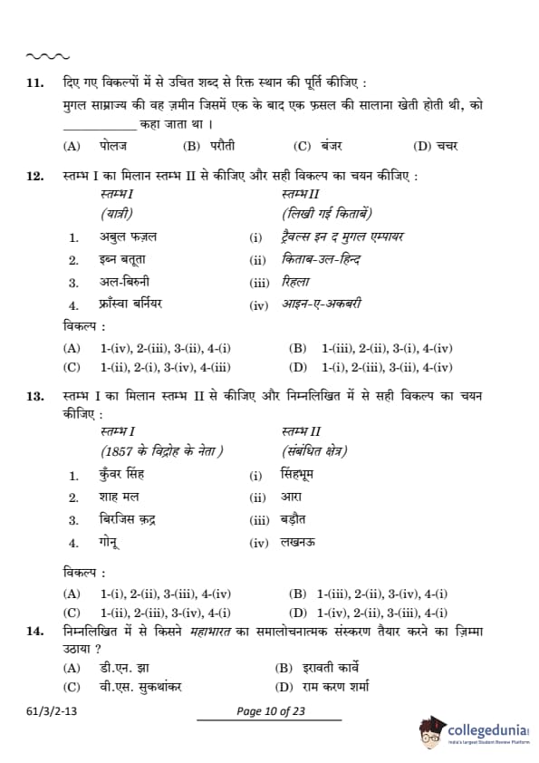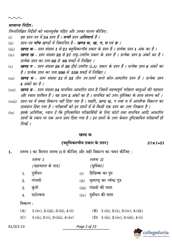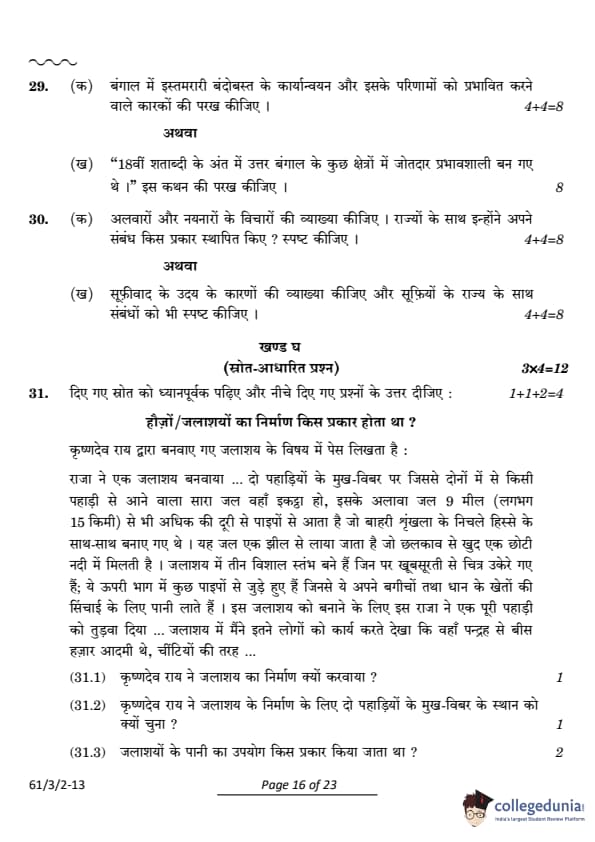 CBSE Class 12 History Question Paper 2024 (Set 2- 61/3/2) with Answer Key