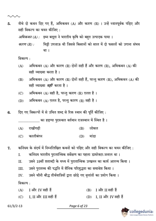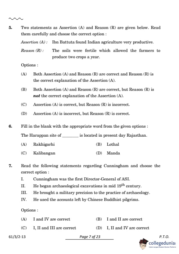 Assertion (A): Ibn Battuta found Indian agriculture very productive.