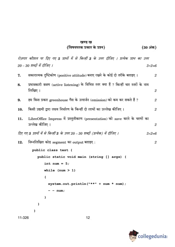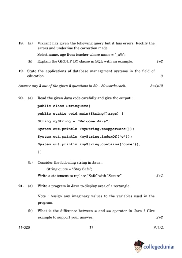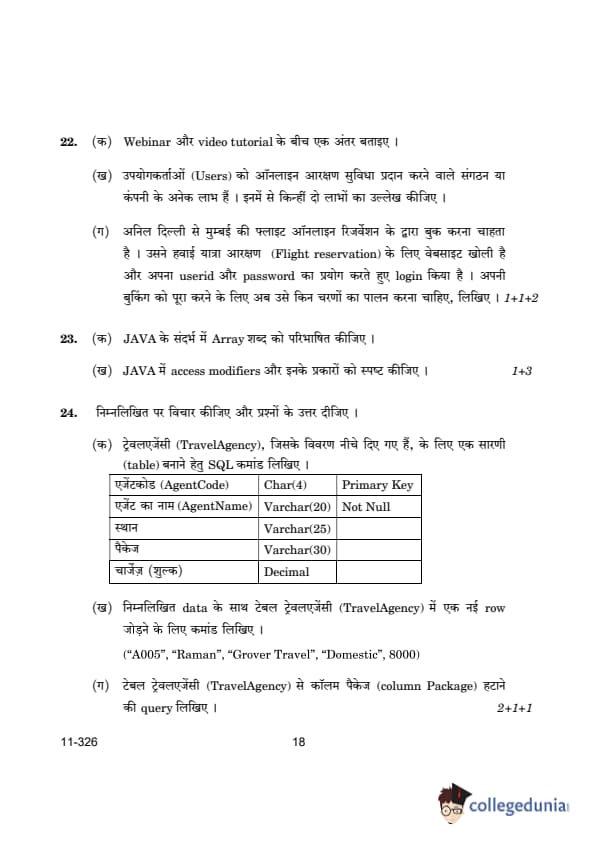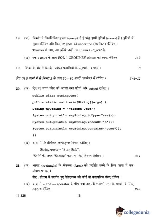 CBSE Class 12 Information Technology Question Paper PDF is now available for download. CBSE conducted the Class 12 Information Technology examination on March 13, 2024, from 10:30 AM to 1:30 PM. The question paper consists a total of 24 questions divided among 2 sections.