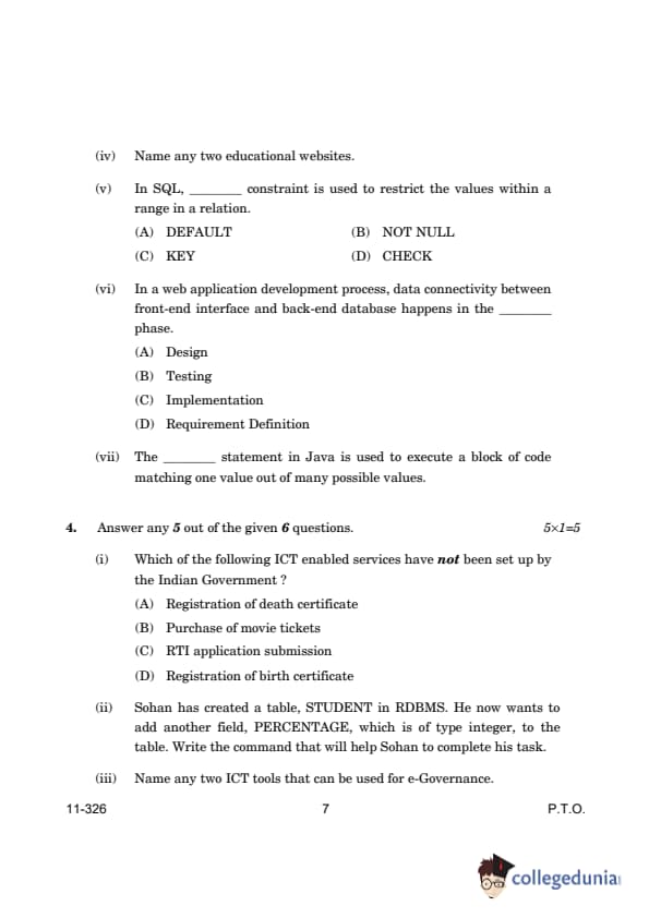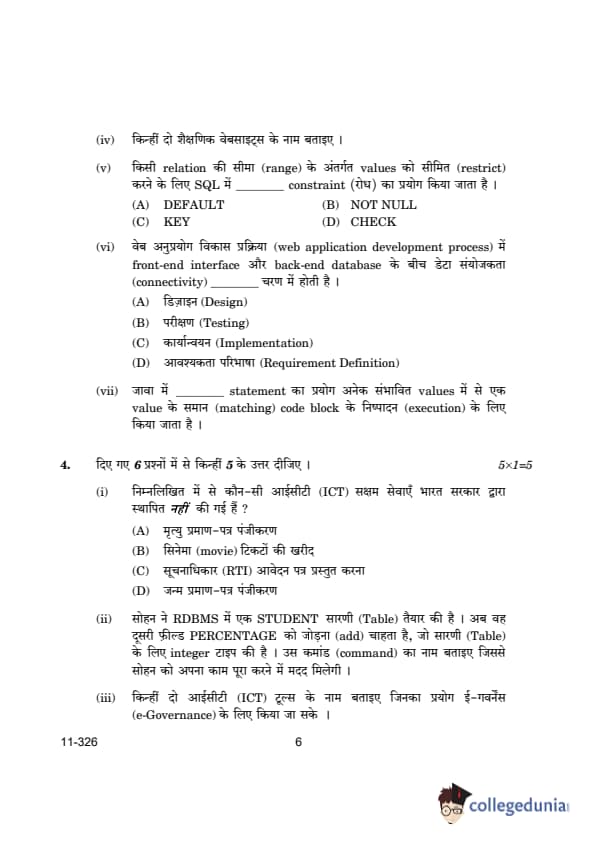 | CBSE Class 12 2024 Information Technology Question Paper with Answer Key | Check Solution |