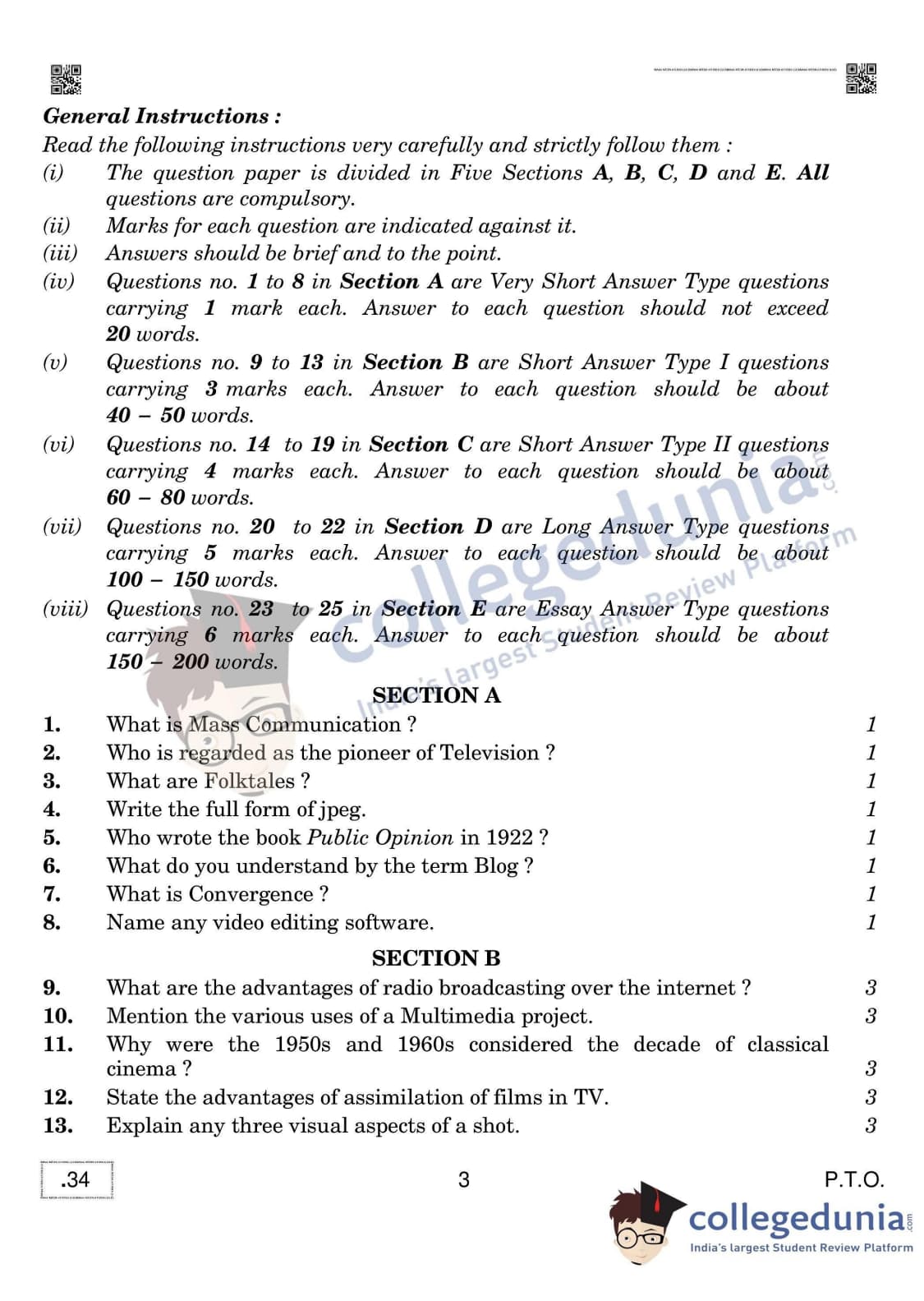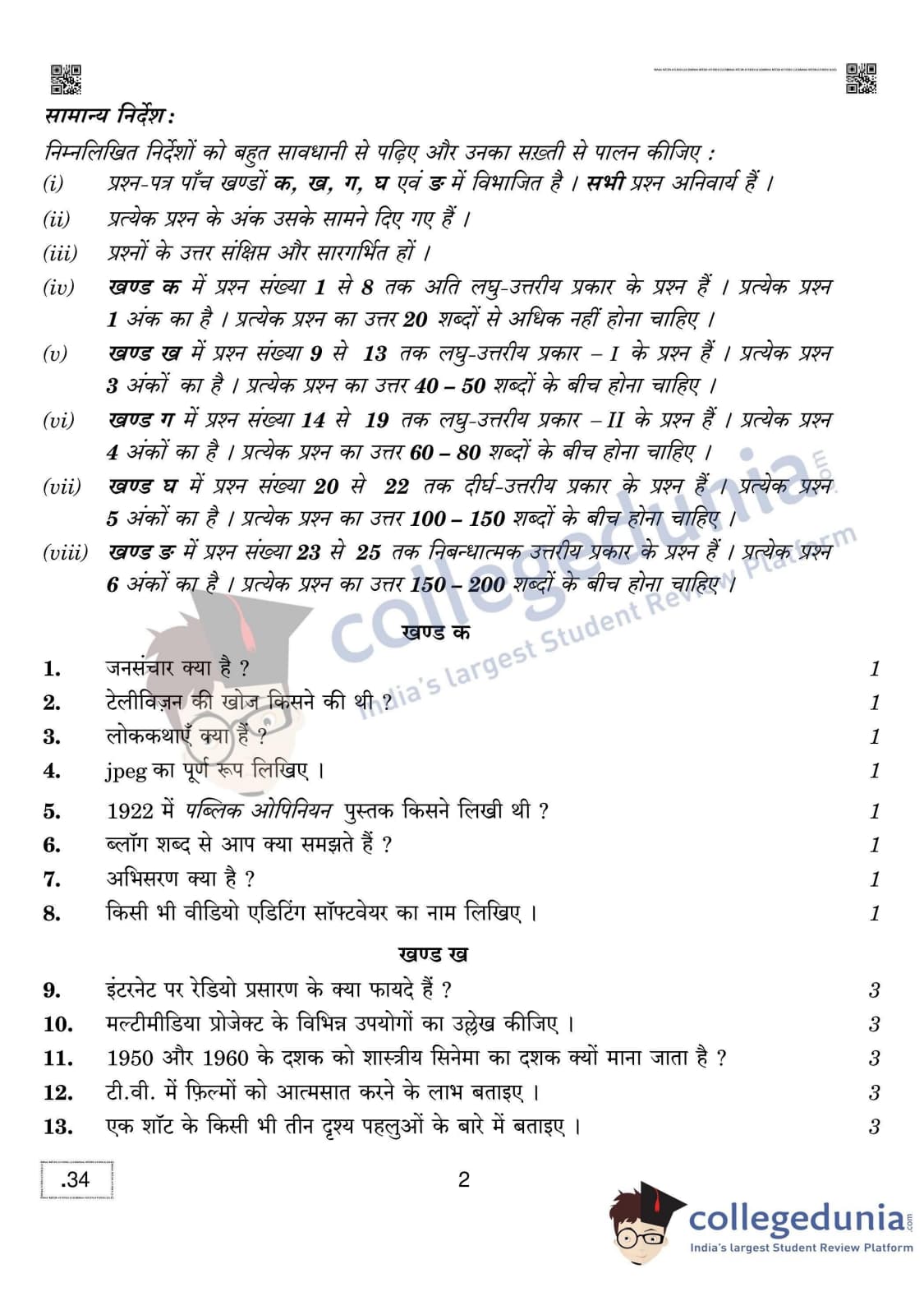 | CBSE Class 12 Mass Media Studies (Old) Question Paper 2020 PDF | CBSE Class 12 Mass Media Studies (Old) Answer Key 2020 PDF |
