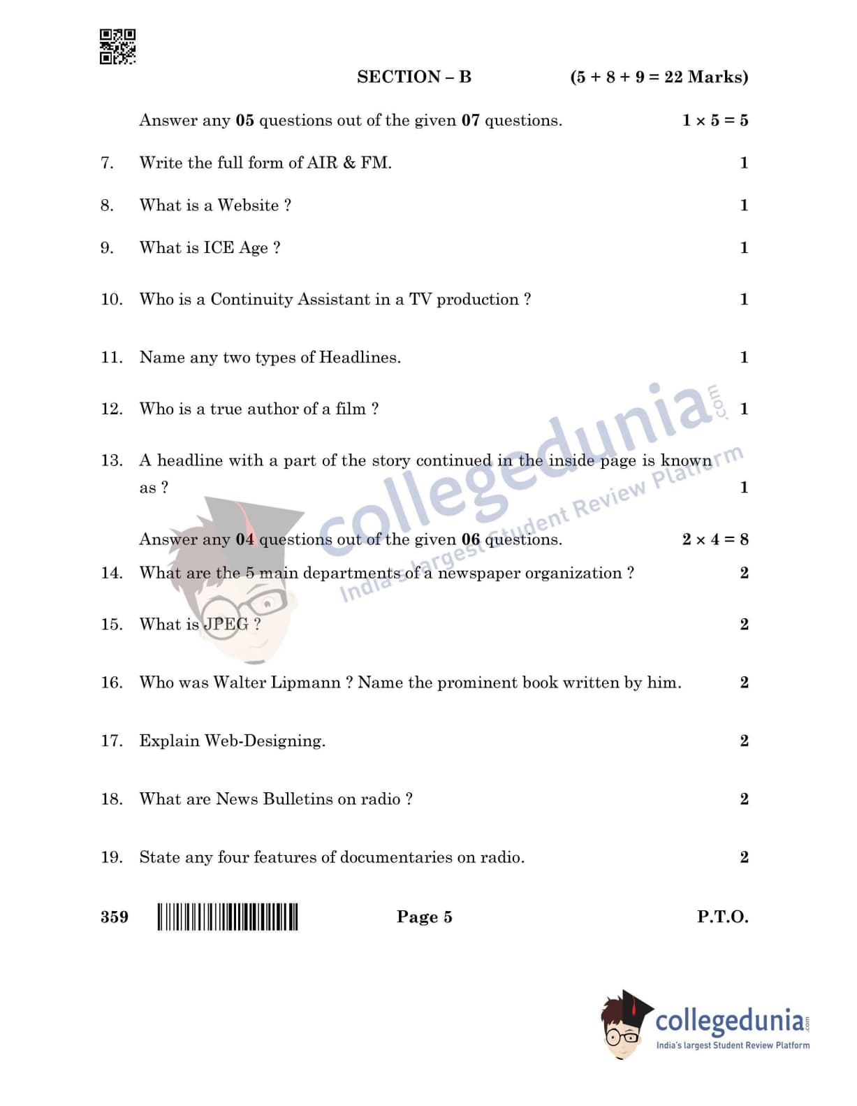 CBSE Class 12 Mass Media Studies Set 4 Question Paper 2022 with Answer Key (June 1)