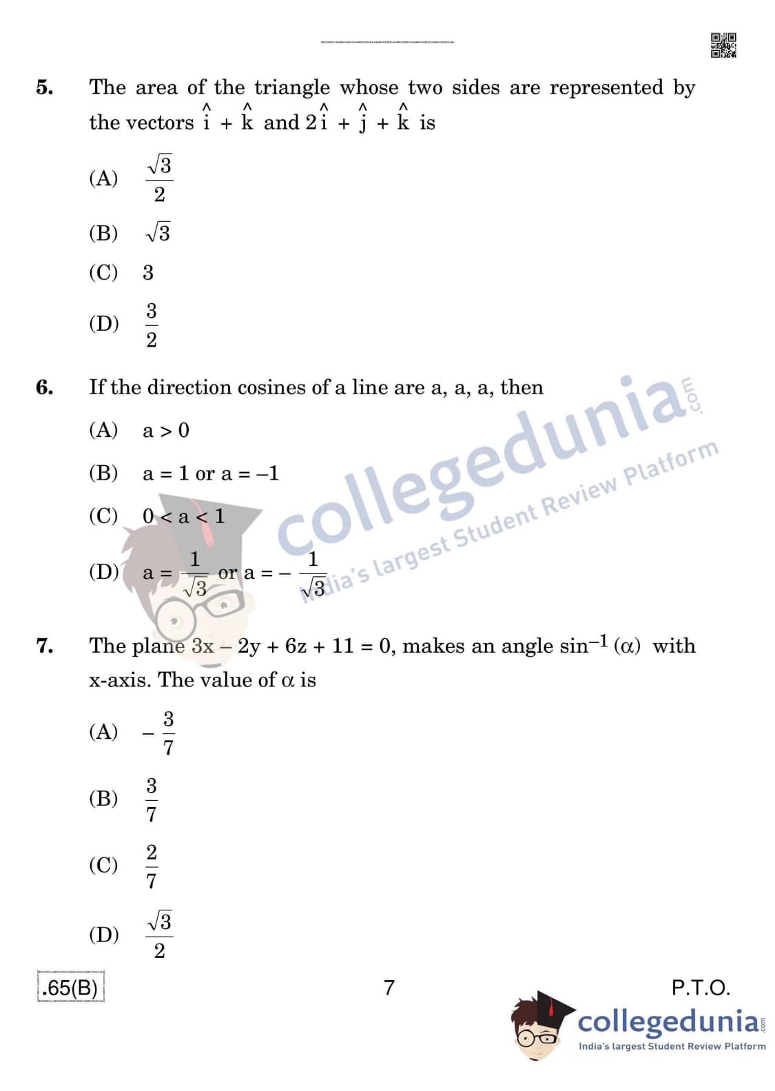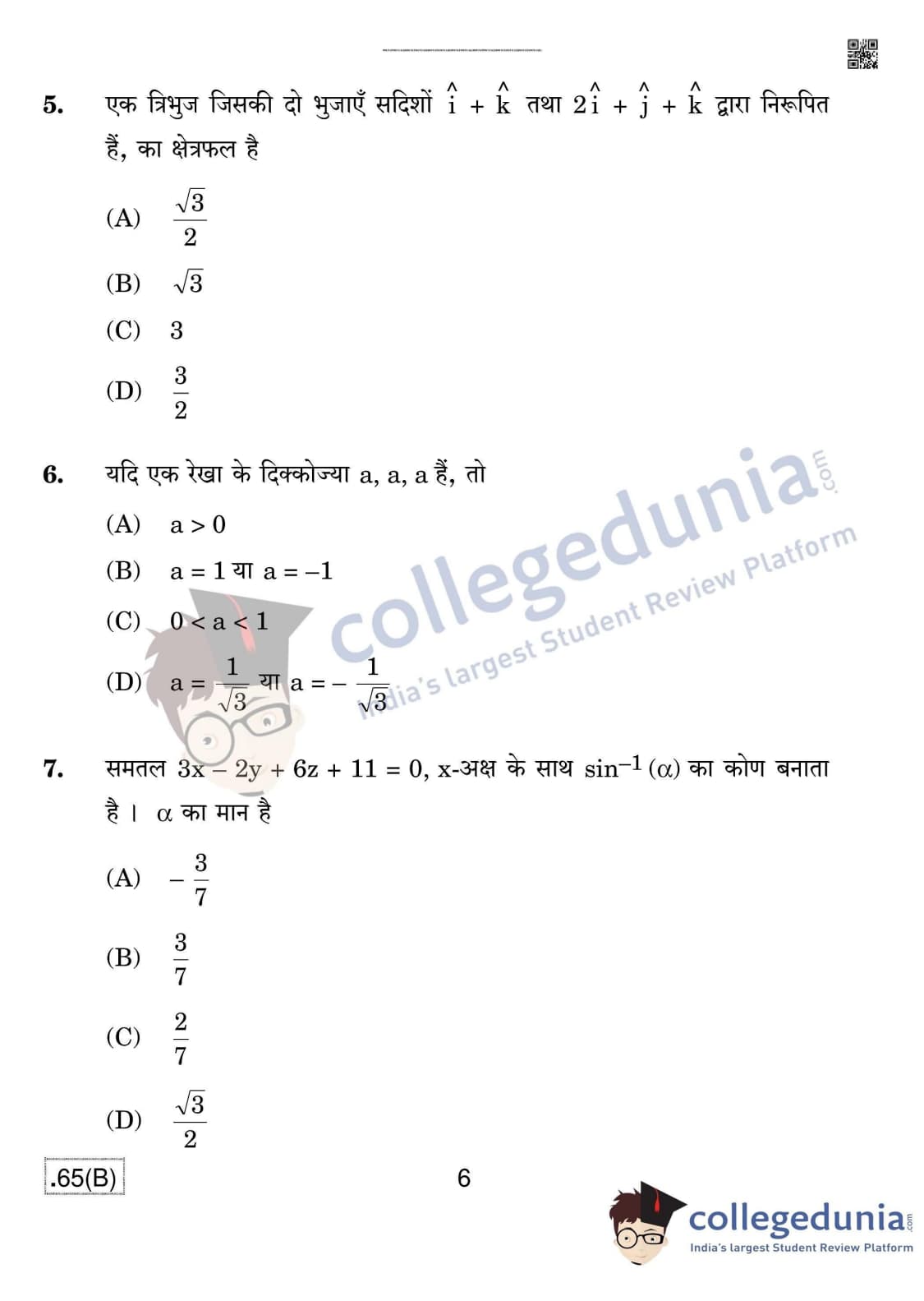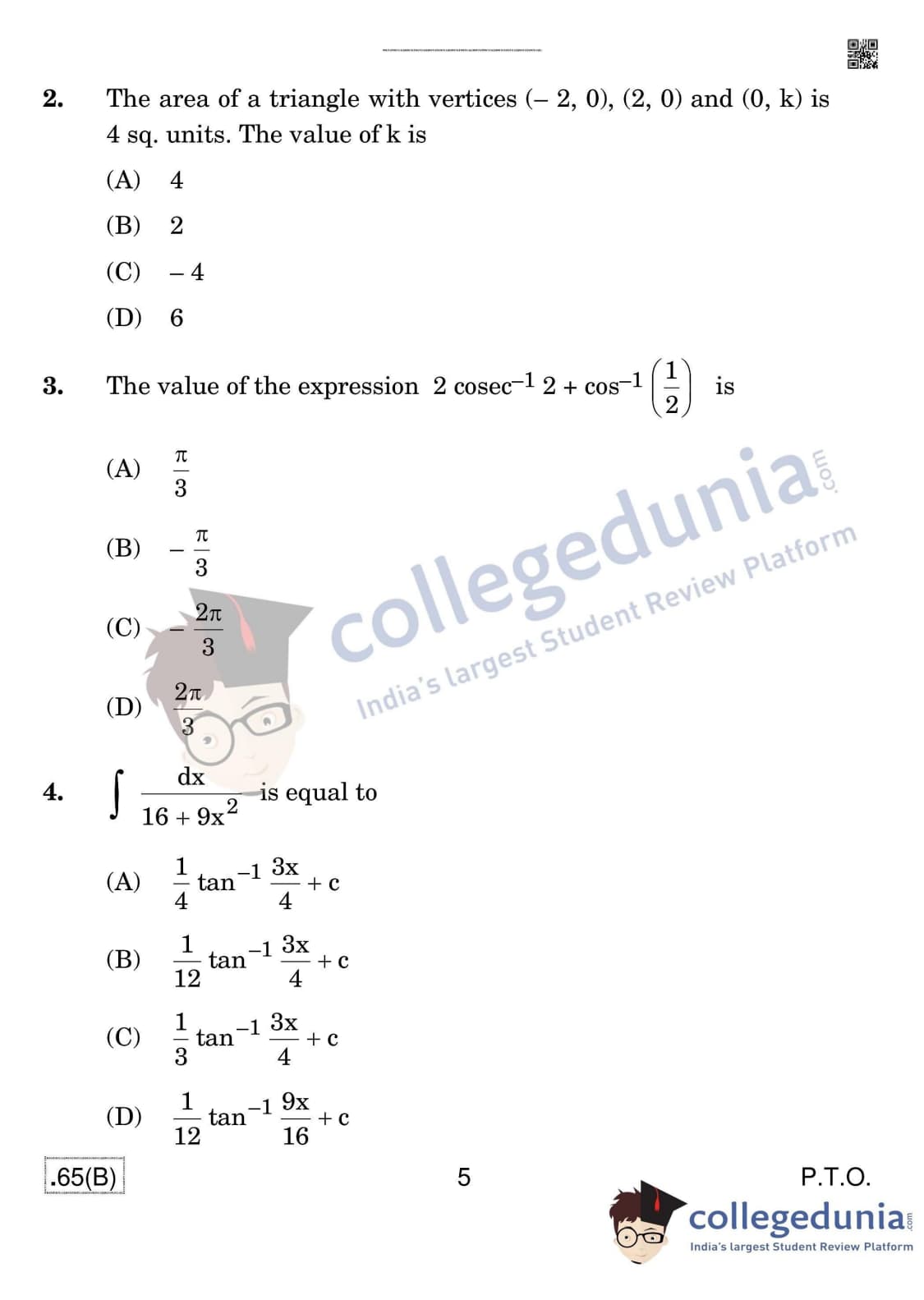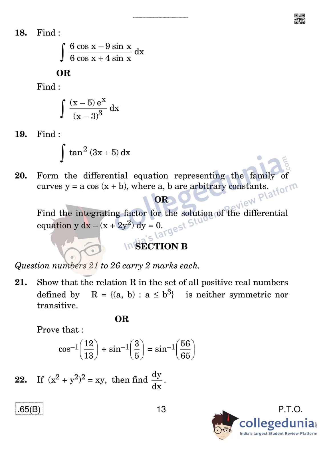 CBSE Class 12 Mathematics (For Blind) Question Paper 2020 with Answer Key Set 4 - 65/B is available for download. The exam was conducted by the Central Board of Secondary Education on March 17, 2020 in the Morning Session 10:30 AM to 1:30 PM. The medium of paper was English & Hindi. In terms of difficulty level, CBSE Class 12 Mathematics paper was of Moderate level. The question paper comprised a total of 36 questions divided among 4 sections.