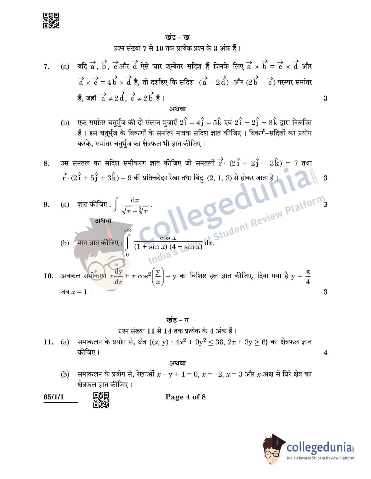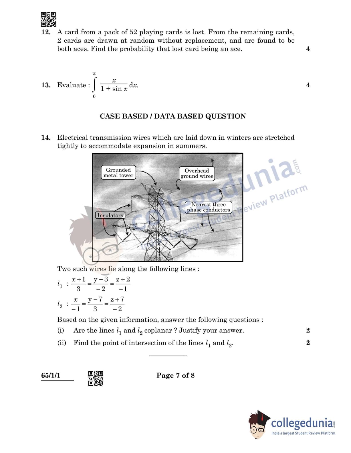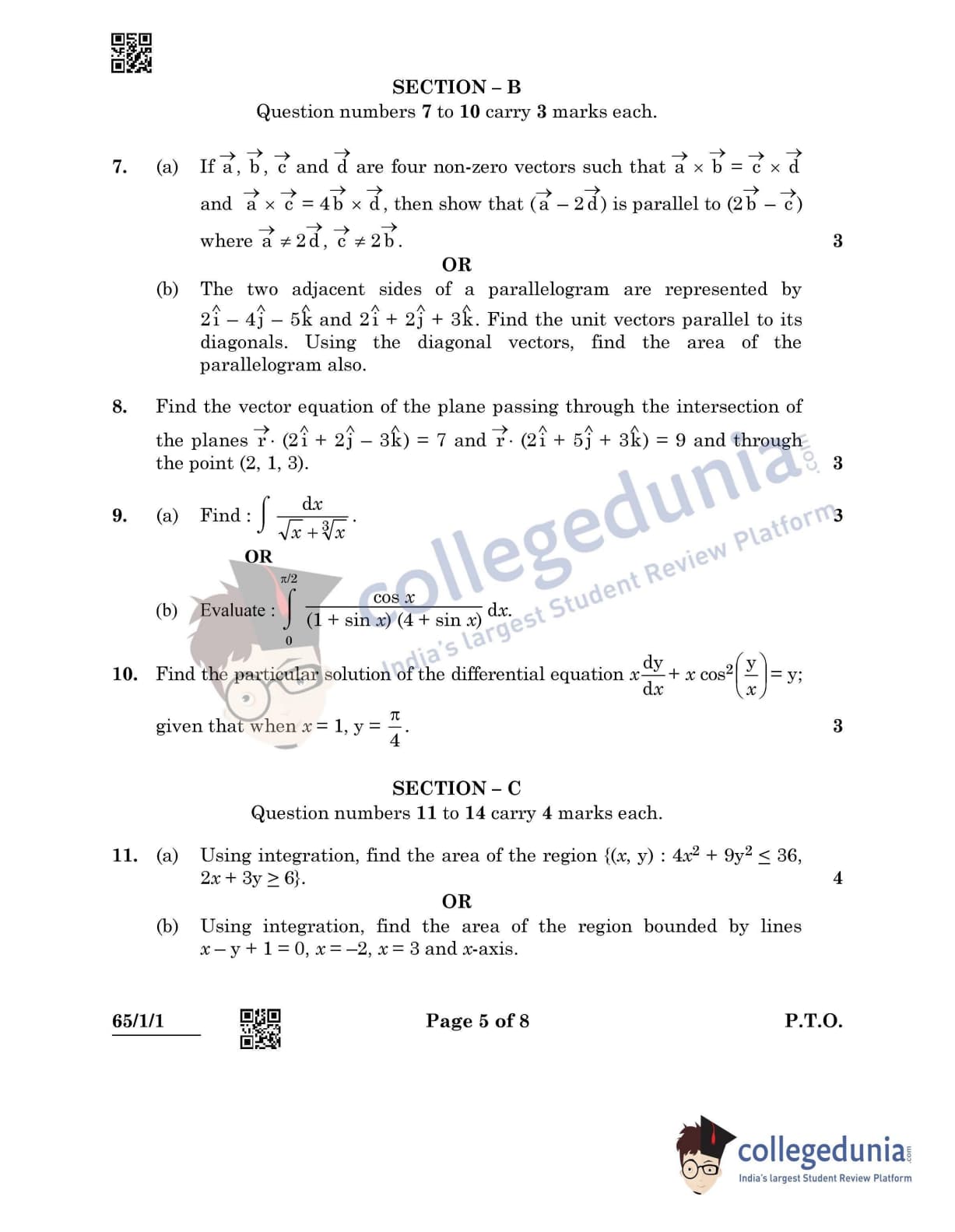 CBSE Class 12 Mathematics Set 1 - 65/1/1 Question Paper 2022 with Answer Key (June 7)