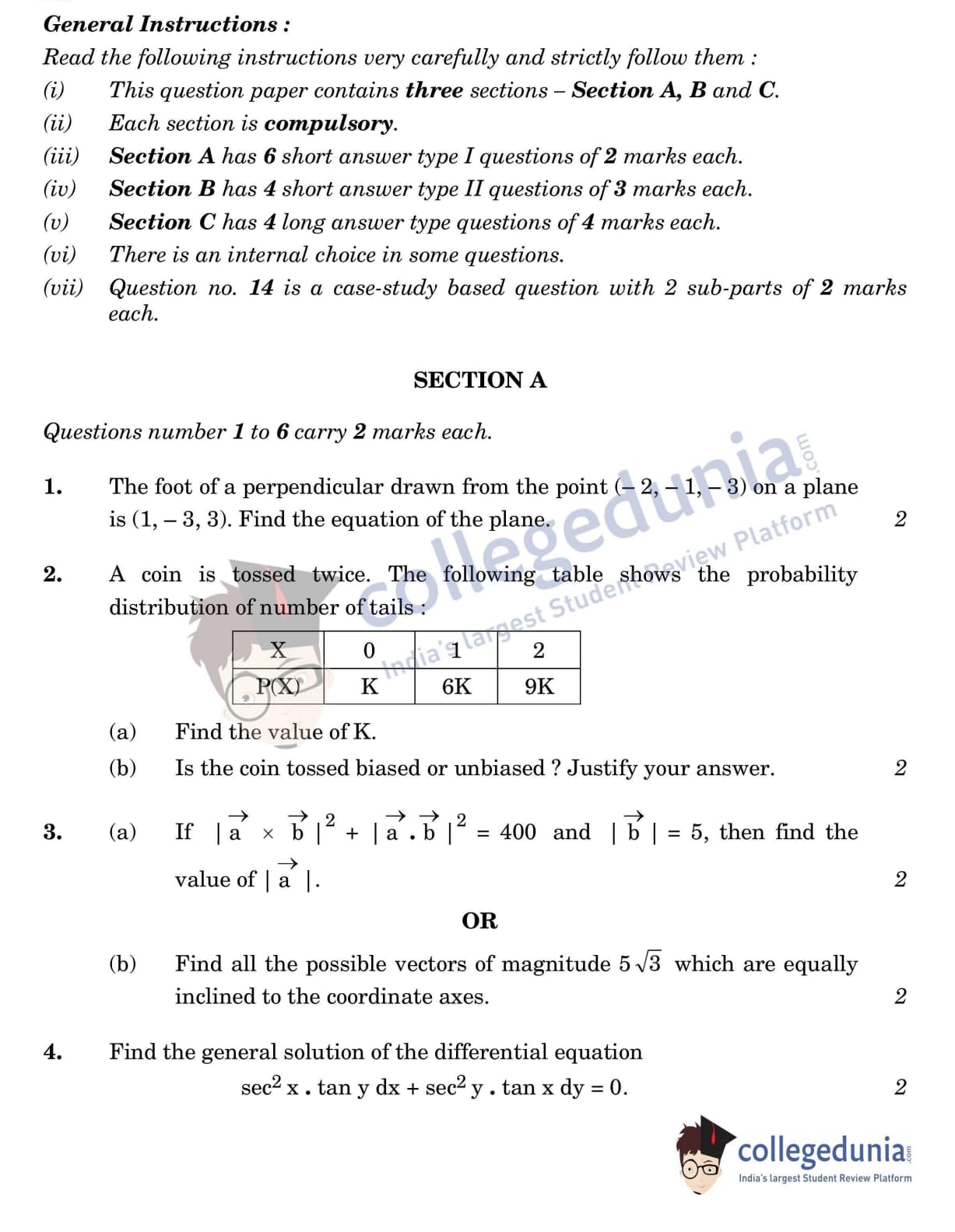 CBSE Class 12 2022 Mathematics Question Paper Set 2 - 65/4/2 with Answer Key pdf is available for download. The exam was conducted by Central Board of Secondary Education on June 7, 2022 in the Morning Session 10:30 AM to 12:30 PM. The medium of paper was English & Hindi. In terms of difficulty level, CBSE Class 12 Mathematics paper was of Moderate level. The question paper comprised a total of 14 questions divided among 3 sections.