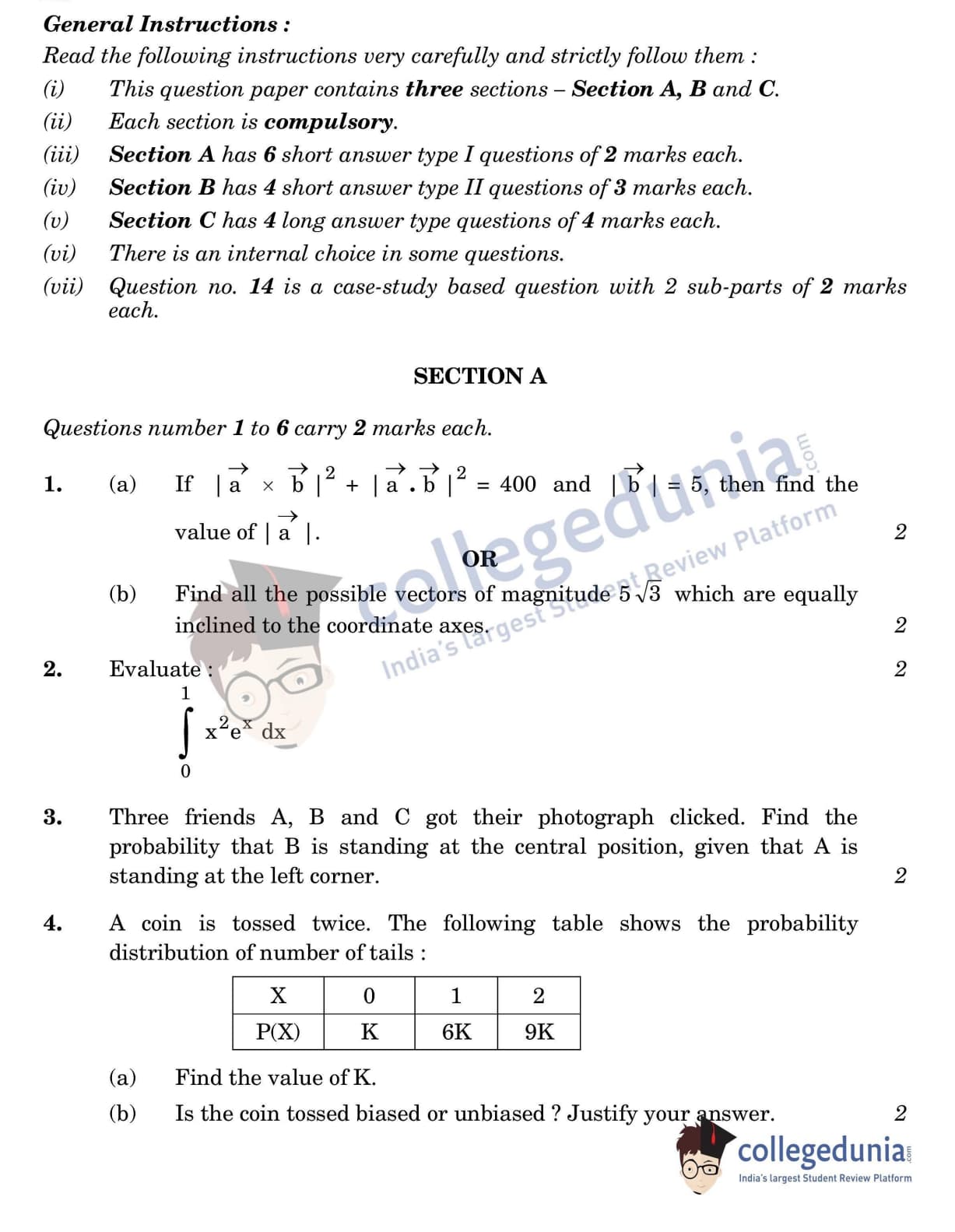CBSE Class 12 Mathematics Set 3 - 65/4/3 Question Paper 2022 with Answer Key (June 7)