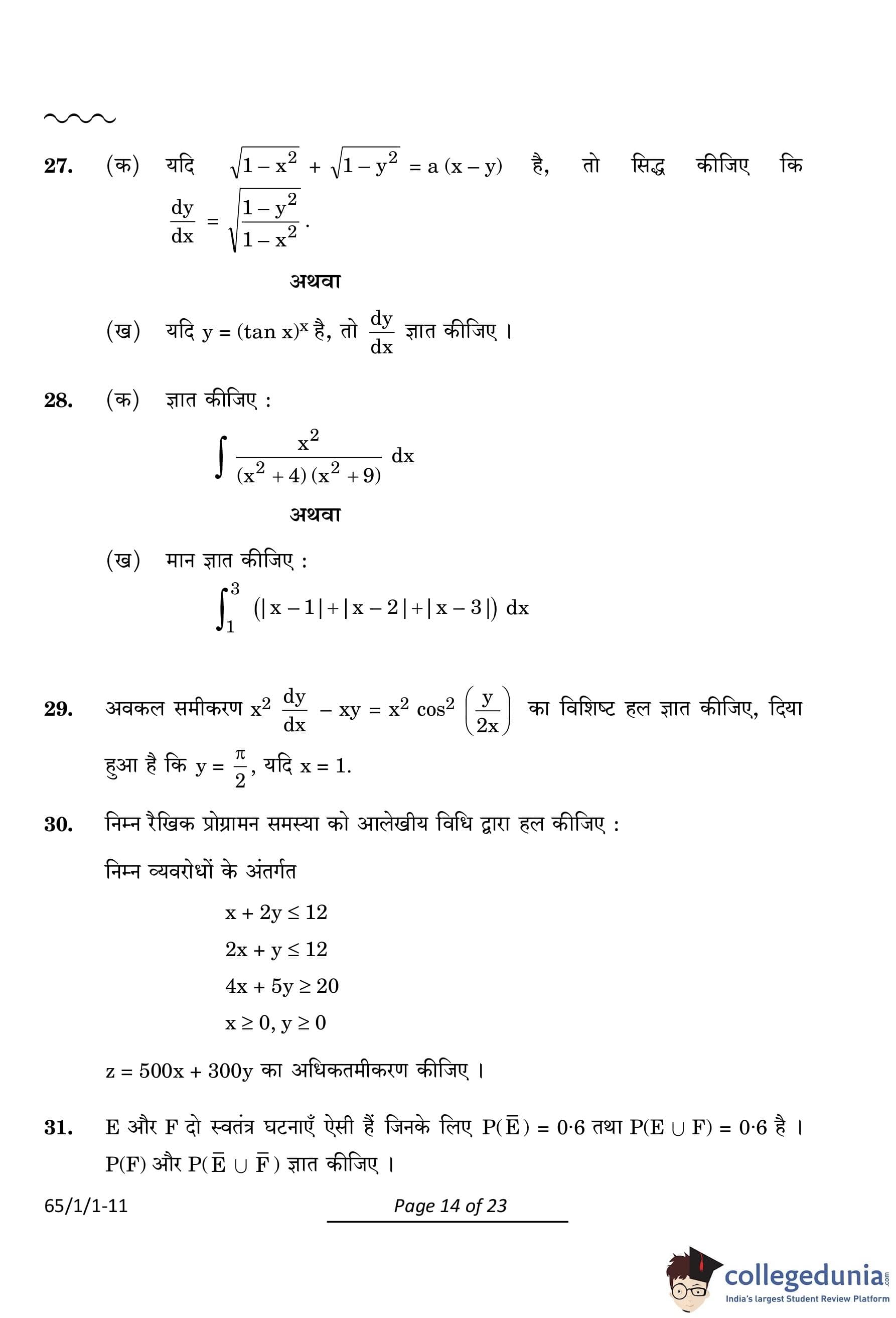 | CBSE Class 12 2024 Mathematics Question Paper with Answer Key | Check Solution |