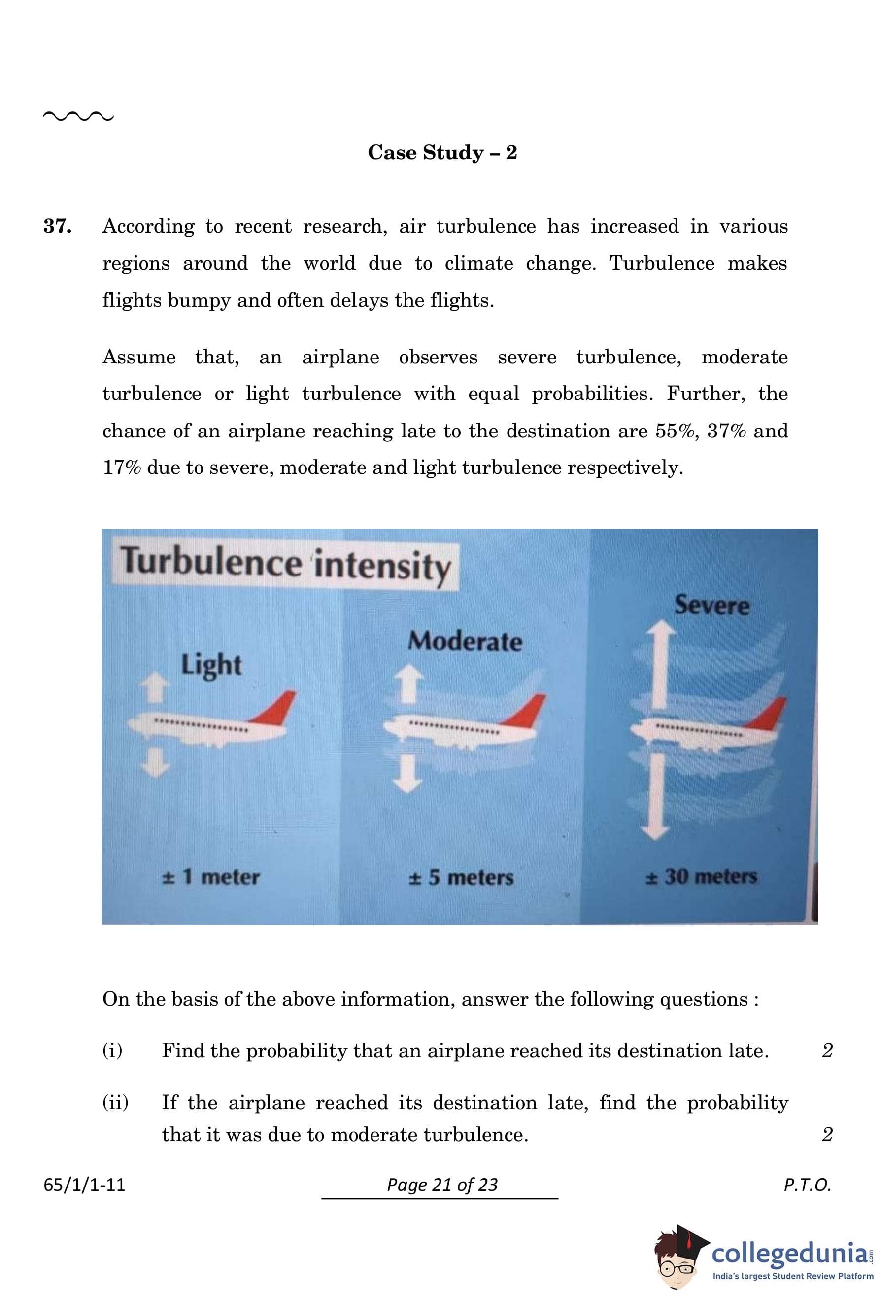 1. Turbulence can be severe, moderate, or light, each occurring with equal probabilities: