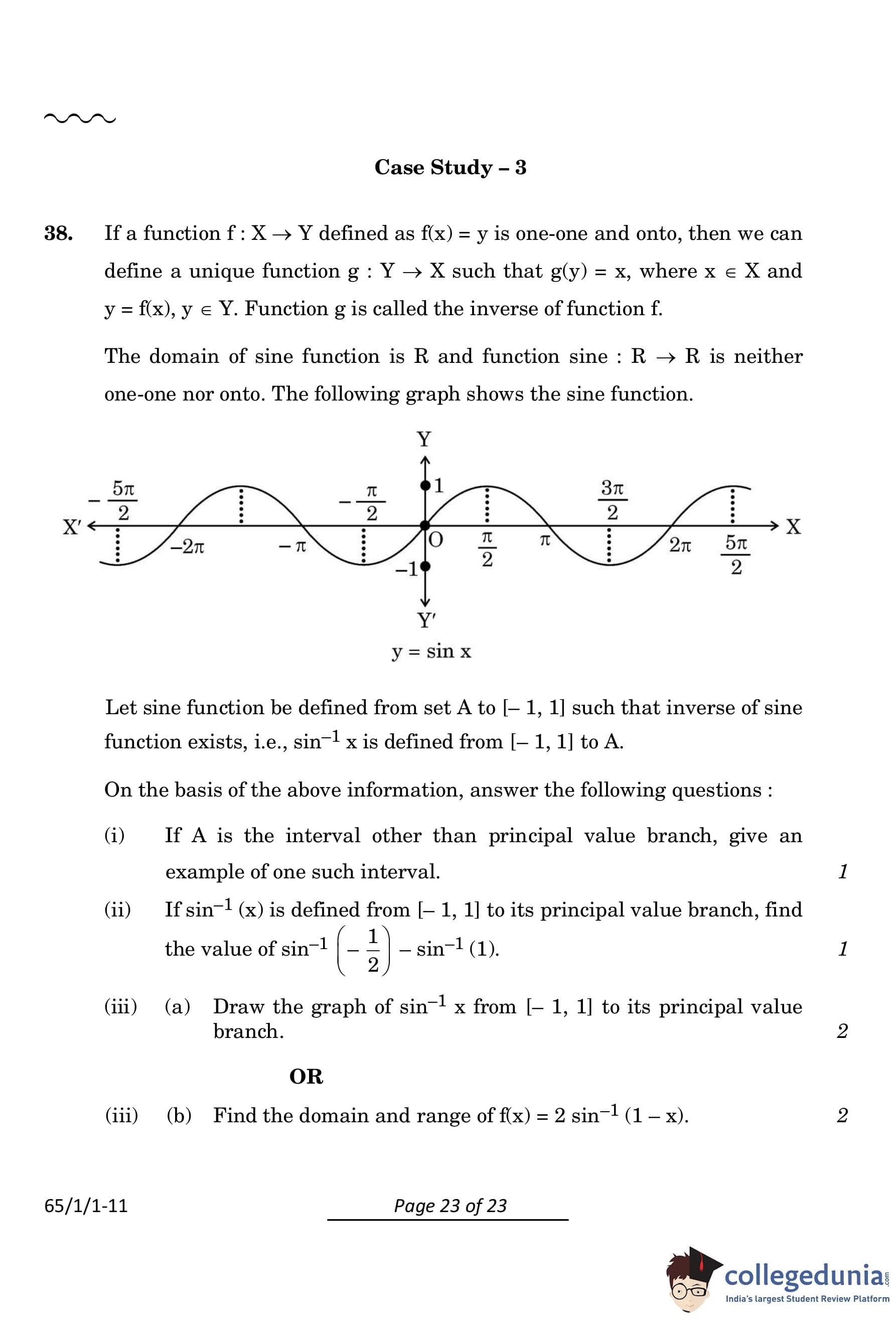 A = [π/2, 3π/2]. - (ii) If sin⁻¹(x) is defined from [-1, 1] to its principal value branch, find the value of: