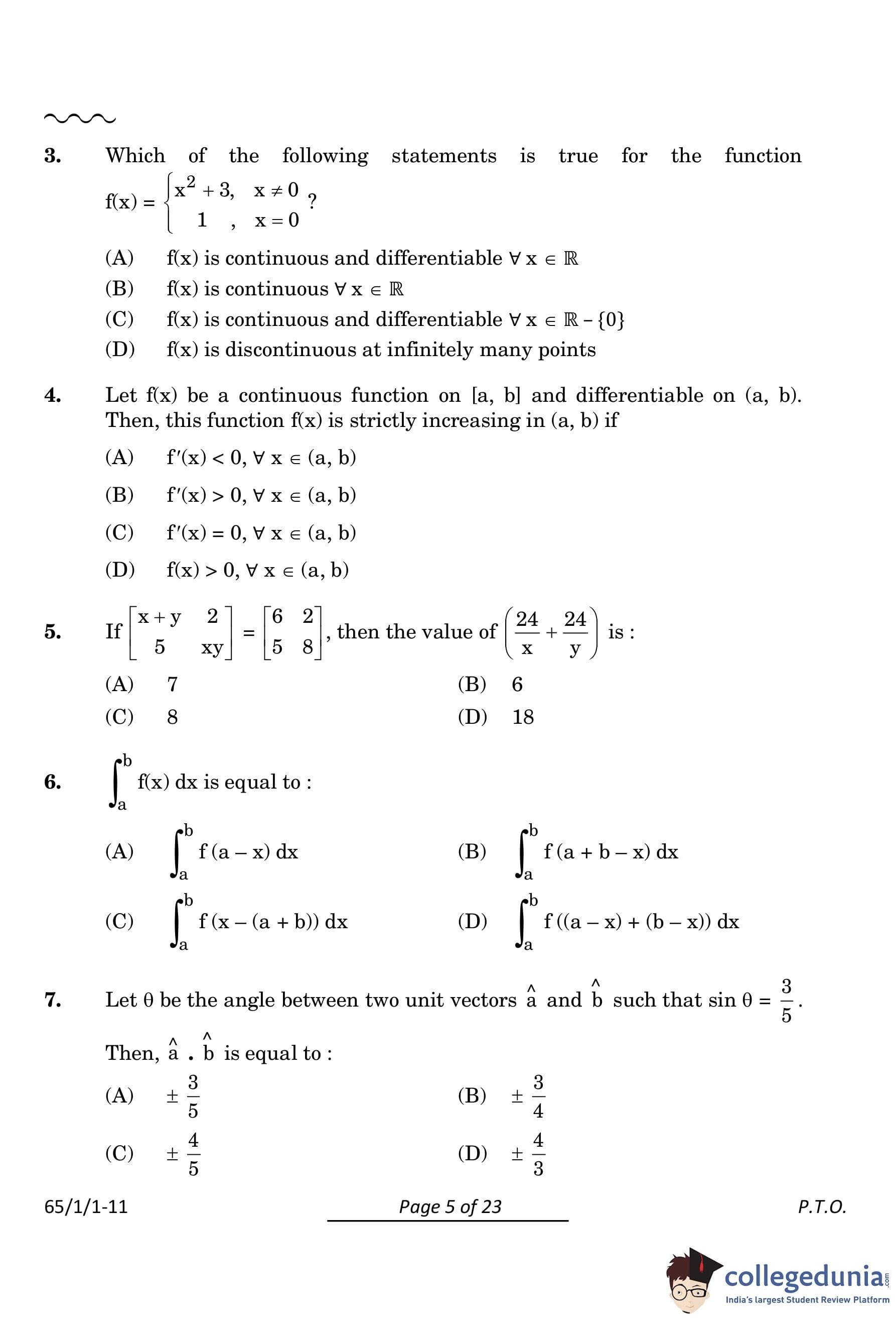 Final Answer: (C). Quick Tip: For continuity, check if the limit from both sides equals the function's value at the point. For differentiability, confirm that the derivative exists at every point within the specified domain.