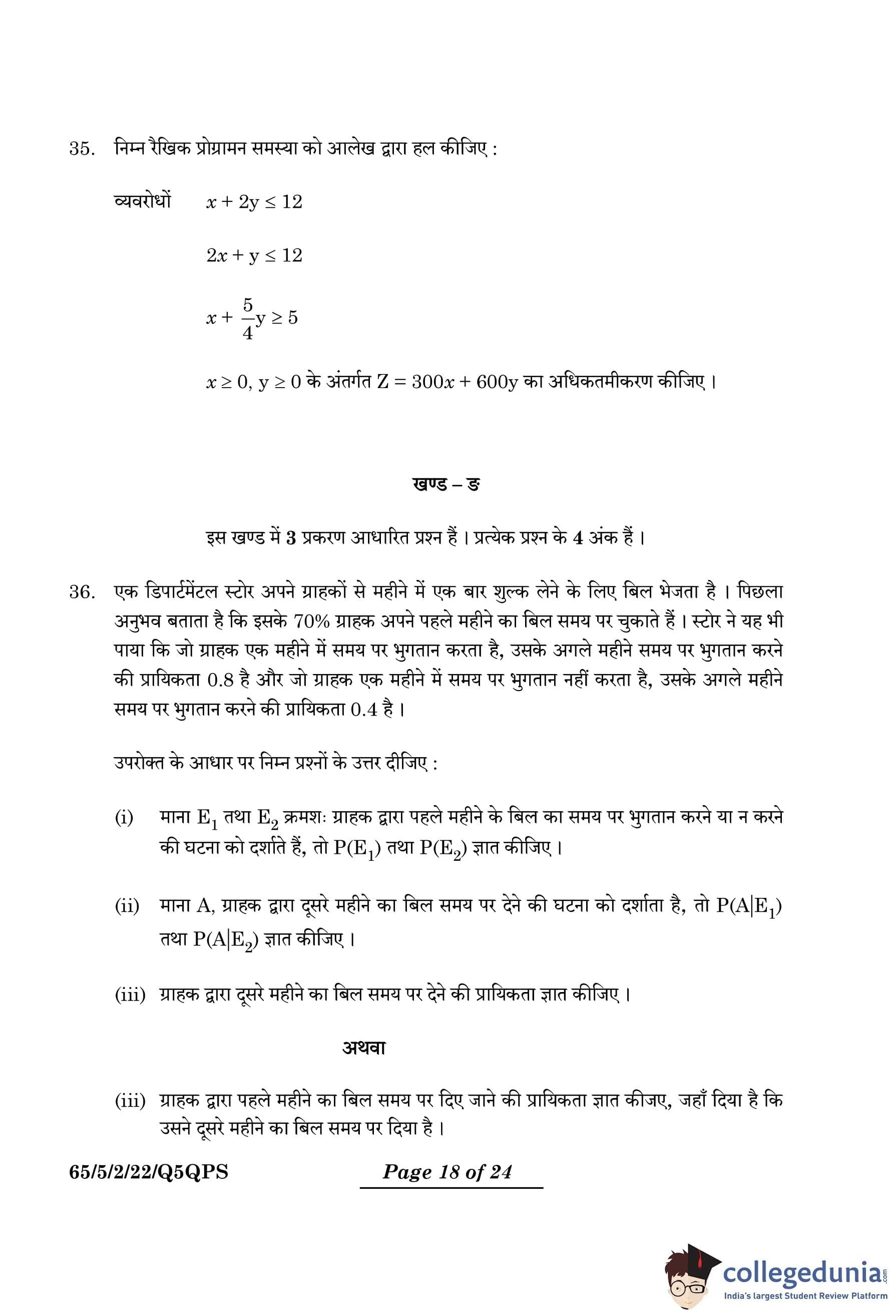 | CBSE Class 12 2024 Mathematics Question Paper with Answer Key | Check Solution |