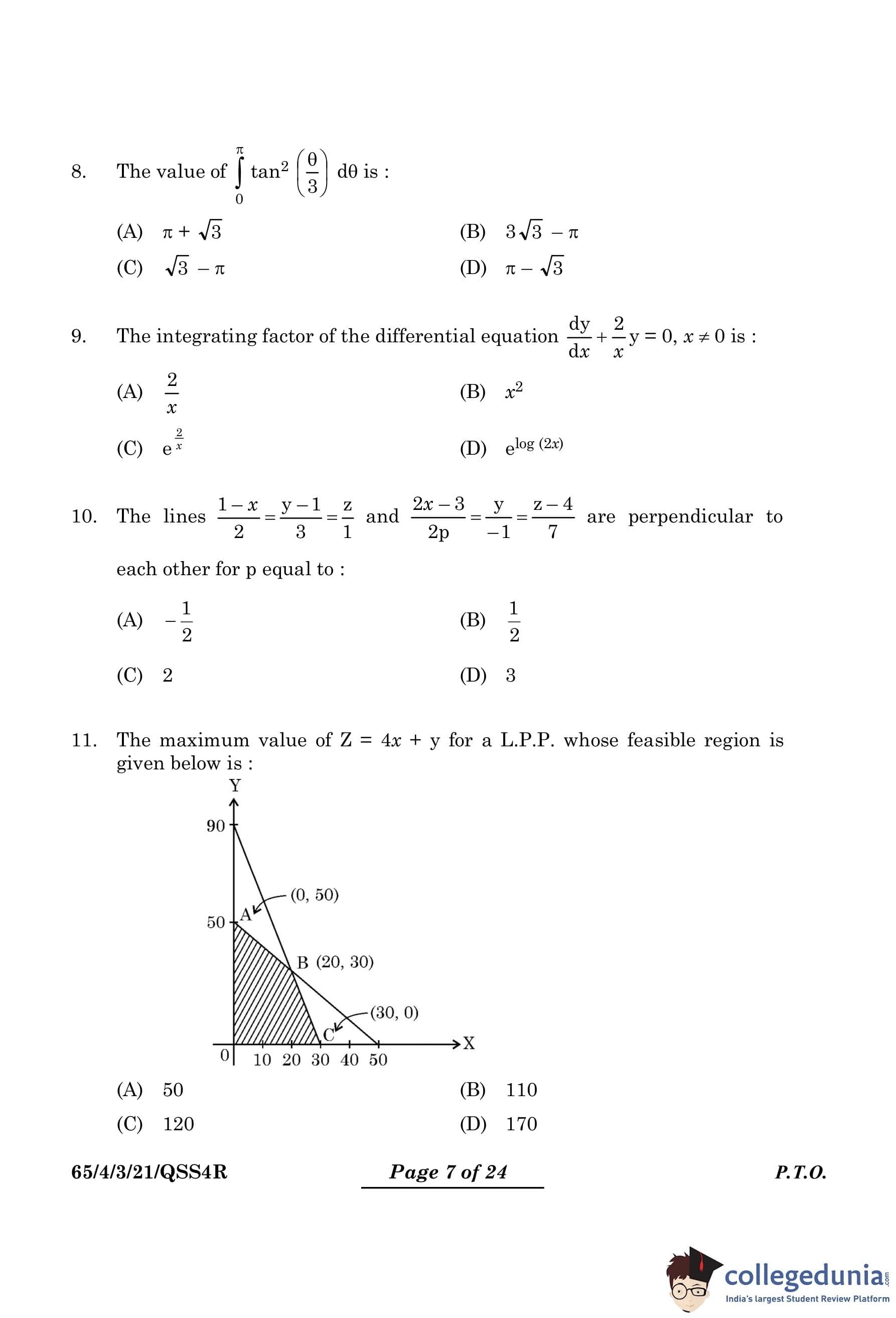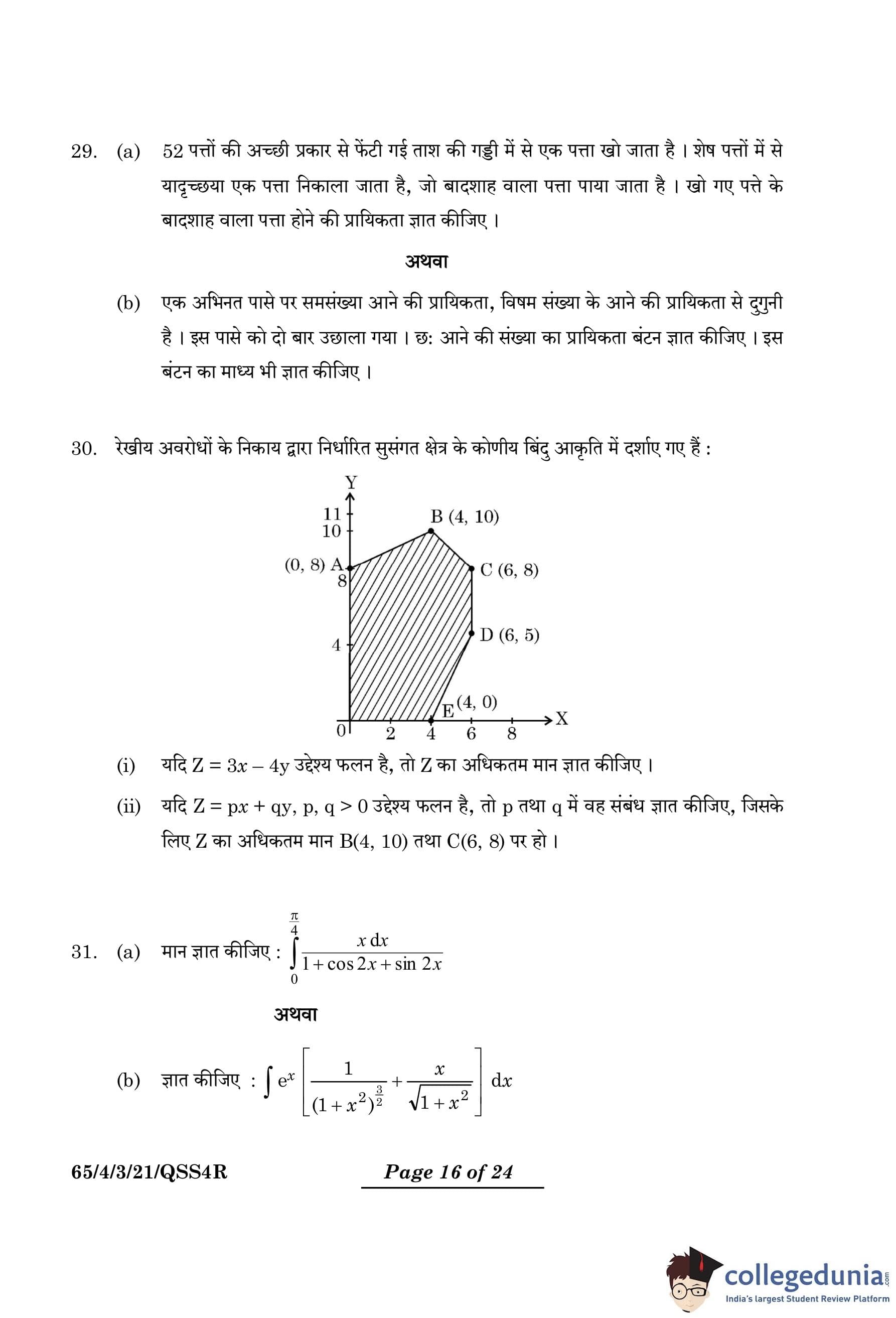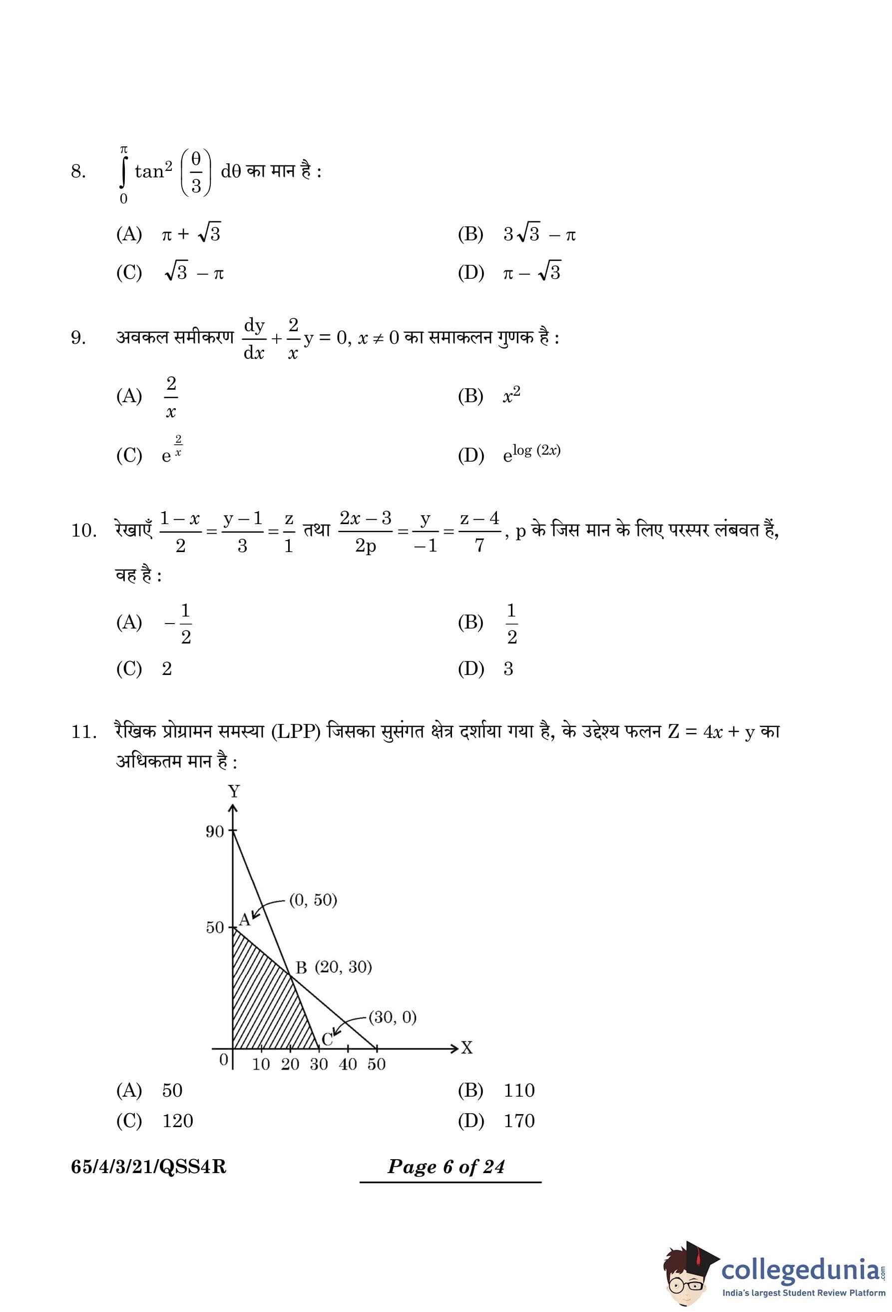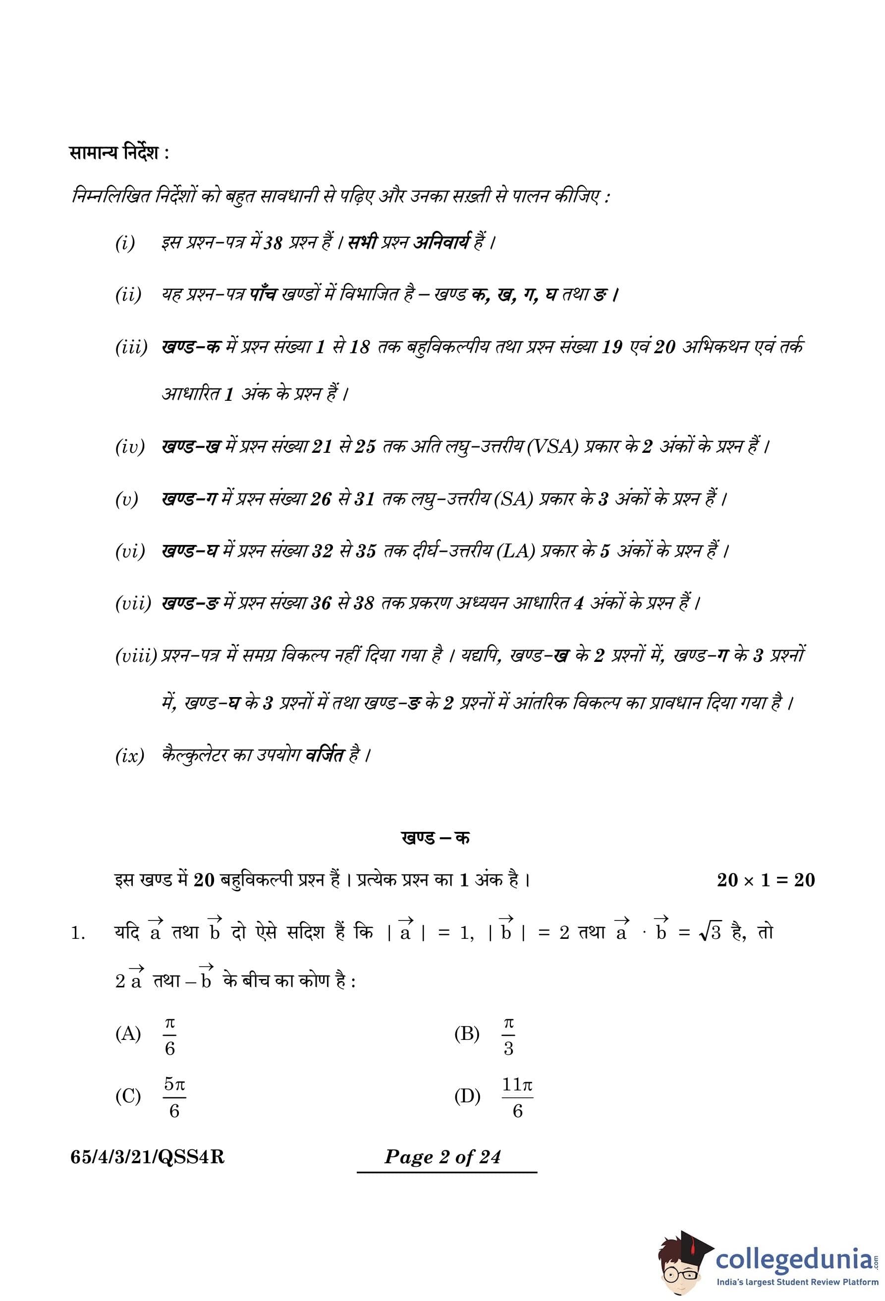 | CBSE Class 12 2024 Mathematics Question Paper with Answer Key | Check Solution |
