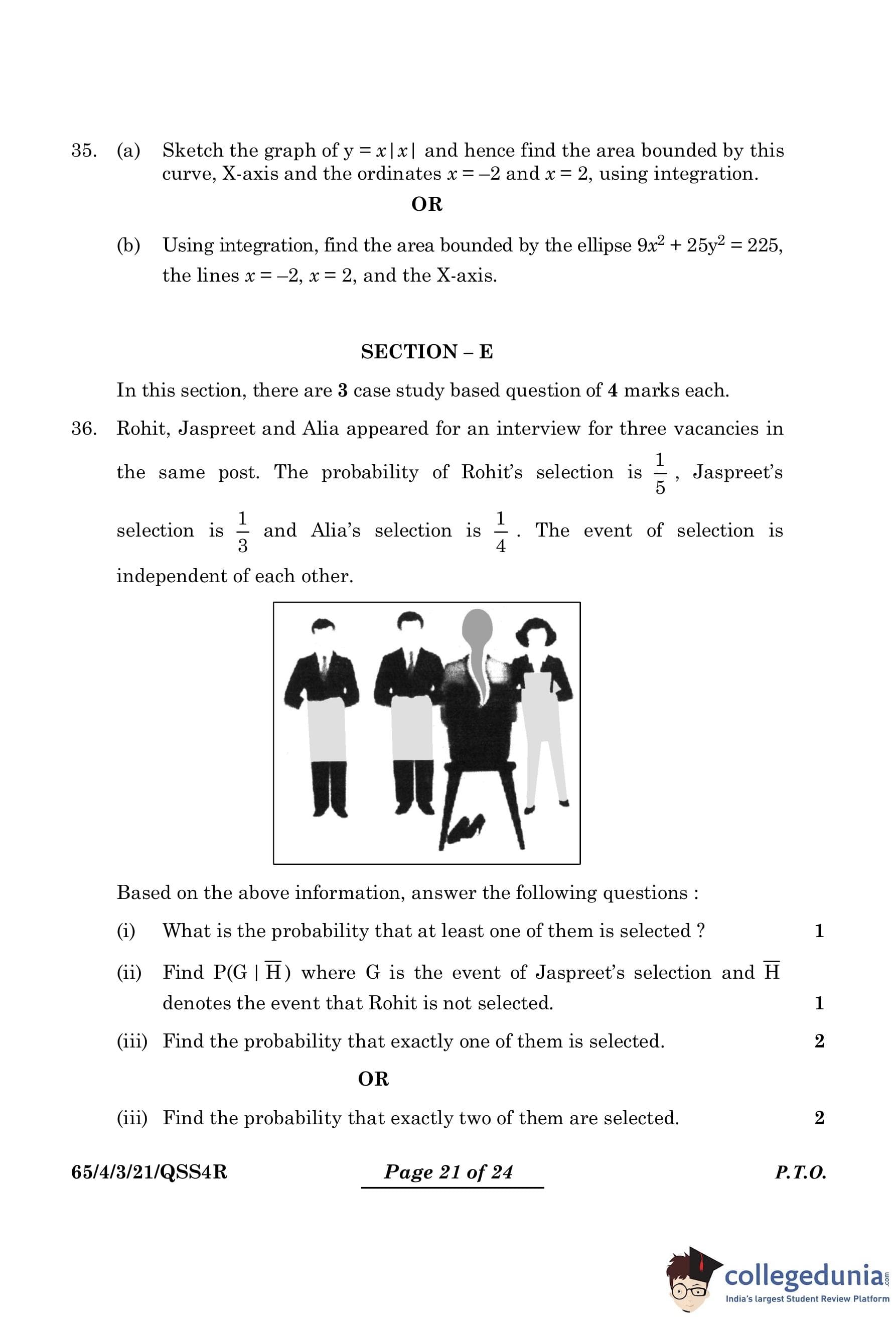 - Find P(G | H), where G is the event of Jaspreet’s selection and H denotes the event that Rohit is not selected.