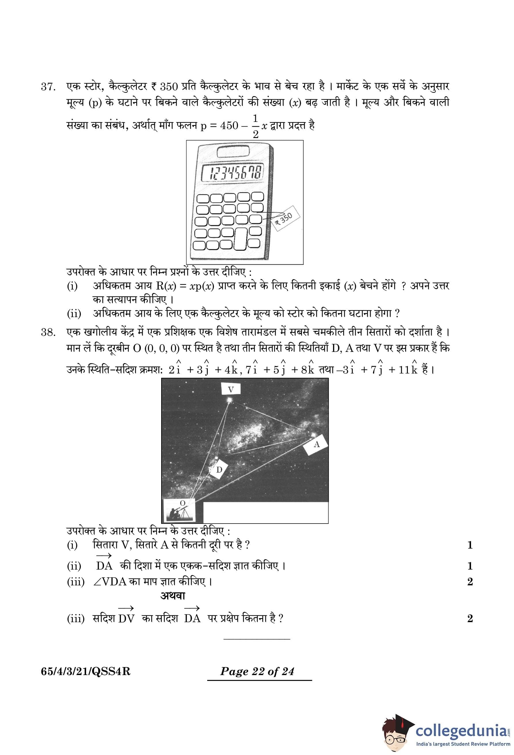 37. A store has been selling calculators at 350 each. A market survey indicates that a reduction in price (p) of the calculator increases the number of units (x) sold. The relation between the price and quantity sold is given by the demand function: