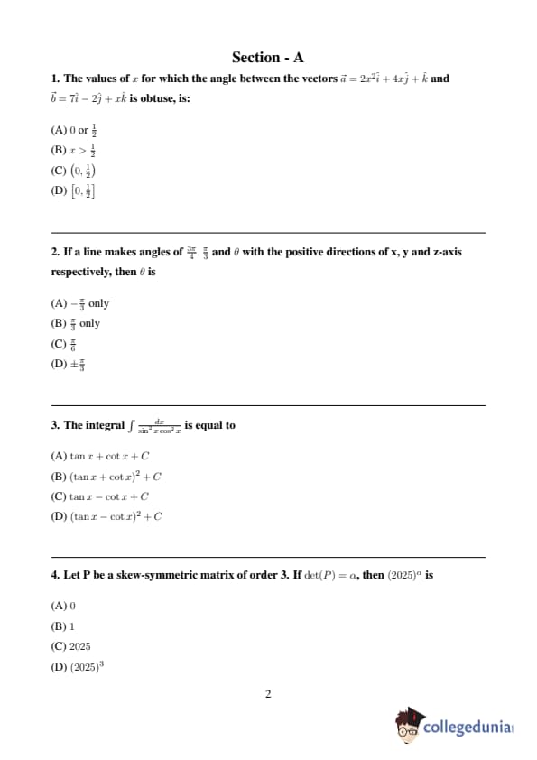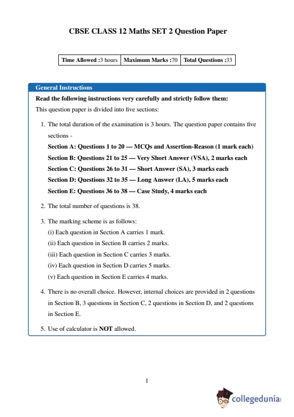 | CBSE Class 12 2025 Mathematics Question Paper With Answer Key | Download | Check Solution |