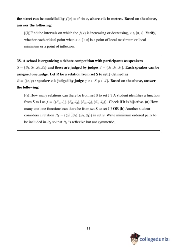 The point \( x = \frac{\pi}{2} \) is a point of inflexion. Quick Tip: To find intervals of increasing/decreasing functions, analyze the sign of the first derivative. Critical points occur where the first derivative is zero or undefined. The second derivative test helps determine if a critical point is a local maximum, local minimum, or neither. Points of inflexion occur where the second derivative is zero and the concavity changes.