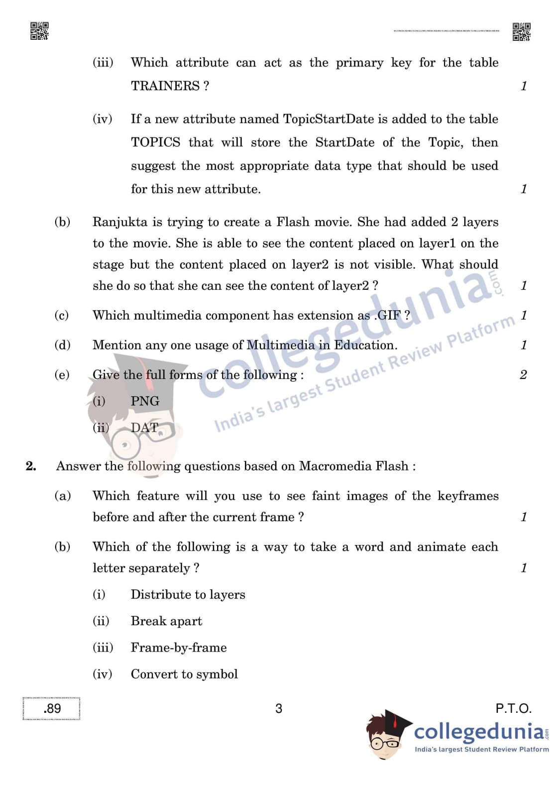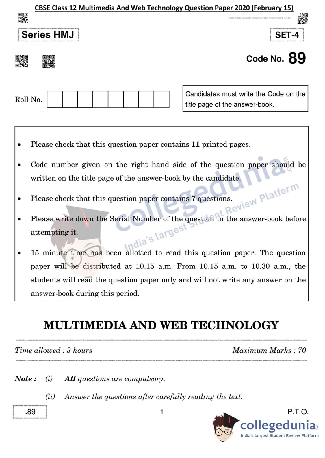 CBSE Class 12 Multimedia And Web Technology Question Paper 2020 with Answer Key (February 15)