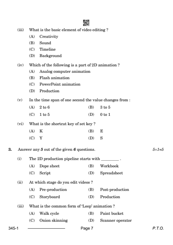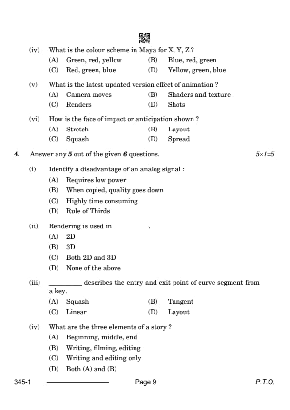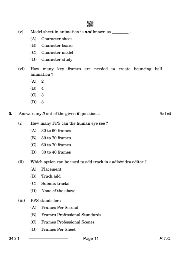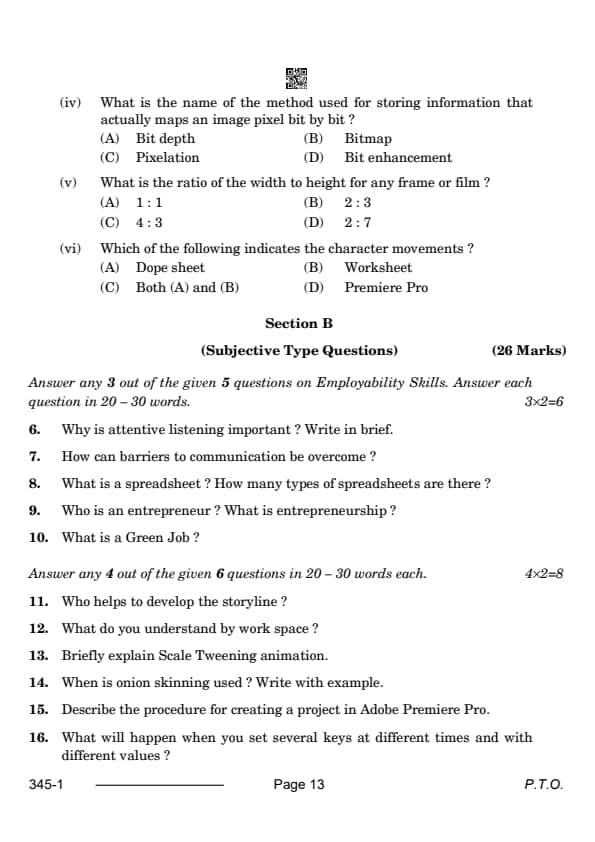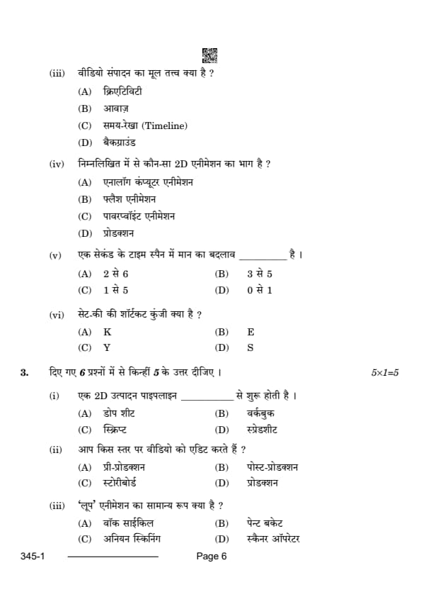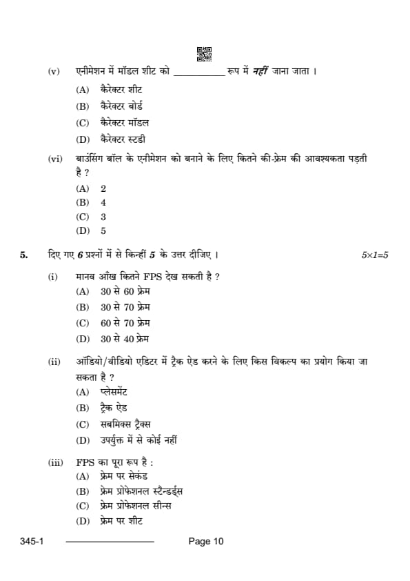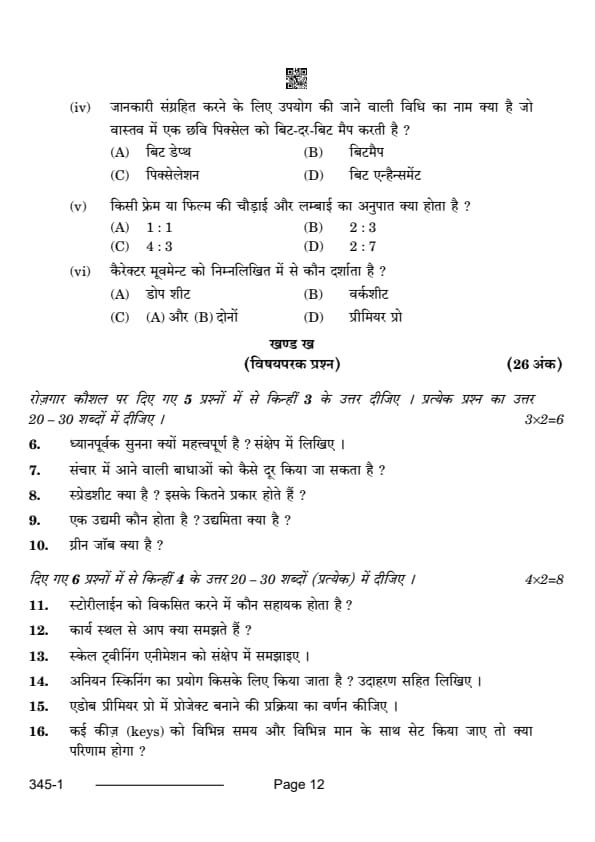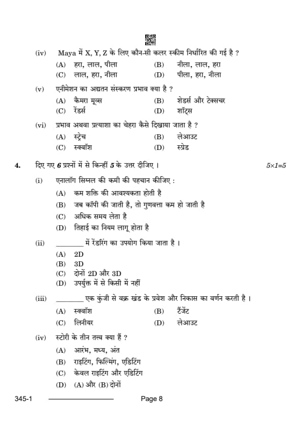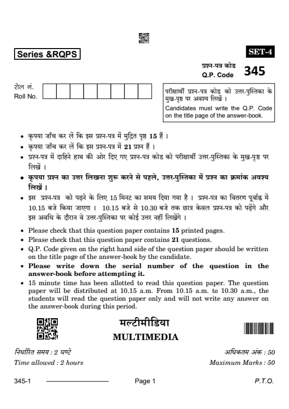 CBSE Class 12 Multimedia Question Paper 2024 with Answer Key