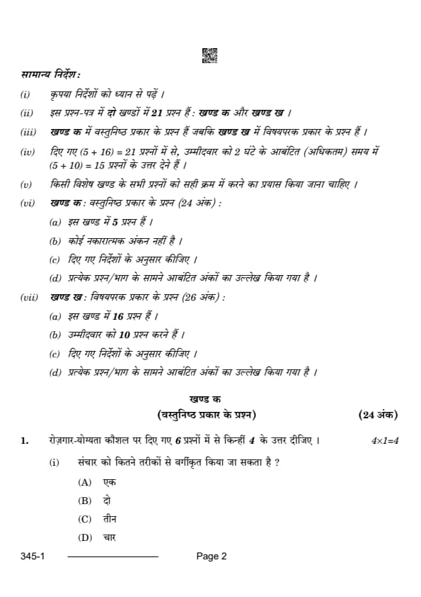 CBSE Class 12 2024 Multimedia Question Paper with Answer Key pdf is available for download here. The exam was conducted by Central Board of Secondary Education on February 27, 2024. The question paper comprised a total of 21 questions divided among 2 sections.