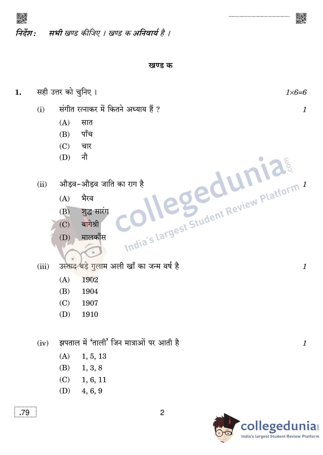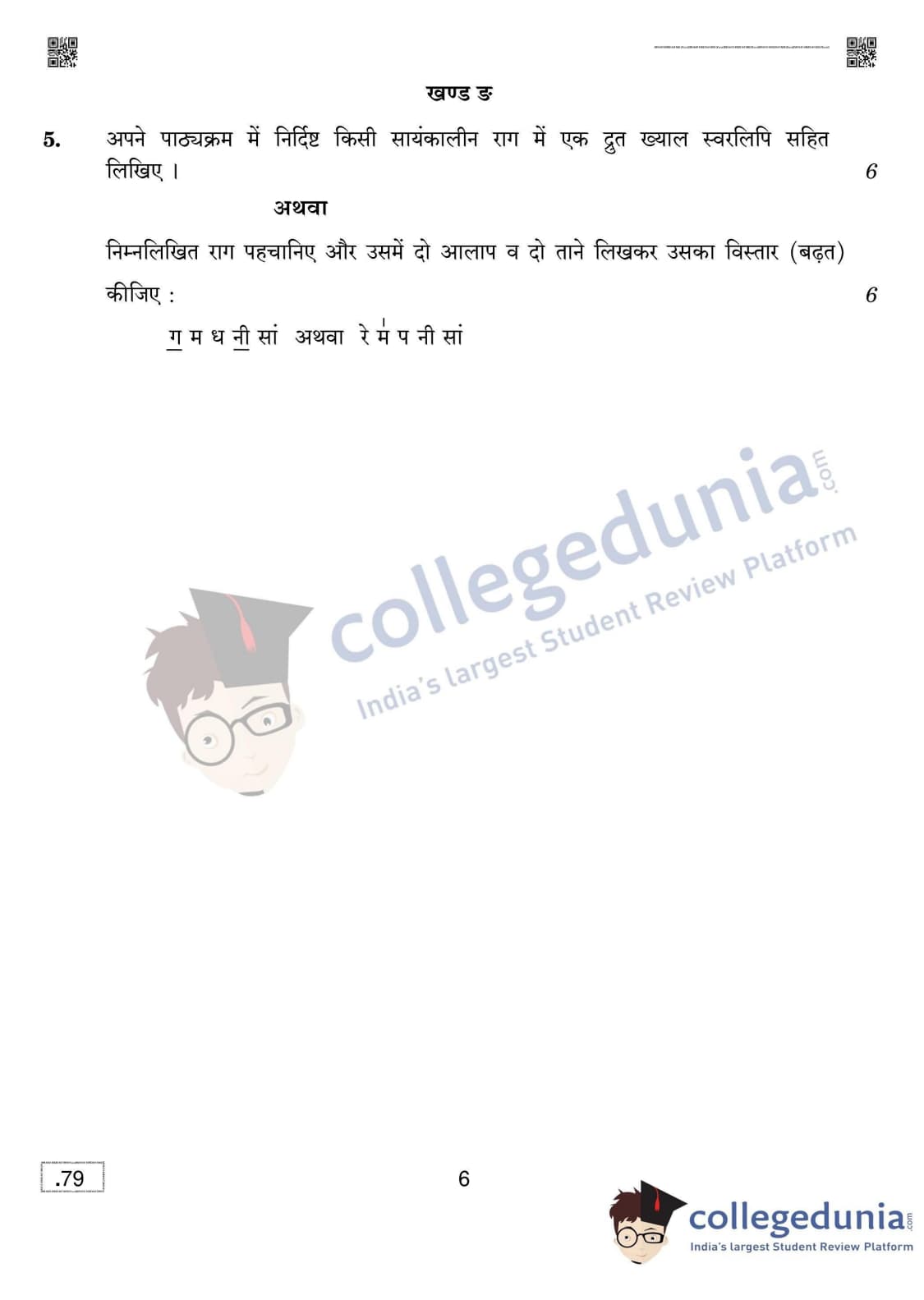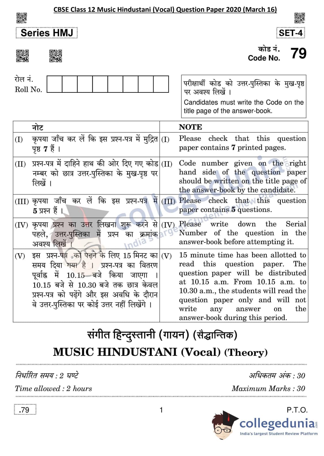 | CBSE Class 12 Music Hindustani (Vocal) Question Paper 2020 PDF | CBSE Class 12 Music Hindustani (Vocal) Answer Key 2020 PDF |