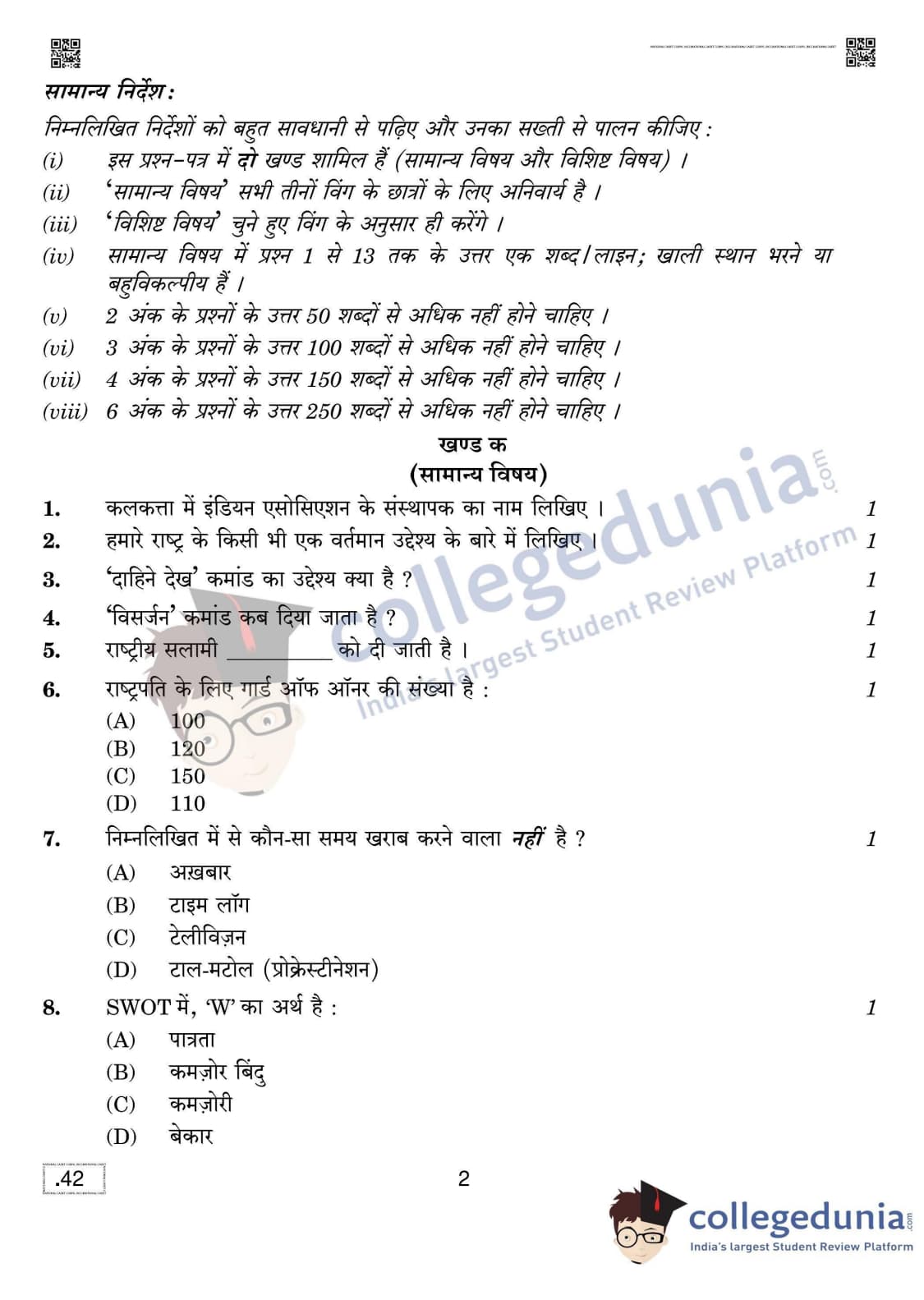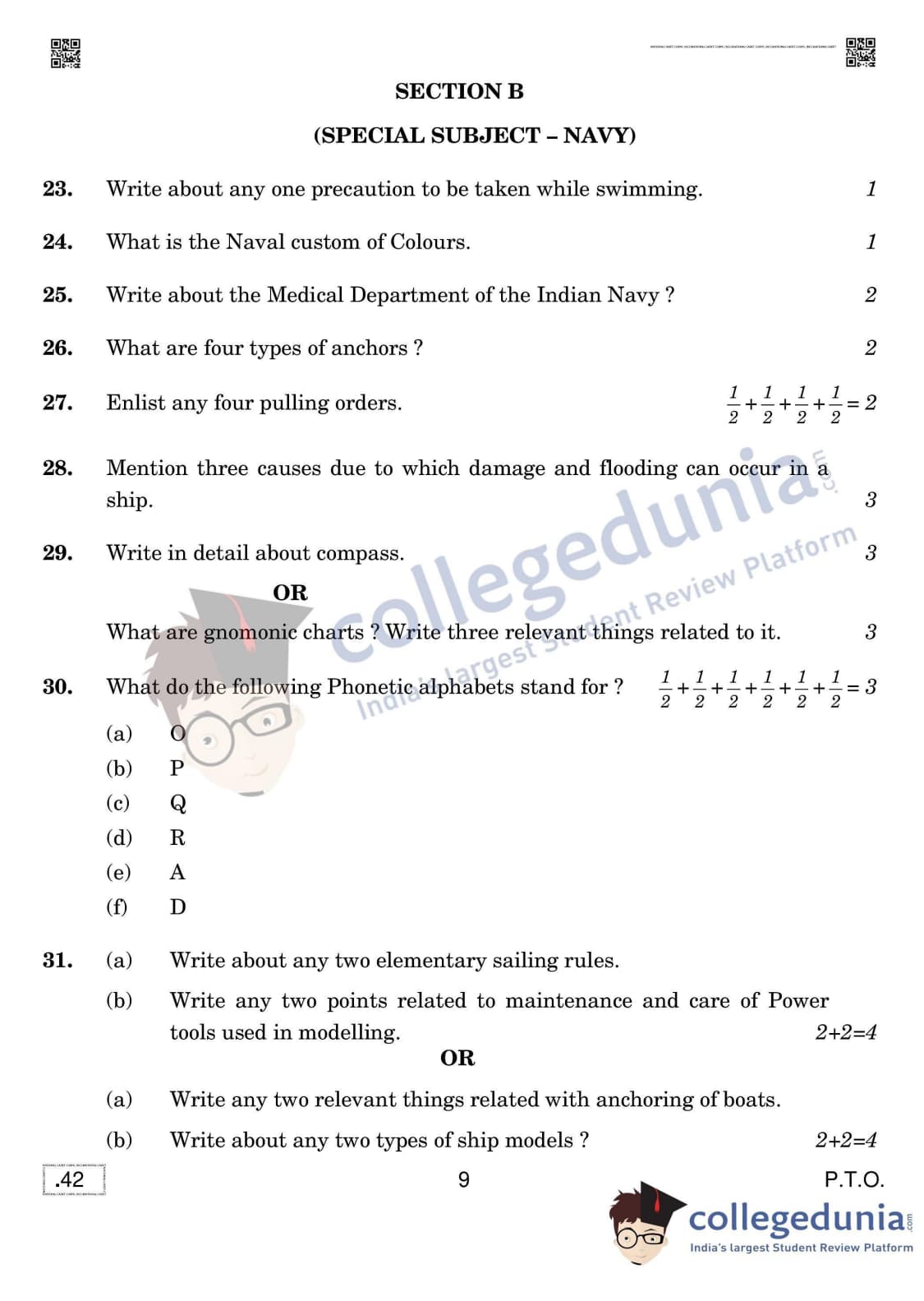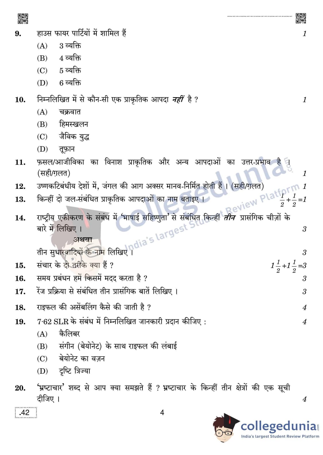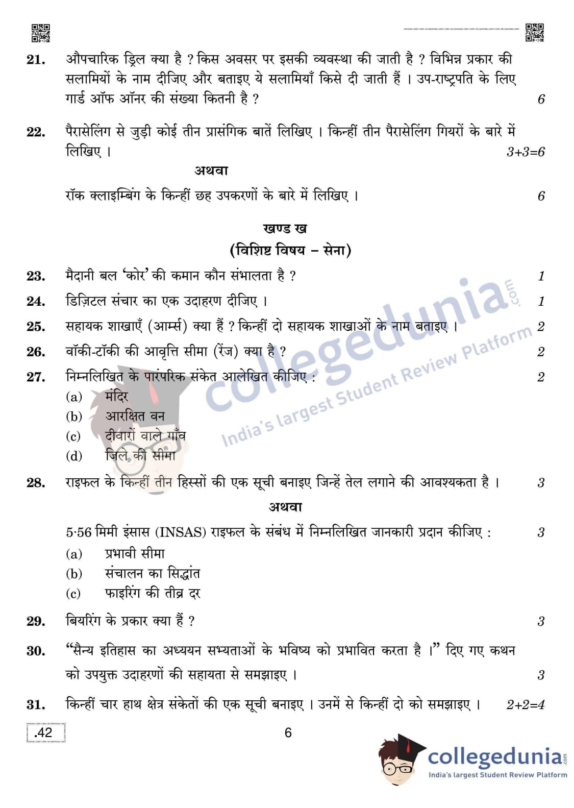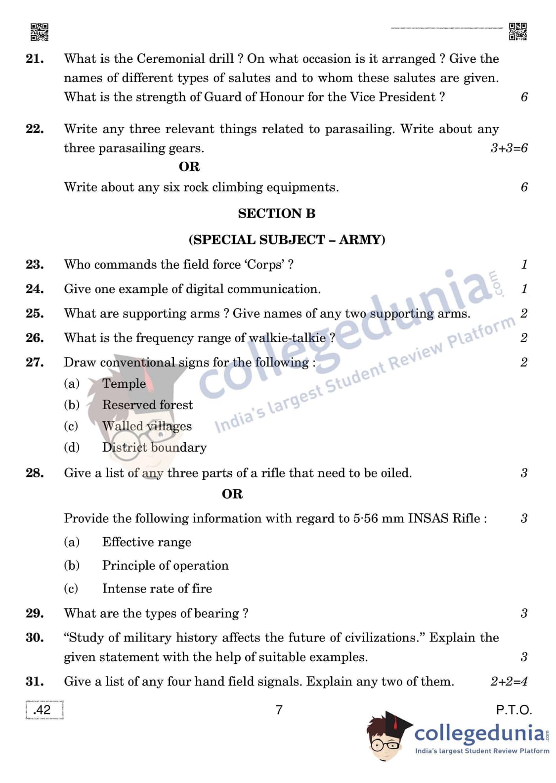 CBSE Class 12 National Cadet Corps Question Paper 2020 with Answer Key Set 4 is available for download. The exam was conducted by the Central Board of Secondary Education on February 28, 2020 in the Morning Session 10:30 AM to 1:30 PM. The medium of paper was English & Hindi. The question paper comprised a total of 31 questions divided among 2 sections.