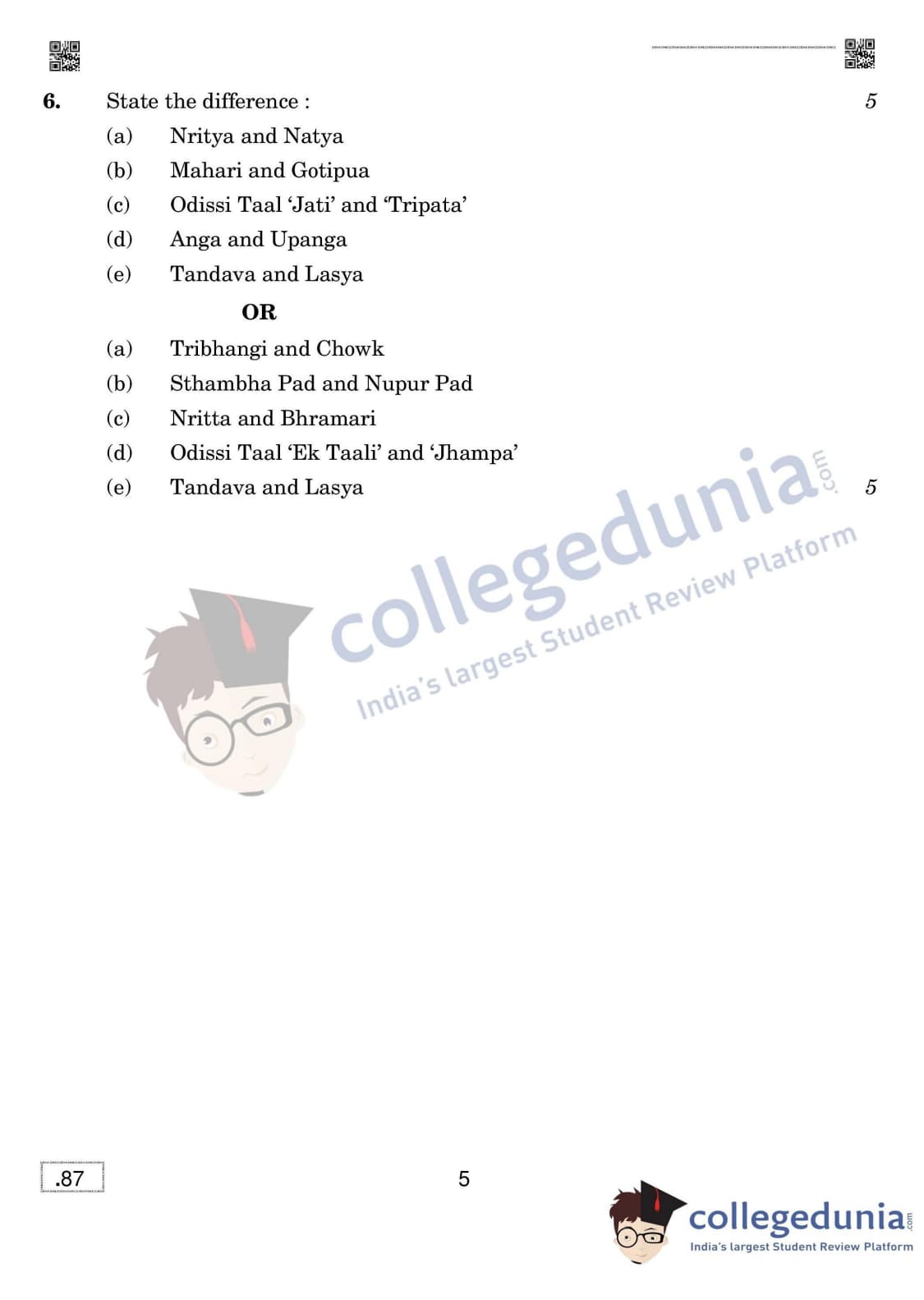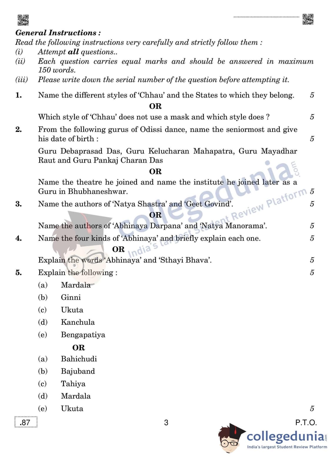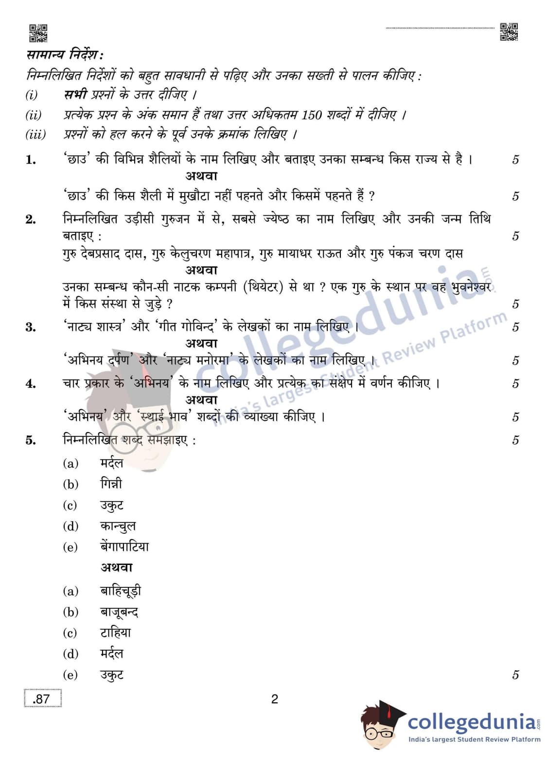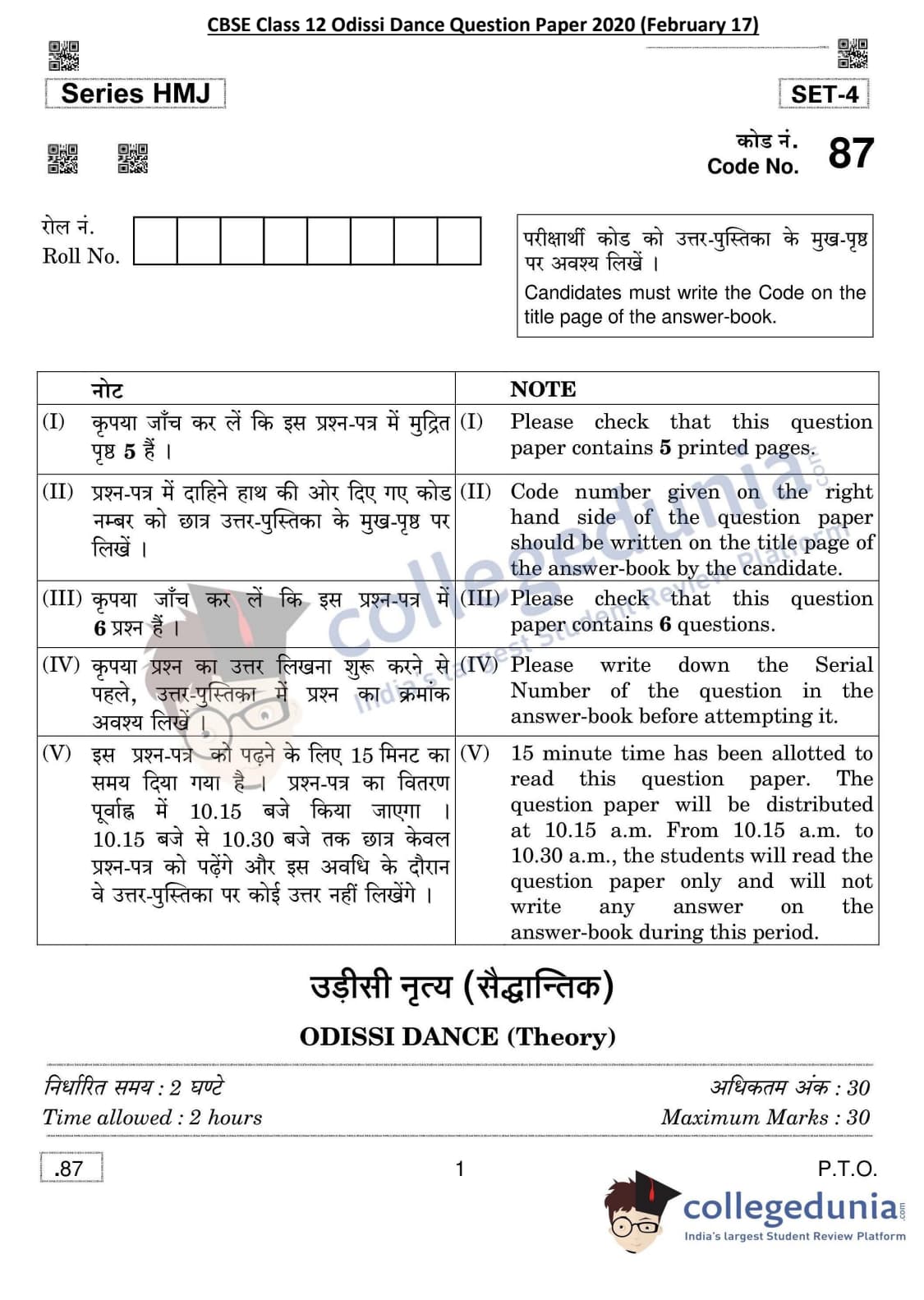 CBSE Class 12 Odissi Dance Question Paper 2020 with Answer Key (February 17)