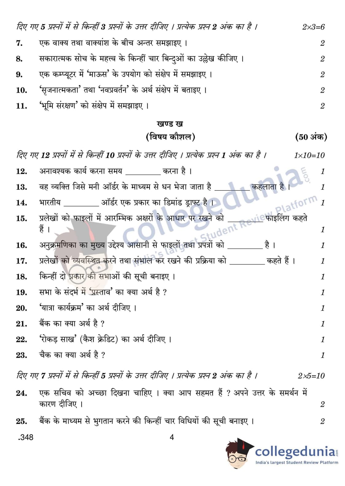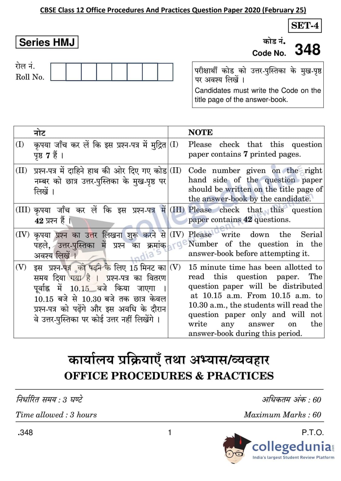 CBSE Class 12 Office Procedures And Practices Question Paper 2020 with Answer Key Set 4 is available for download. The exam was conducted by the Central Board of Secondary Education on February 25, 2020 in the Morning Session 10:30 AM to 1:30 PM. The medium of paper was English & Hindi. The question paper comprised a total of 42 questions divided among 2 sections.
