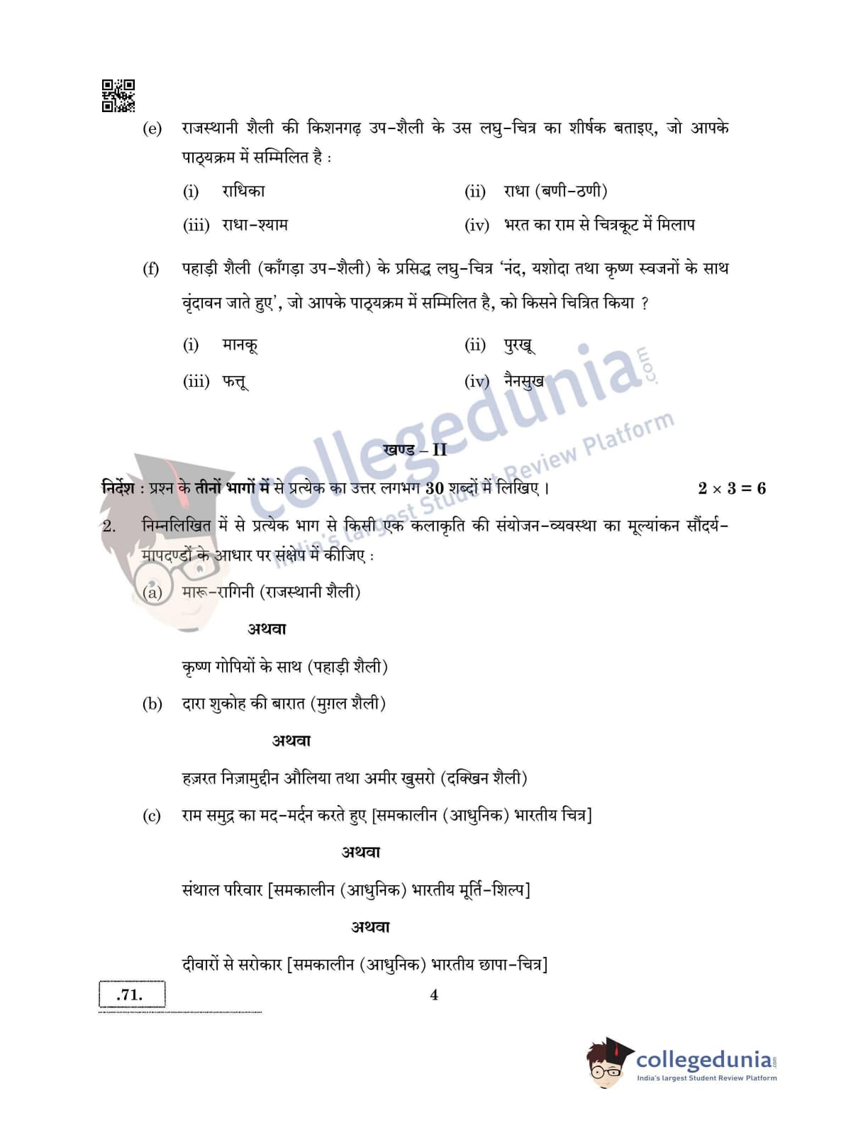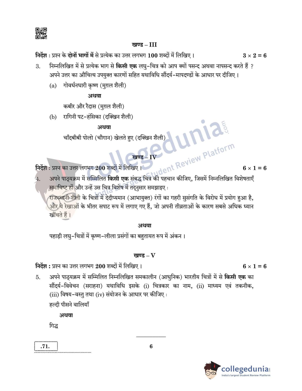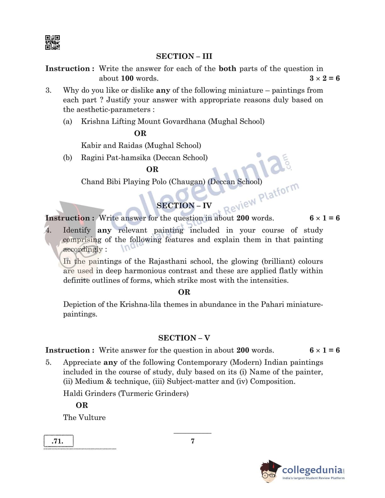 CBSE Class 12 Painting (Theory) Set 4 Question Paper 2020 with Answer Key (February 20)
