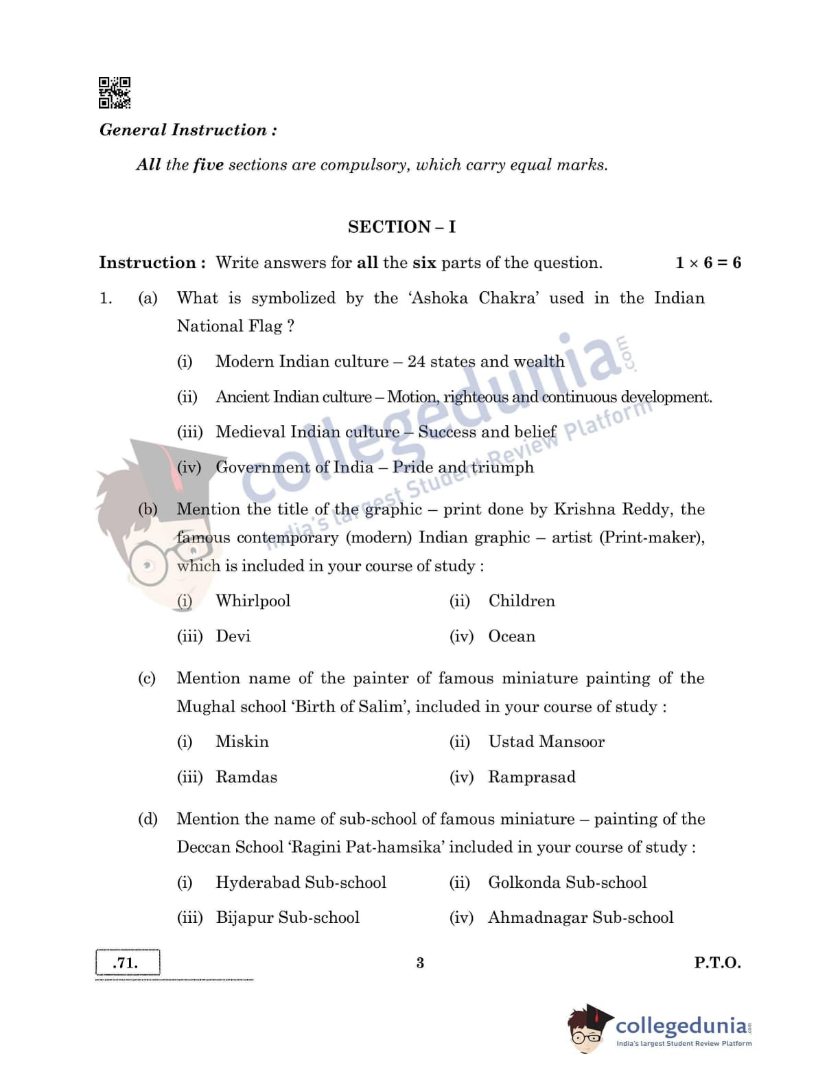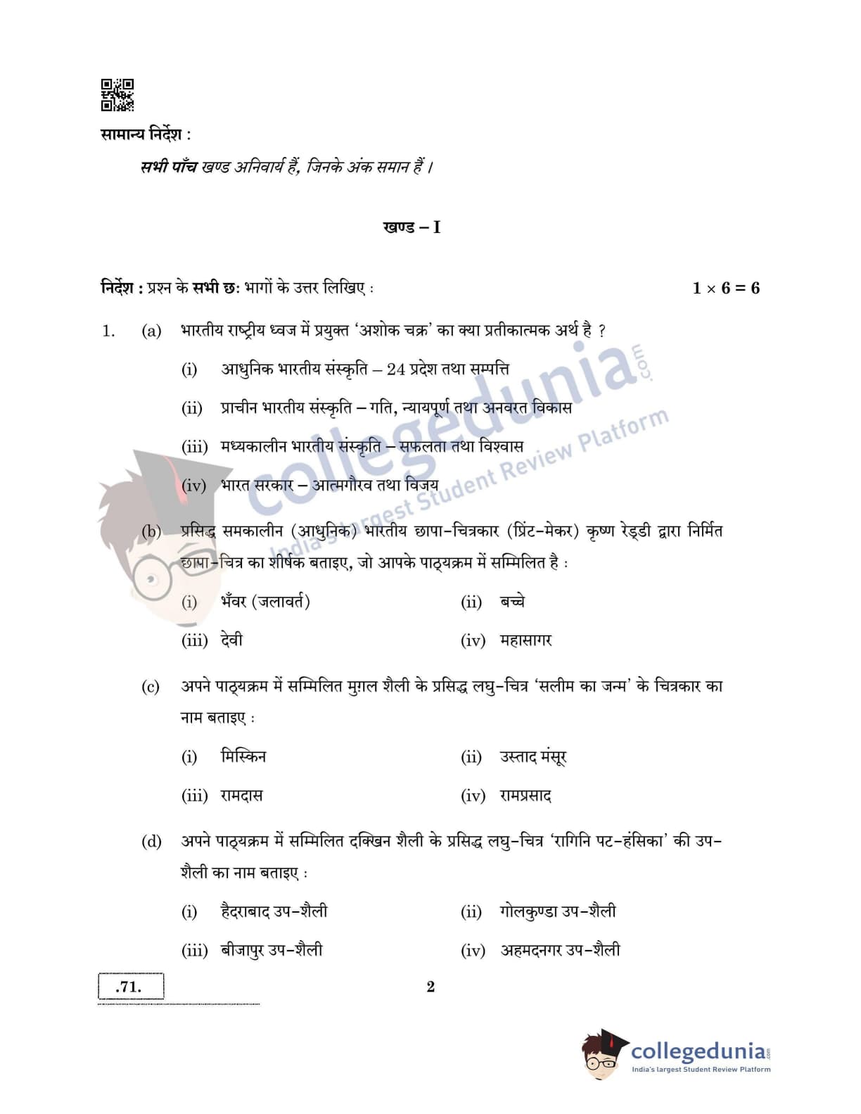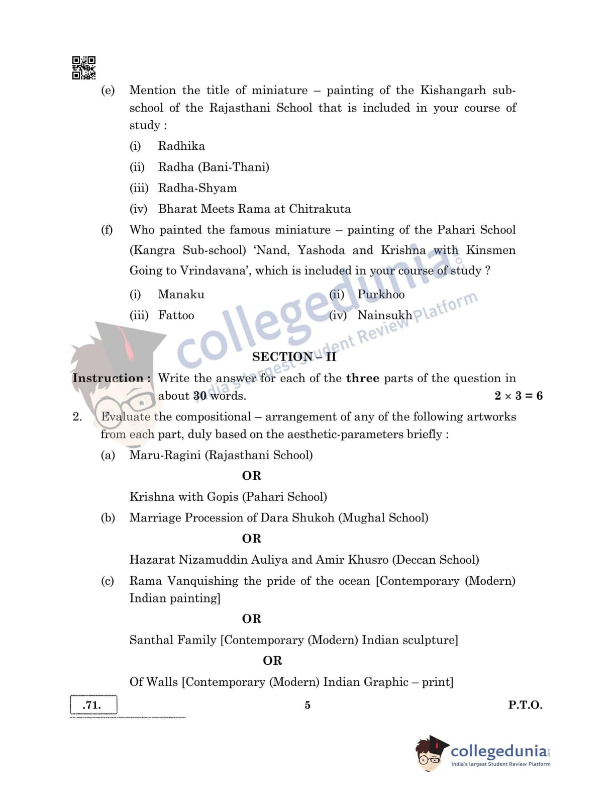 CBSE Class 12 Painting (Theory) Set 4 Question Paper 2020 with Answer Key (February 20)