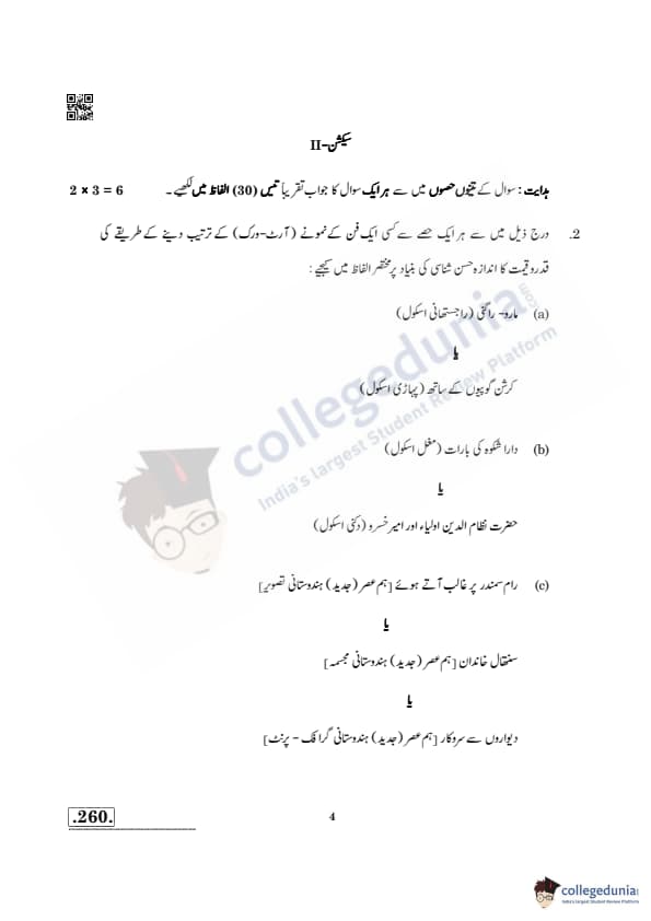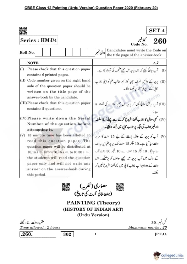 CBSE Class 12 Painting (Urdu Version) Question Paper 2020 with Answer Key (February 20)