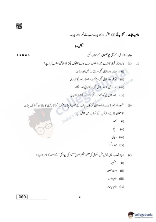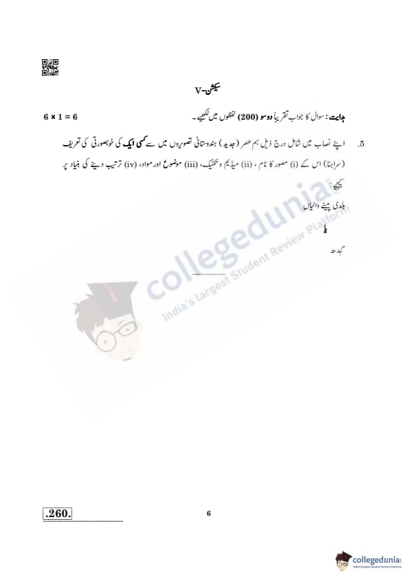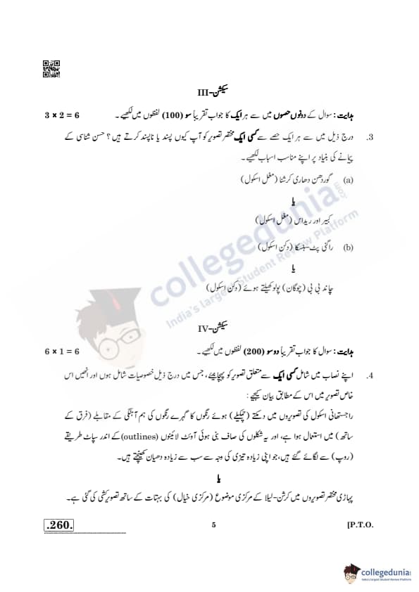 CBSE Class 12 Painting (Urdu Version) Question Paper 2020 with Answer Key Set 4 is available for download. The exam was conducted by the Central Board of Secondary Education on February 20, 2020 in the Morning Session 10:30 AM to 12:30 PM. The medium of paper was Urdu. In terms of difficulty level, CBSE Class 12 Painting (Urdu Version) paper was of Moderate level. The question paper comprised a total of 5 questions divided among 5 sections.