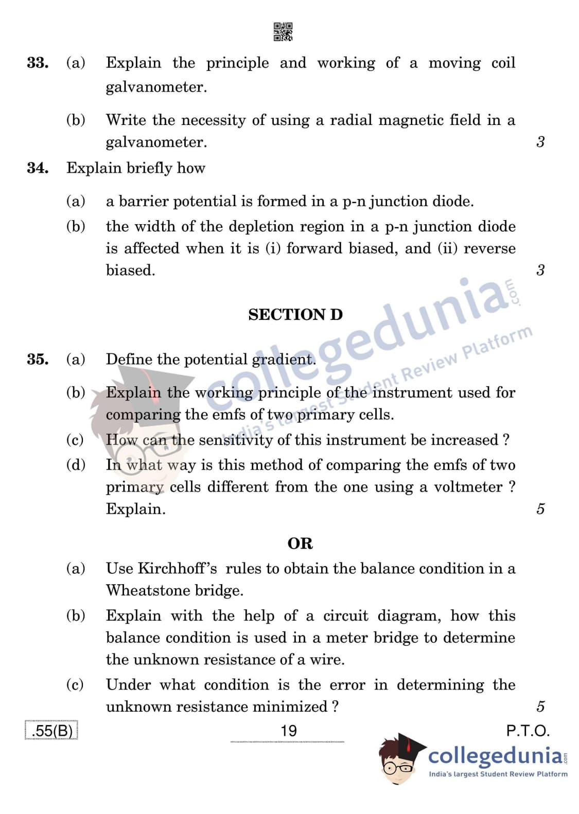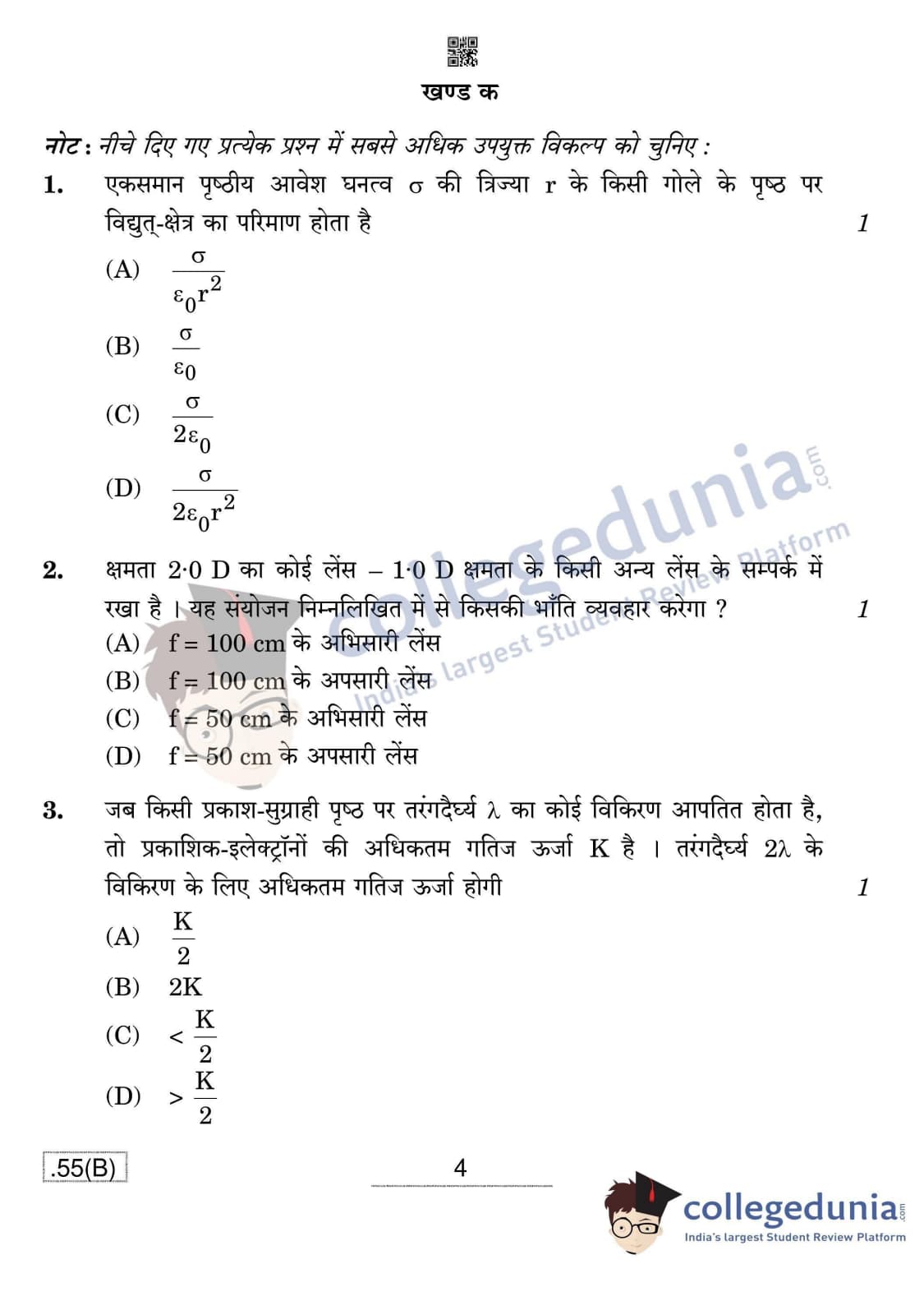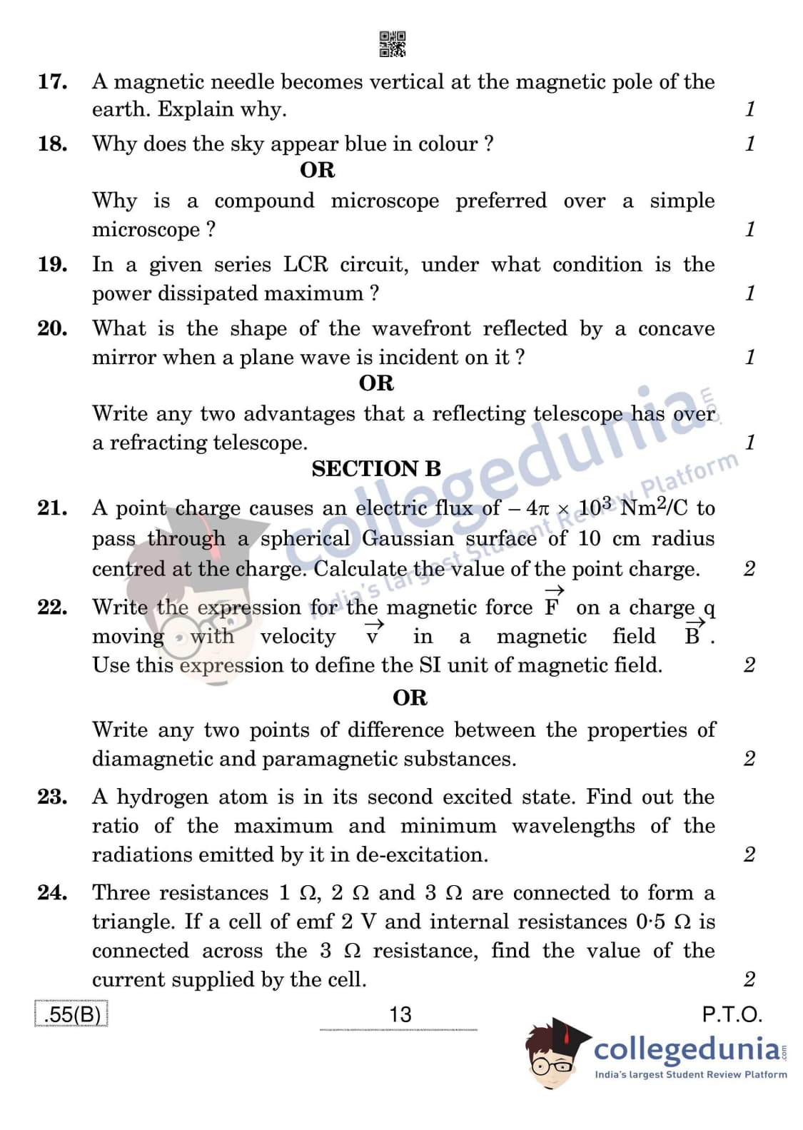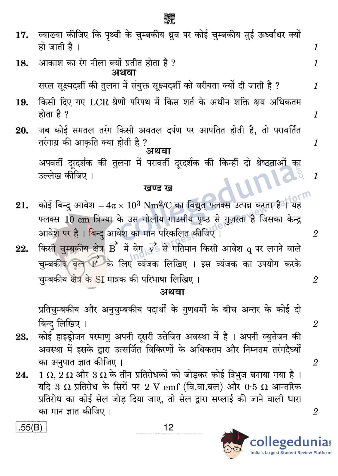 CBSE Class 12 Physics (For Blind) Question Paper 2020 with Answer Key is available for download. The exam was conducted by the Central Board of Secondary Education on March 2, 2020 in the Morning Session 10:30 AM to 1:30 PM. The medium of paper was English & Hindi. In terms of difficulty level, CBSE Class 12 Physics paper was of Difficult level. The question paper comprised a total of 37 questions divided among 4 sections.