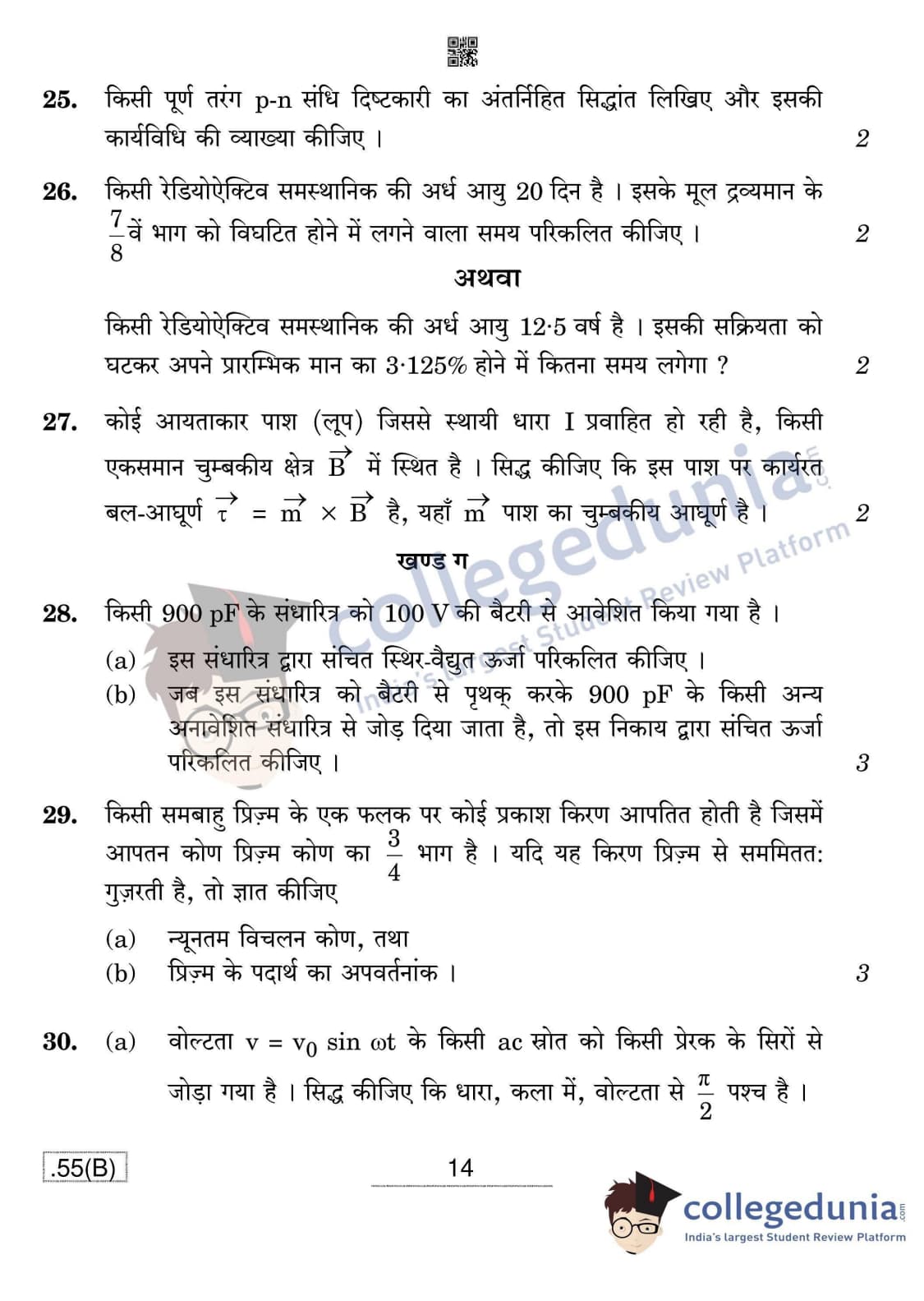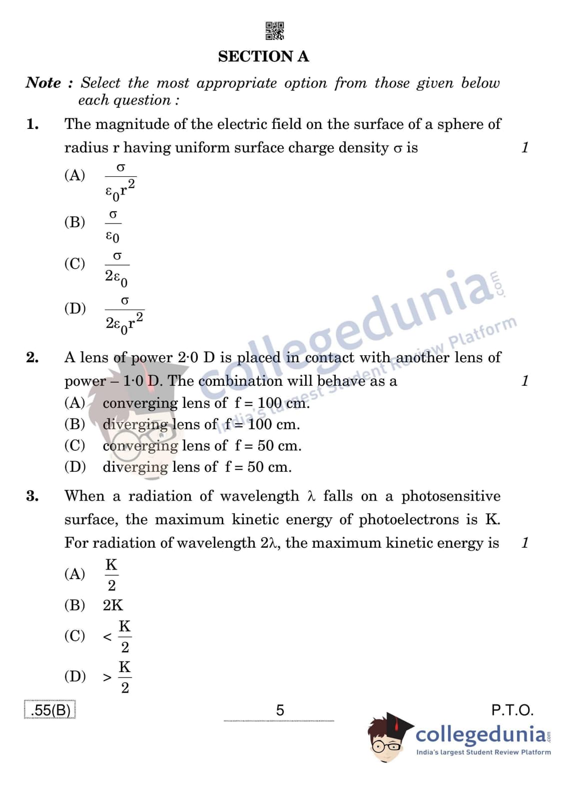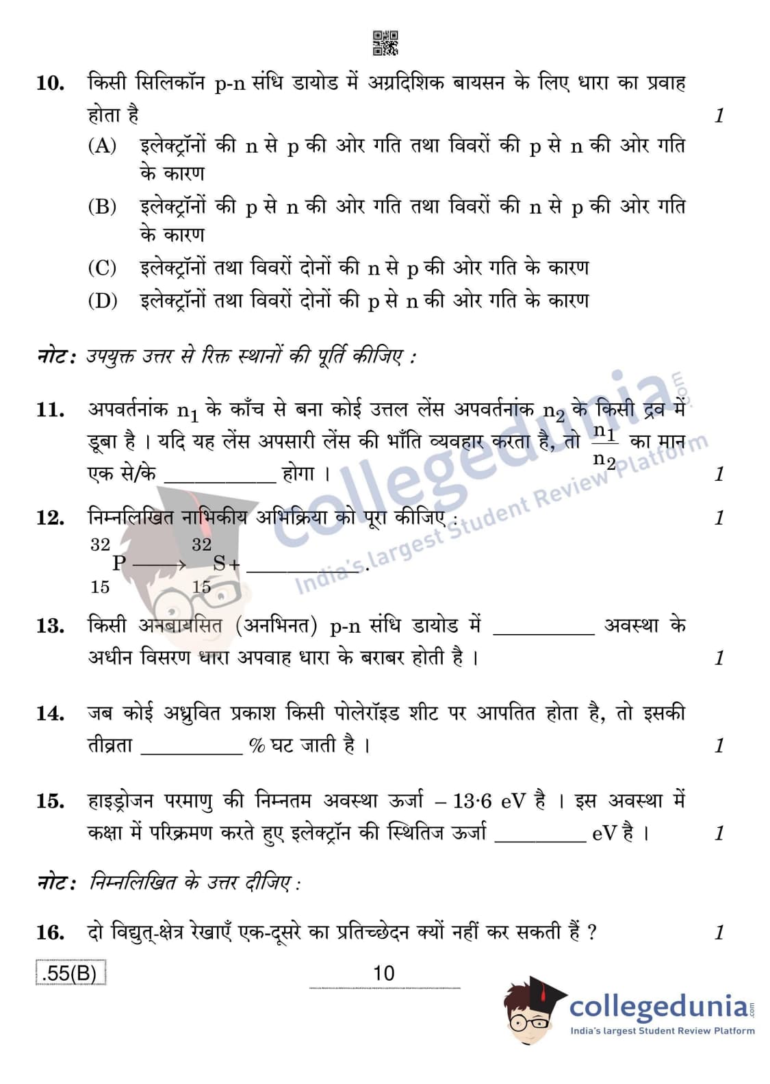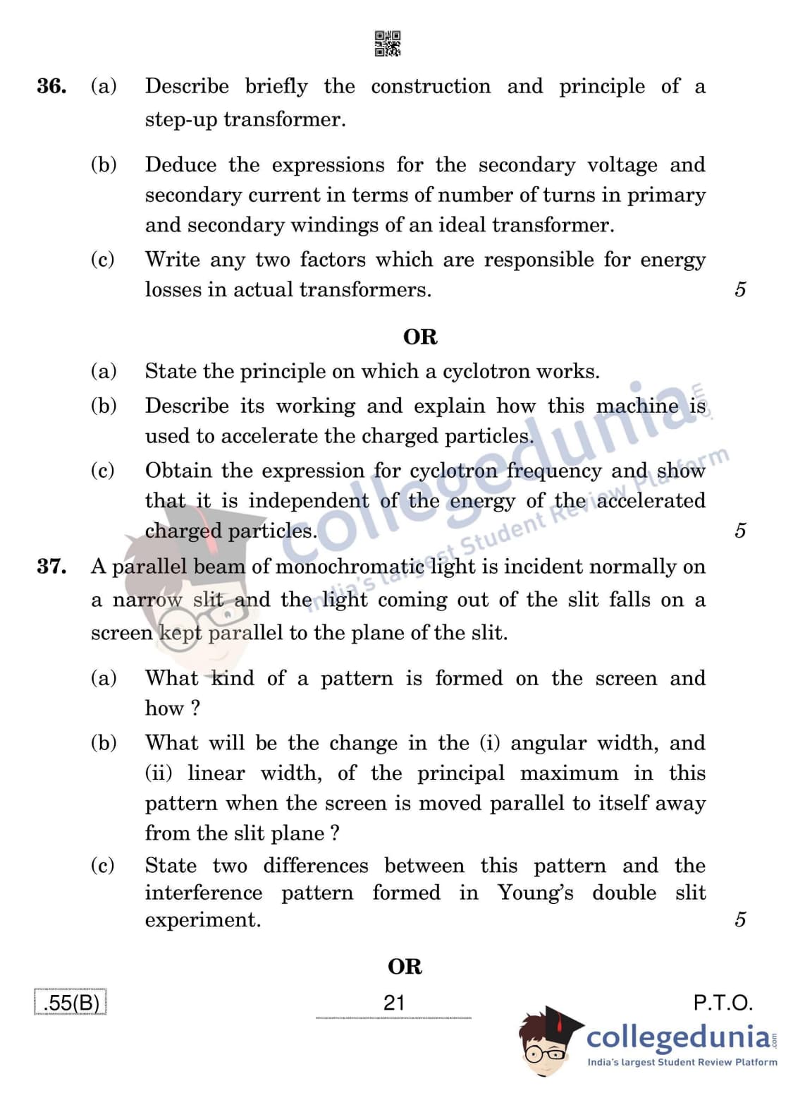 CBSE Class 12 Physics (For Blind) Question Paper 2020 with Answer Key is available for download. The exam was conducted by the Central Board of Secondary Education on March 2, 2020 in the Morning Session 10:30 AM to 1:30 PM. The medium of paper was English & Hindi. In terms of difficulty level, CBSE Class 12 Physics paper was of Difficult level. The question paper comprised a total of 37 questions divided among 4 sections.