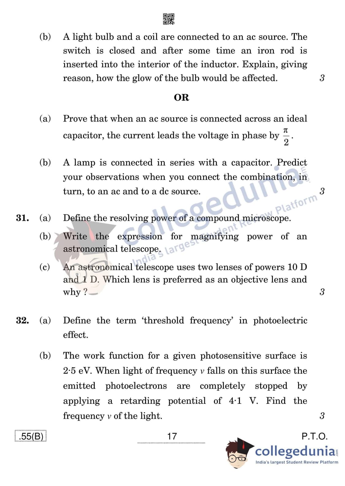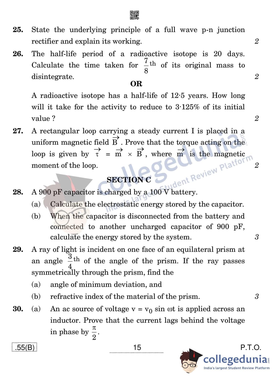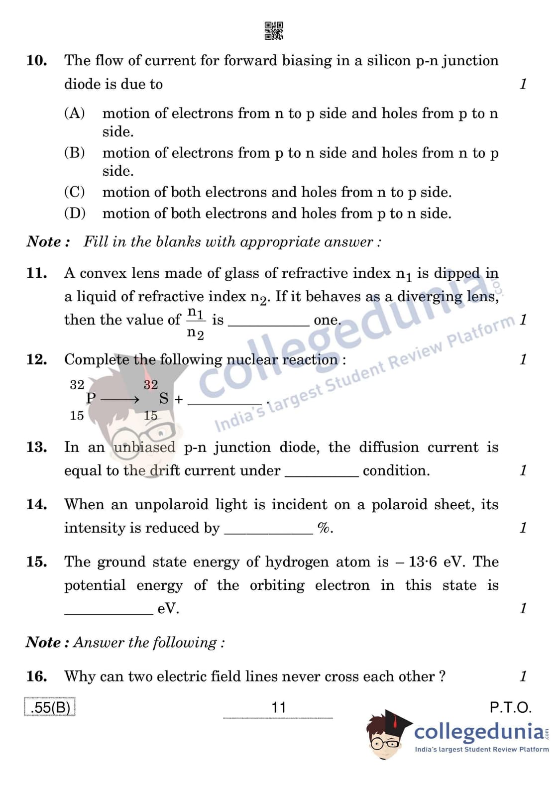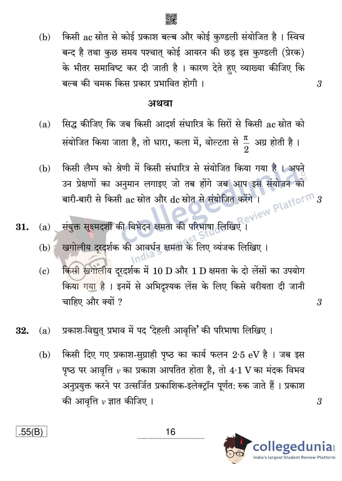 CBSE Class 12 Physics (For Blind) Question Paper 2020 with Answer Key is available for download. The exam was conducted by the Central Board of Secondary Education on March 2, 2020 in the Morning Session 10:30 AM to 1:30 PM. The medium of paper was English & Hindi. In terms of difficulty level, CBSE Class 12 Physics paper was of Difficult level. The question paper comprised a total of 37 questions divided among 4 sections.