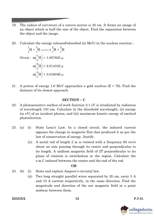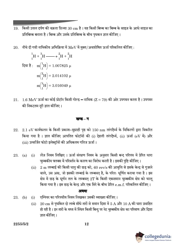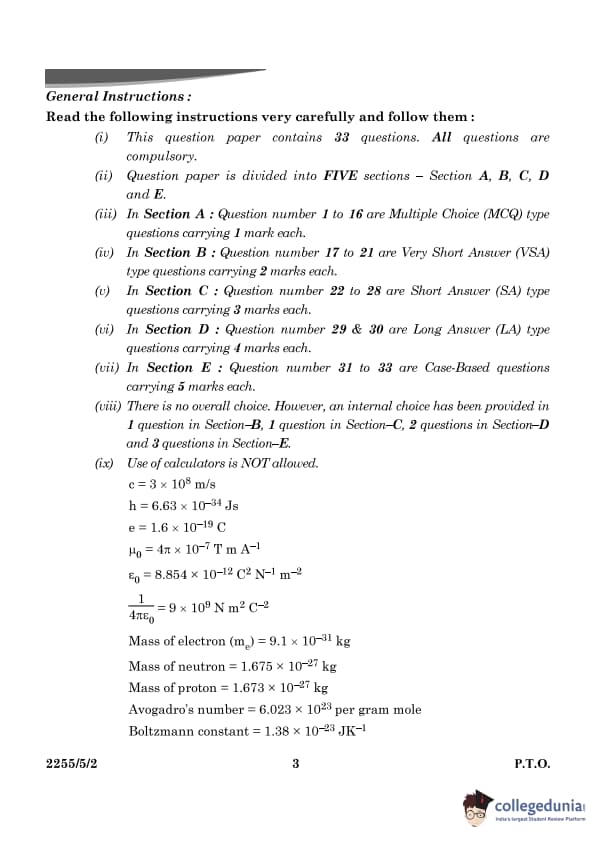| CBSE Class 12 2024 Physics Question Paper with Answer Key | Check Solution |