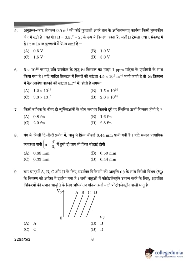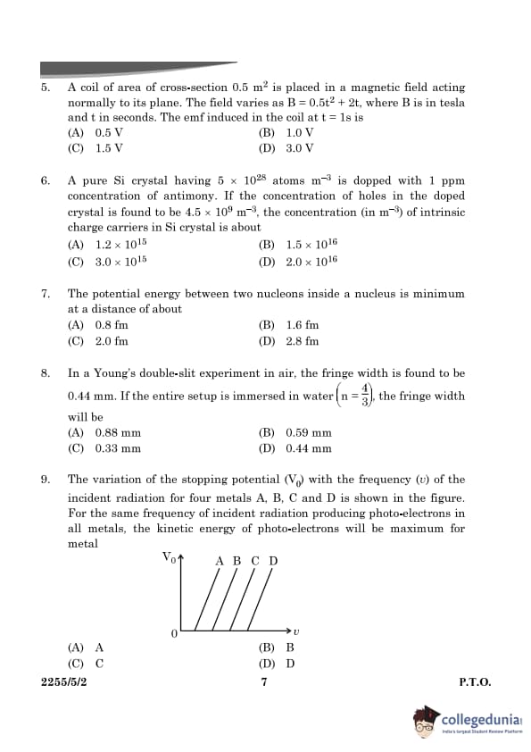 Hence, the intrinsic carrier concentration in Si crystal is approximately \( \boxed{1.5 \times 10^{16}} \). Quick Tip: For doped crystals, the intrinsic carrier concentration \( n_i \) depends on the material properties and temperature.