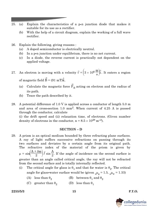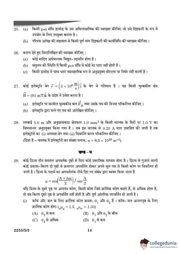 | CBSE Class 12 2024 Physics Question Paper with Answer Key | Check Solution |