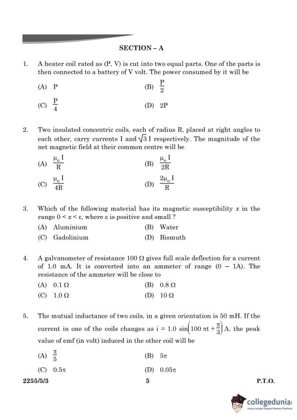 CBSE Class 12 Physics Question Paper 2024 PDF (Set 3- 55/5/3) is available for download here. CBSE conducted the Physics exam on March 4, 2024, from 10:30 AM to 1:30 PM. The total marks for the theory paper are 70. The question paper contains 20% MCQ-based questions, 40% competency-based questions, and 40% short and long answer type questions. As per the students, the Physics exam was moderately difficult.