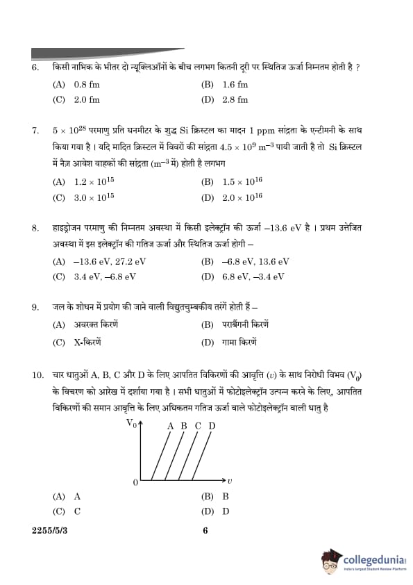 Final Answer: (A) \( 0.8 \, fm \) Quick Tip: In nuclear physics, the equilibrium distance between nucleons plays a crucial role in determining the binding energy and overall stability of the nucleus.