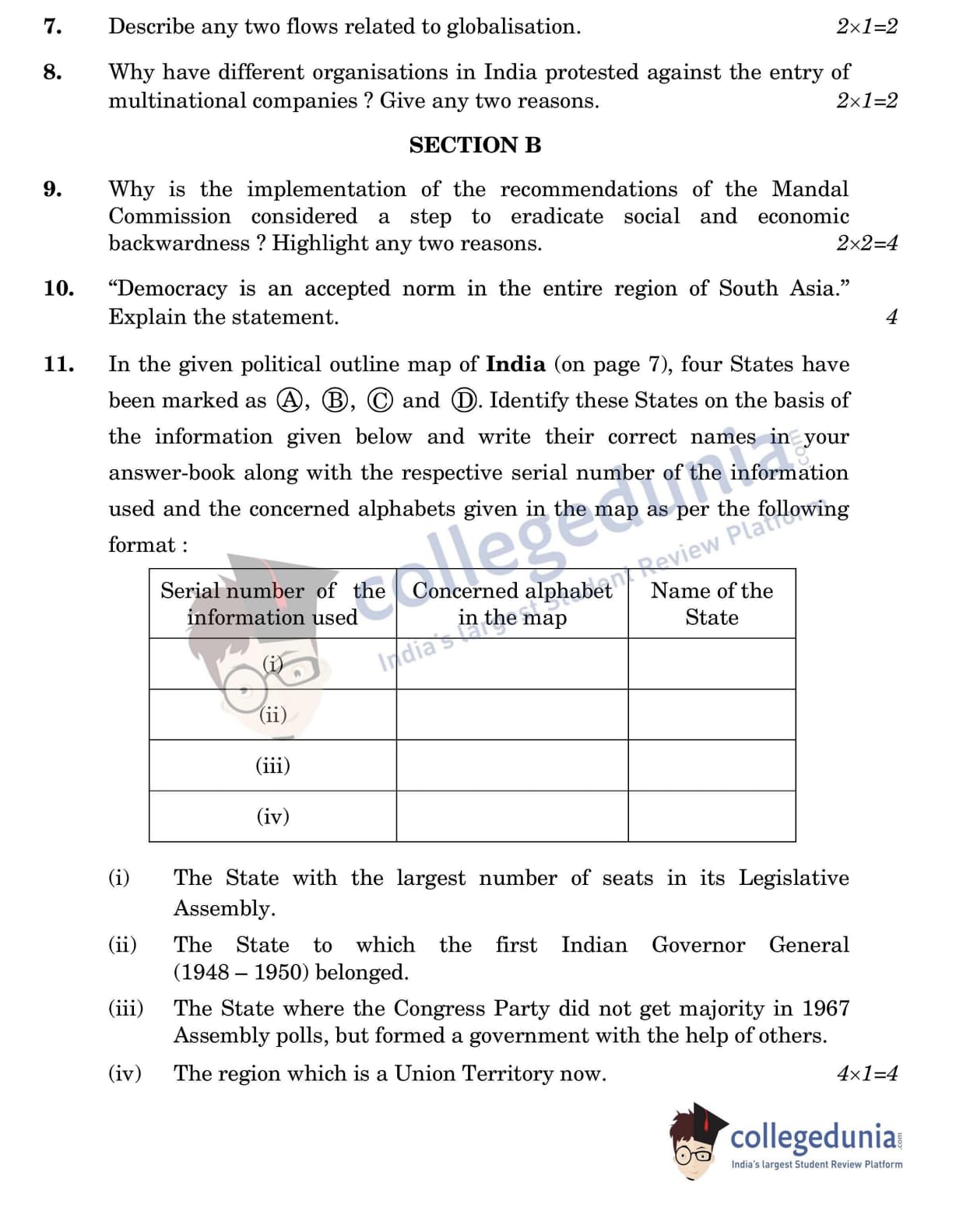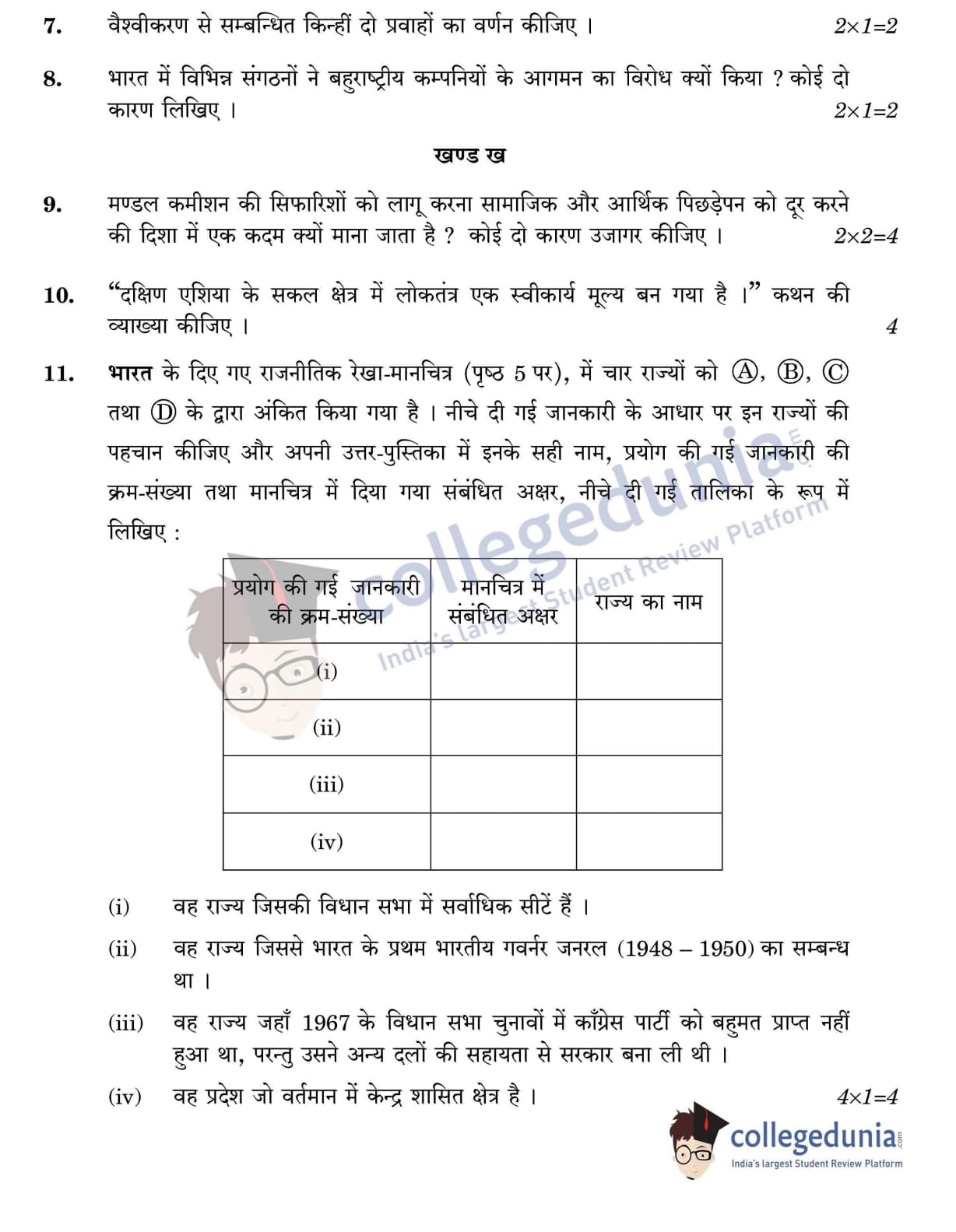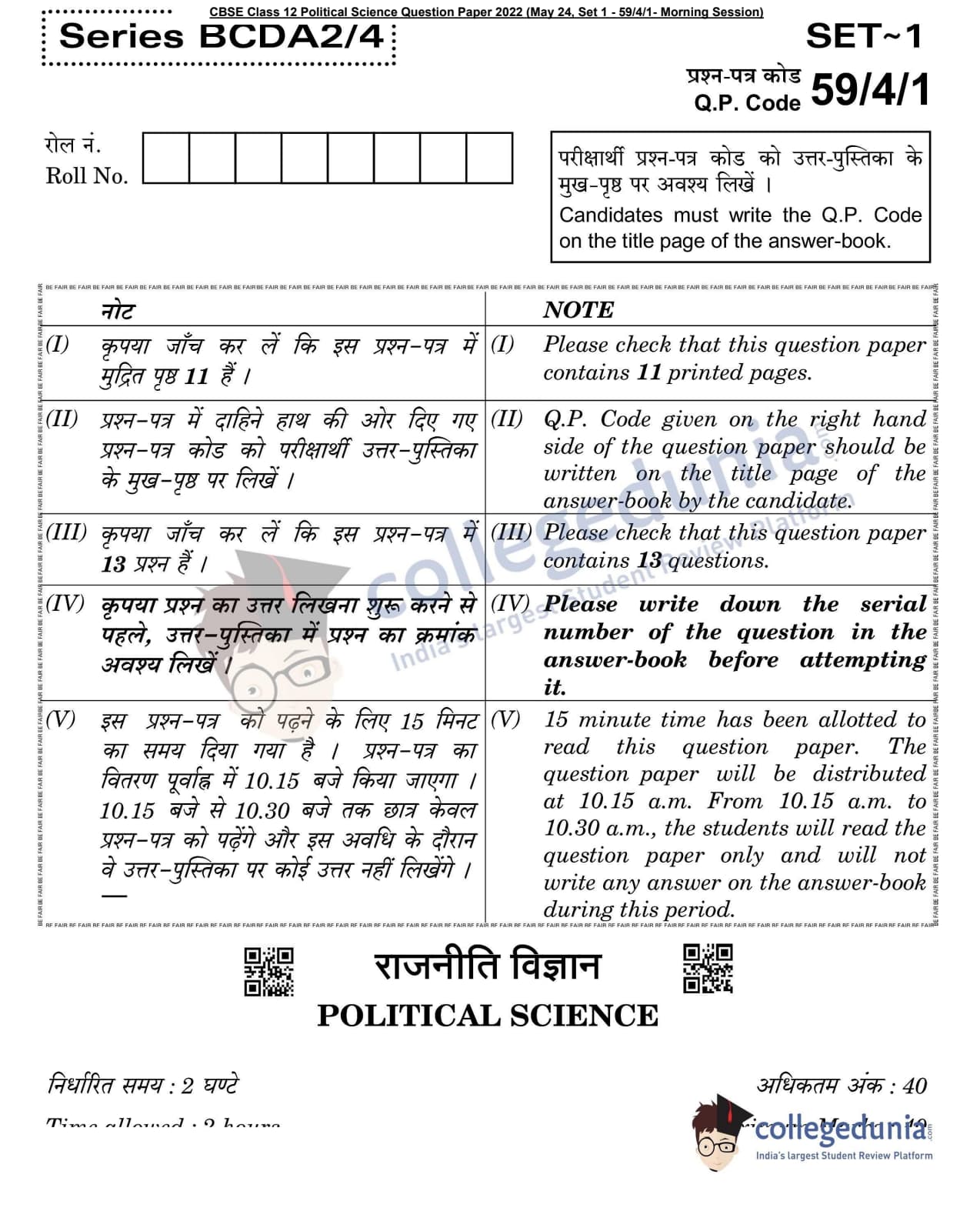 CBSE Class 12 Political Science Question Paper 2022 with Answer Key (May 24, Set 1 - 59/4/1- Morning Session)