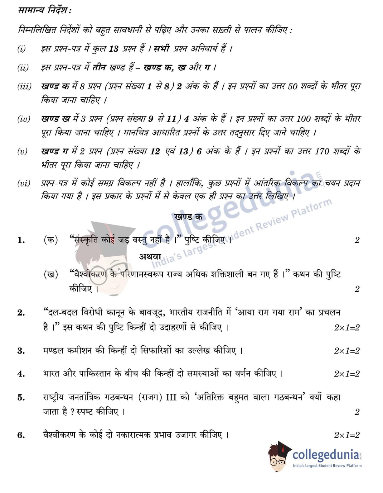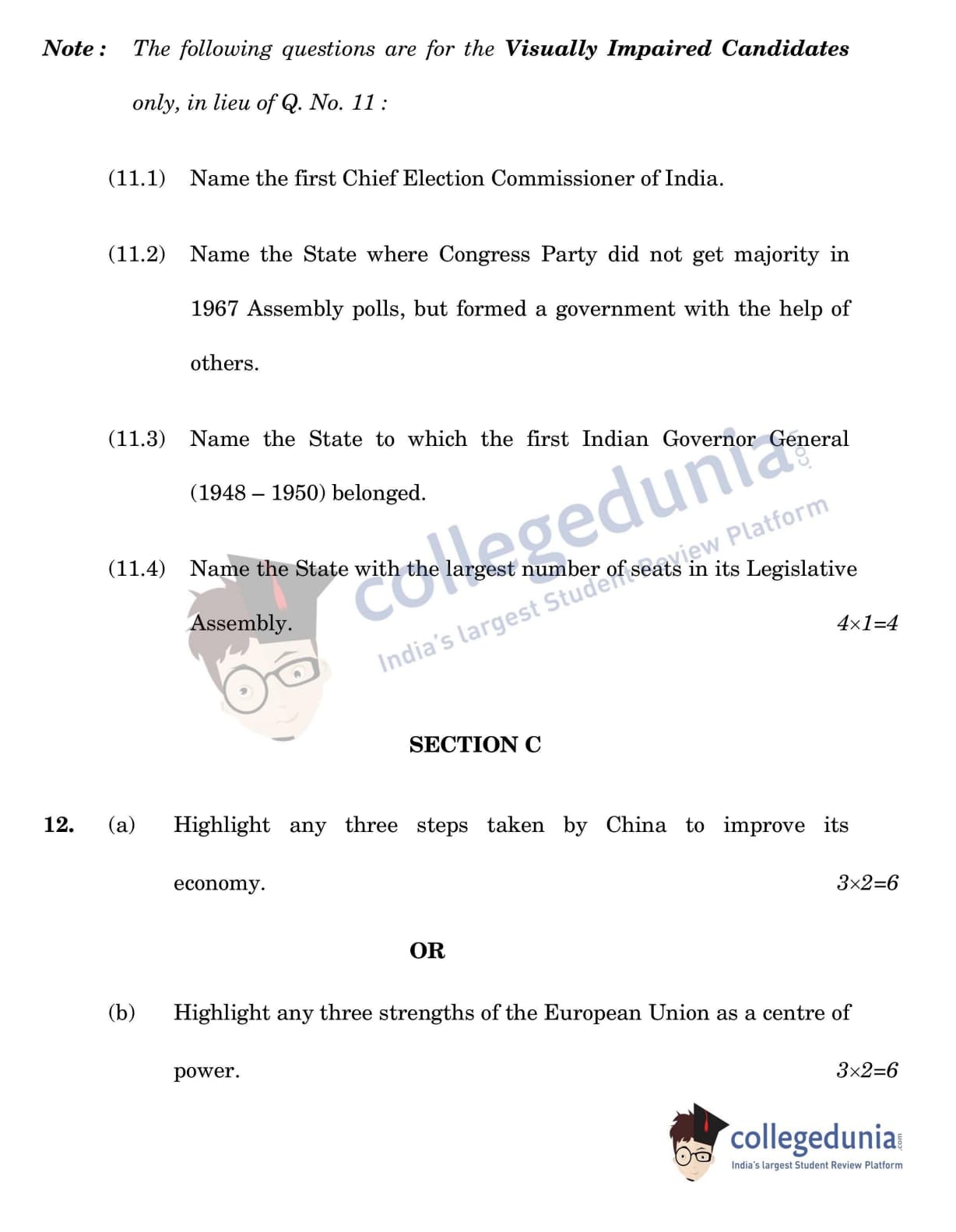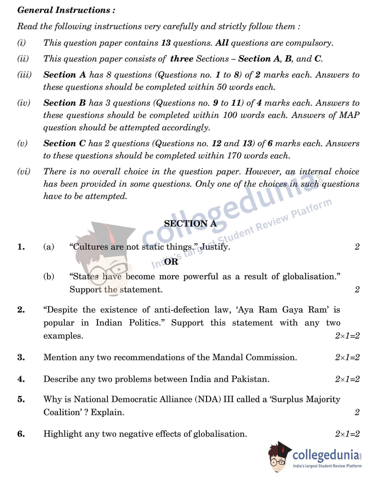 CBSE Class 12 Political Science Question Paper 2022 with Answer Key (May 24, Set 1 - 59/4/1- Morning Session)