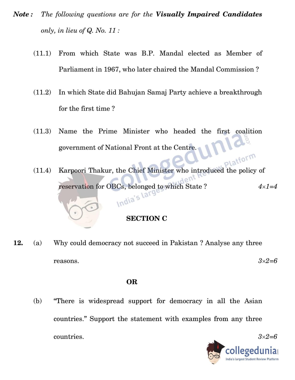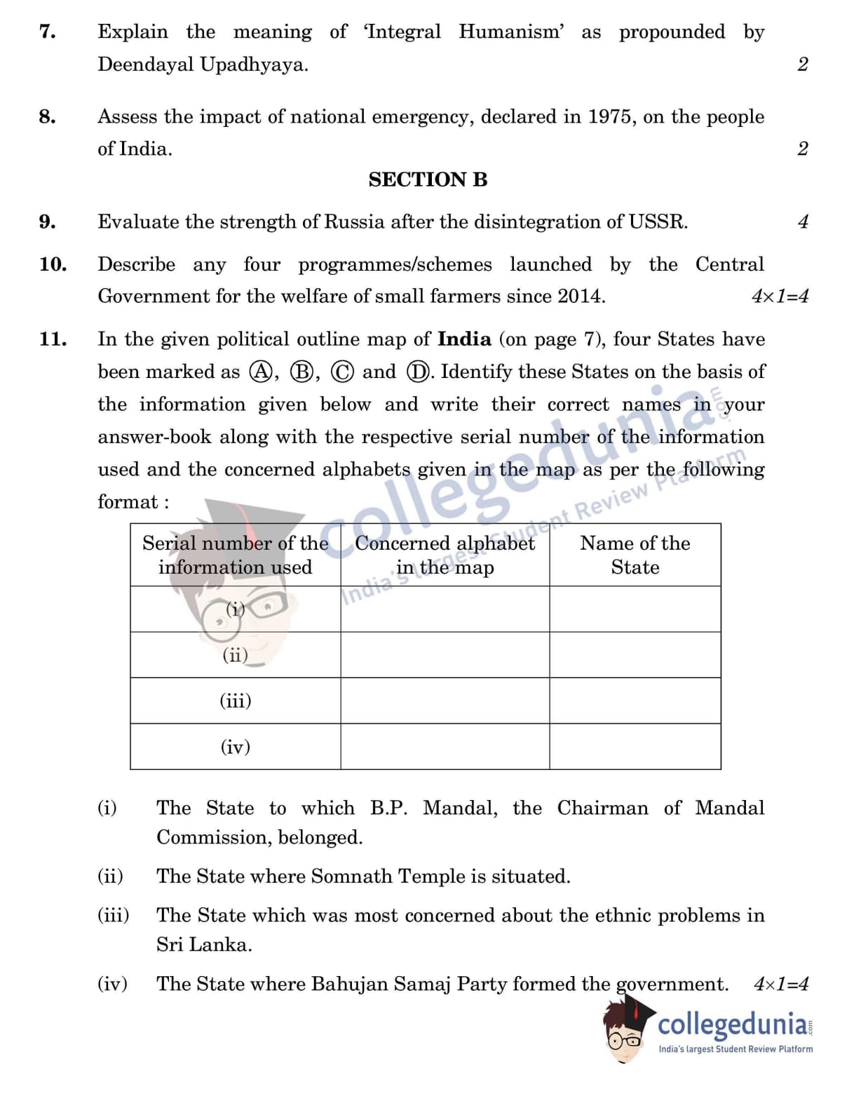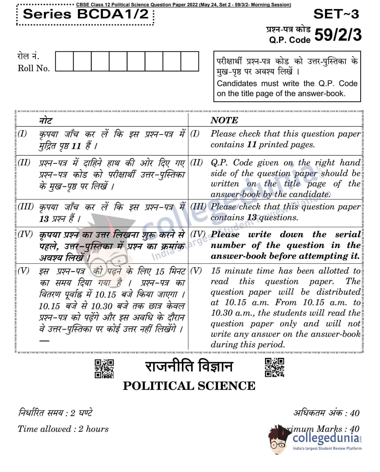 CBSE Class 12 Political Science Question Paper 2022 with Answer Key (May 24, Set 2 - 59/3/2- Morning Session)