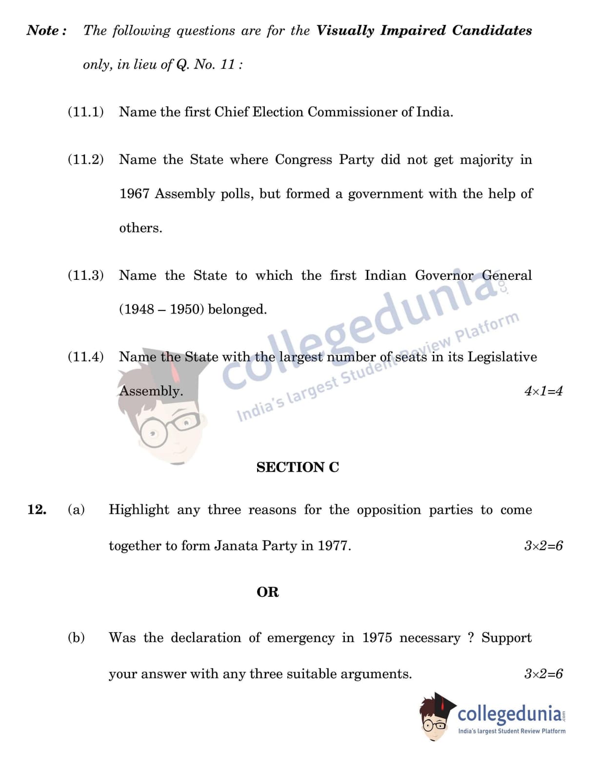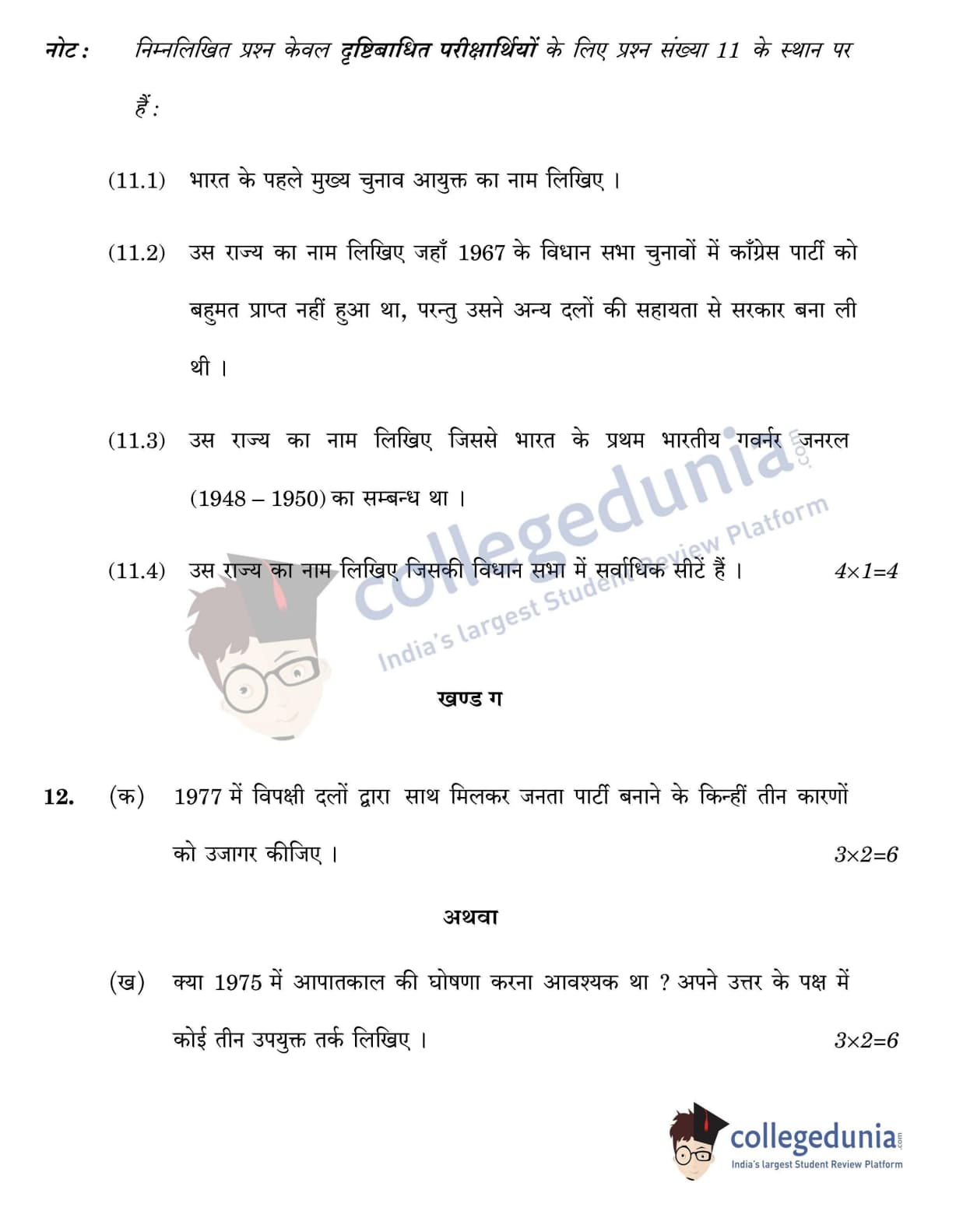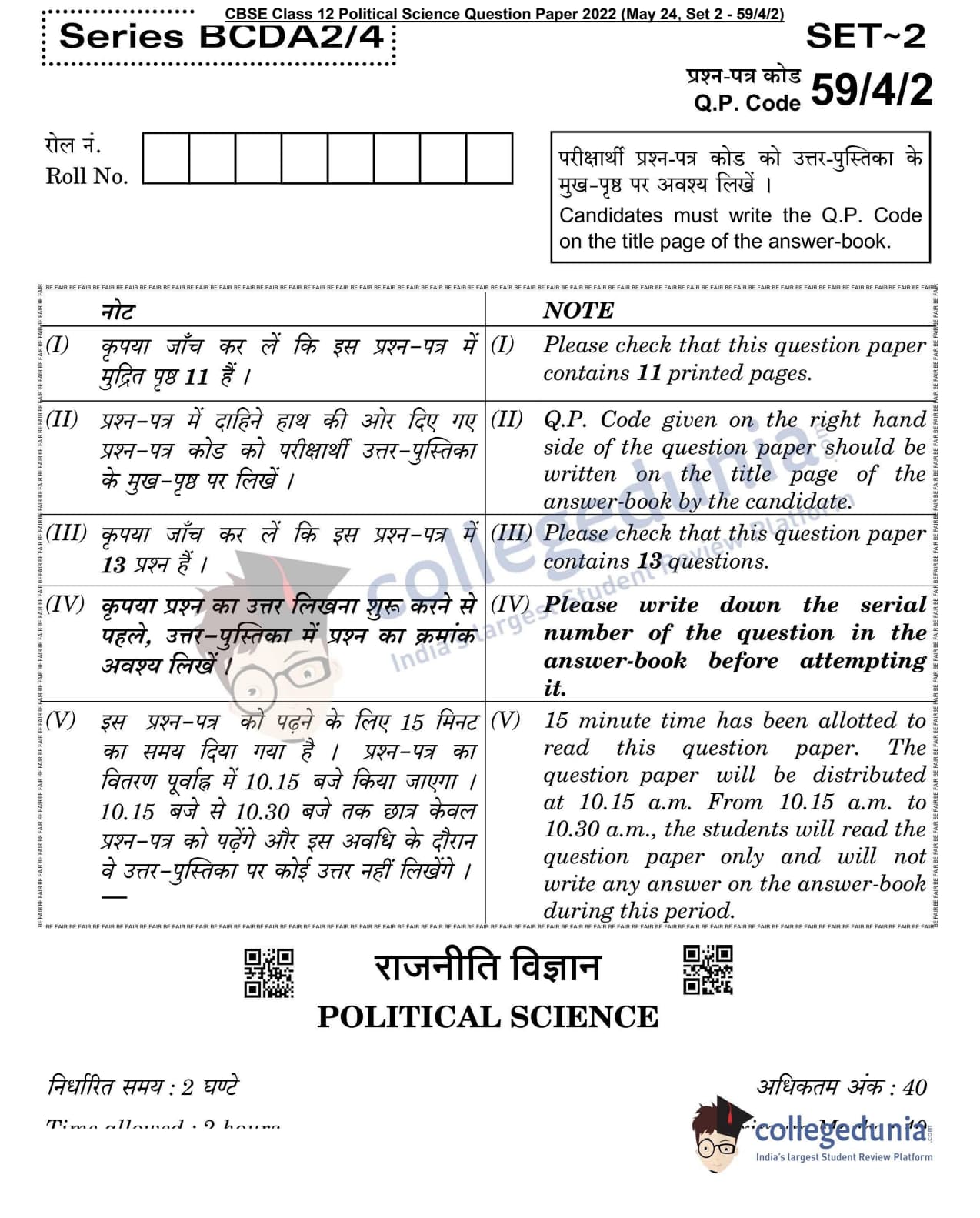 CBSE Class 12 Political Science Question Paper 2022 with Answer Key Set 2 - 59/4/2 (May 24)